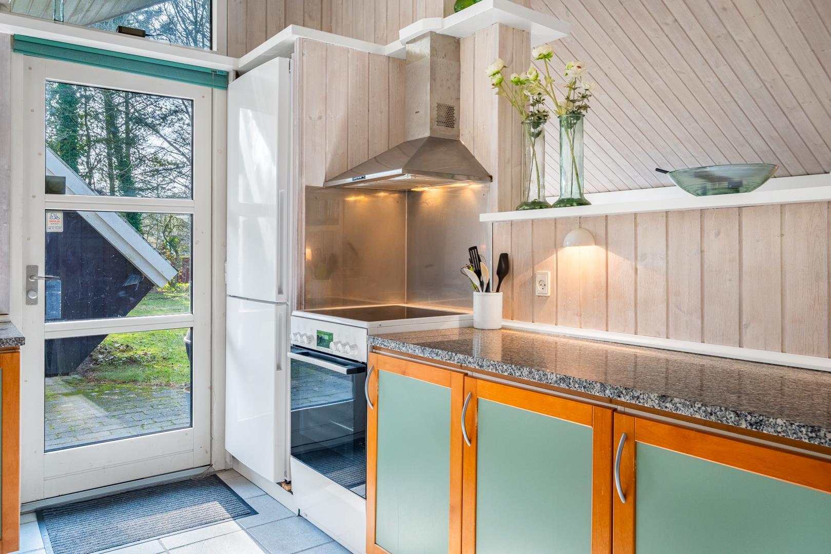 Køkkenet er praktisk indrettet med god plads, opvaskemaskine og gulvvarme, så madlavningen bliver en fornøjelse. Store vinduer giver et dejligt lysindfald og en lys, indbydende atmosfære.