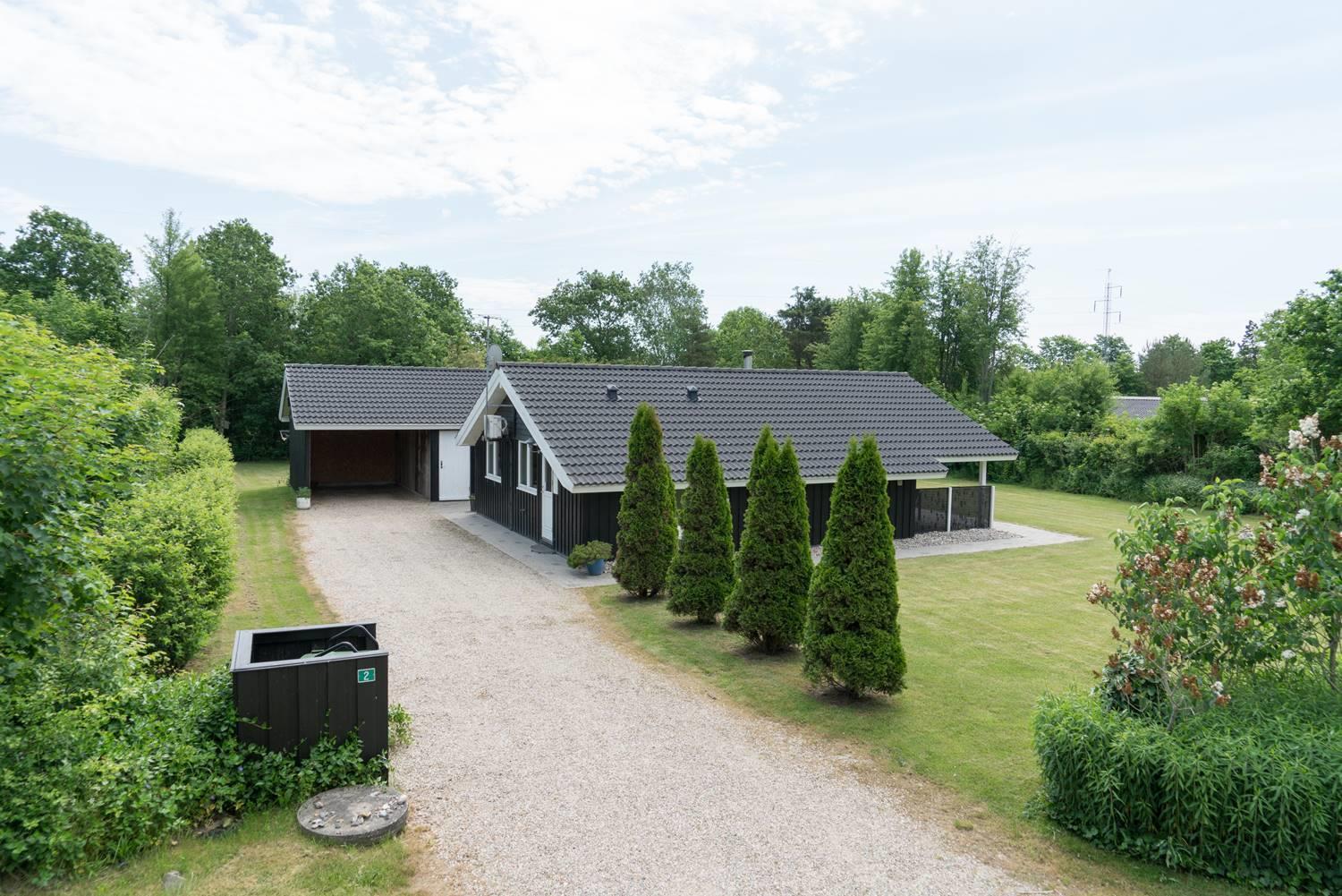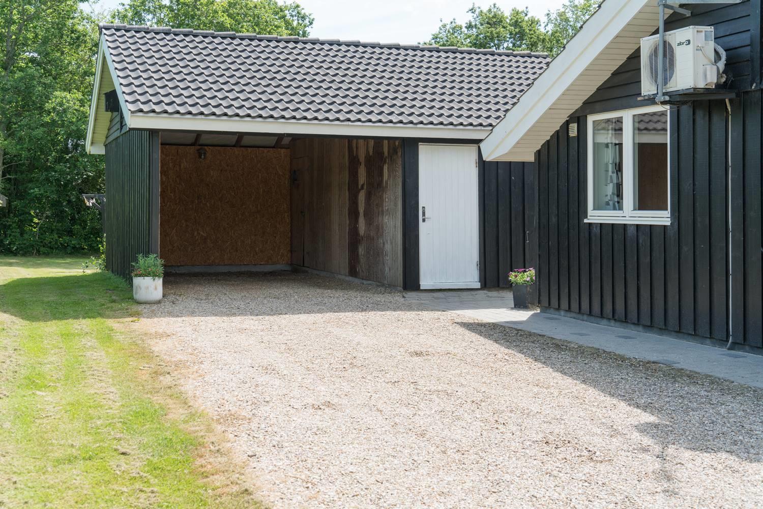 Det er værd at fremhæve husets dejlige grund på næsten 1800 m2. Her er masser af plads, læ og mulighed for at børn kan nyde sandkassen og gyngerne. Caport og skur til lejers rådighed. Huset ligger tæt på indkøbsmuligheder og områdets aktivitetscenter med bålhytte, golf, legeplads mm.