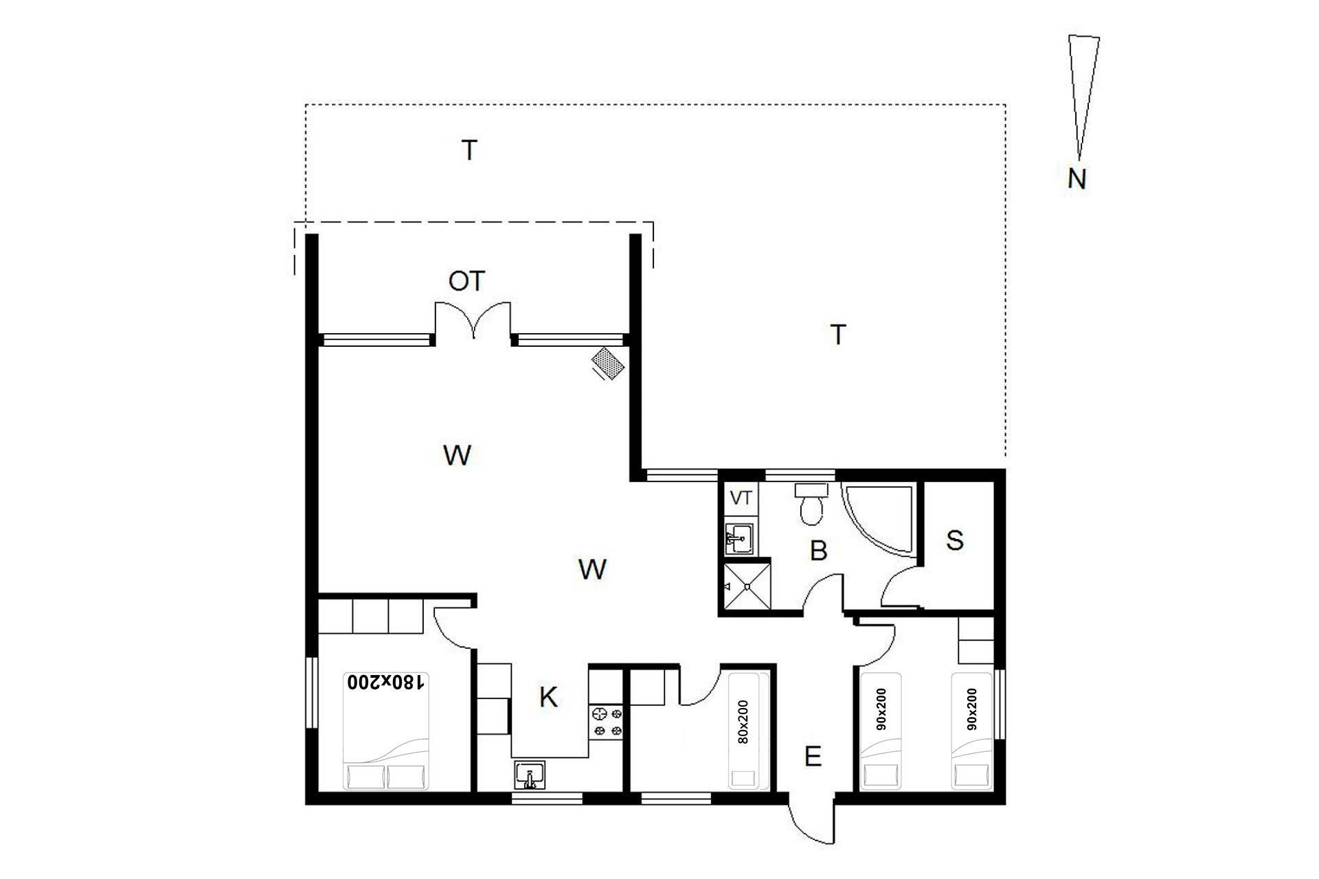 Sengestørrelse: 1 dobbeltseng (180x200 cm) + 2 enkeltsenge (90x200 cm) + 1 køjeseng (80x200 cm).