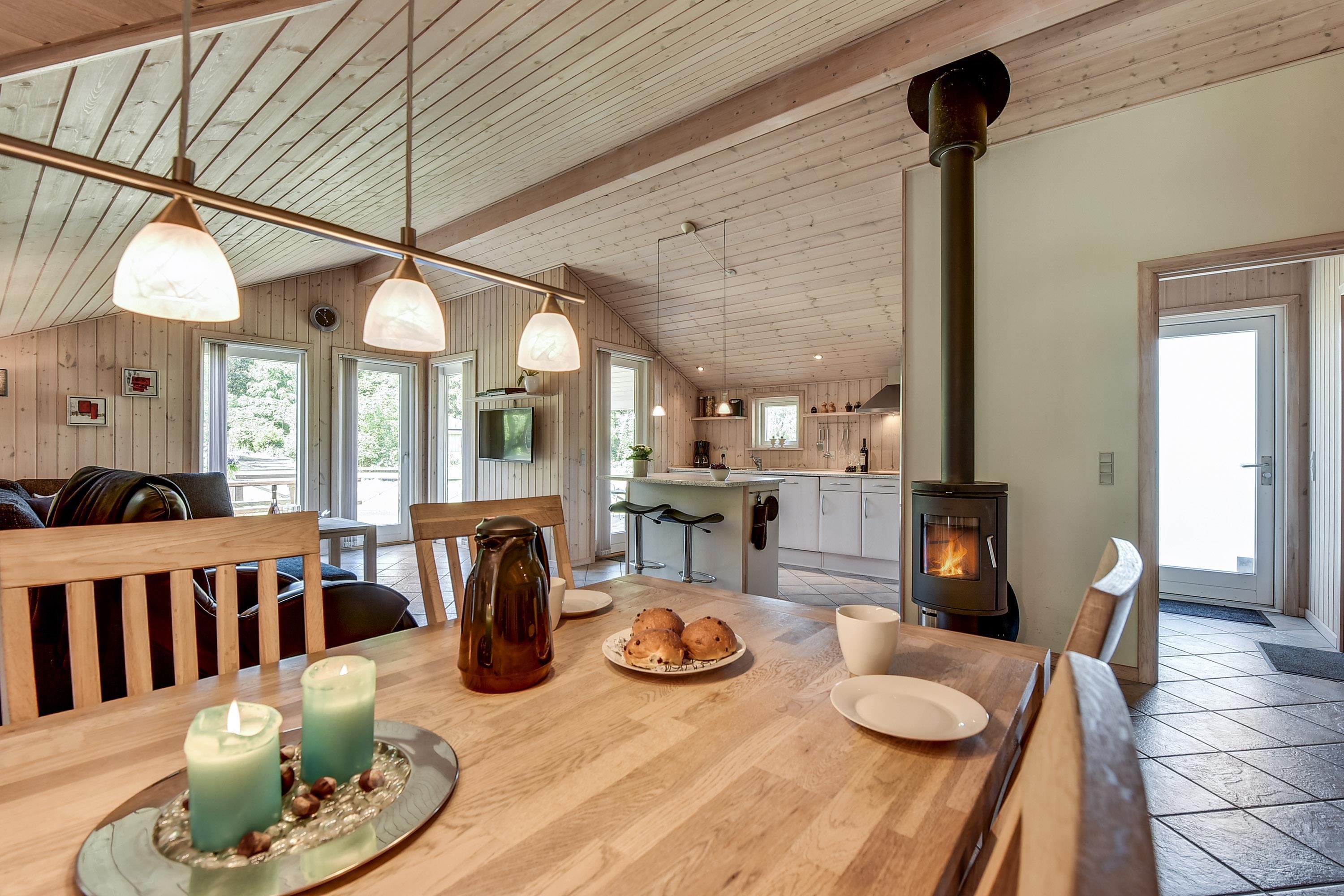 Der er desuden moderne faciliteter som internetadgang, brændeovn, varmepumpe og vaskemaskine, hvilket sikrer et behageligt ophold i naturskønne omgivelser tæt på indkøb.