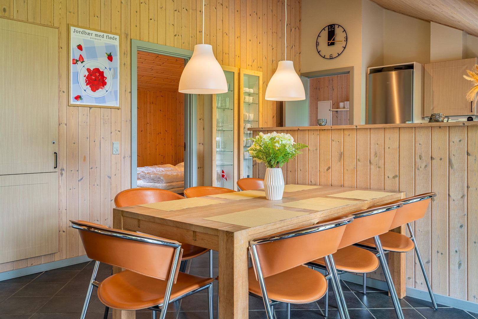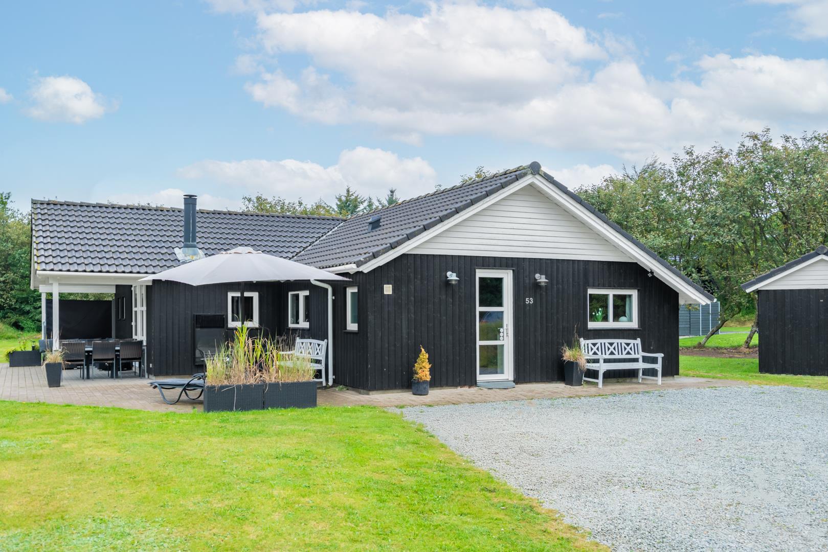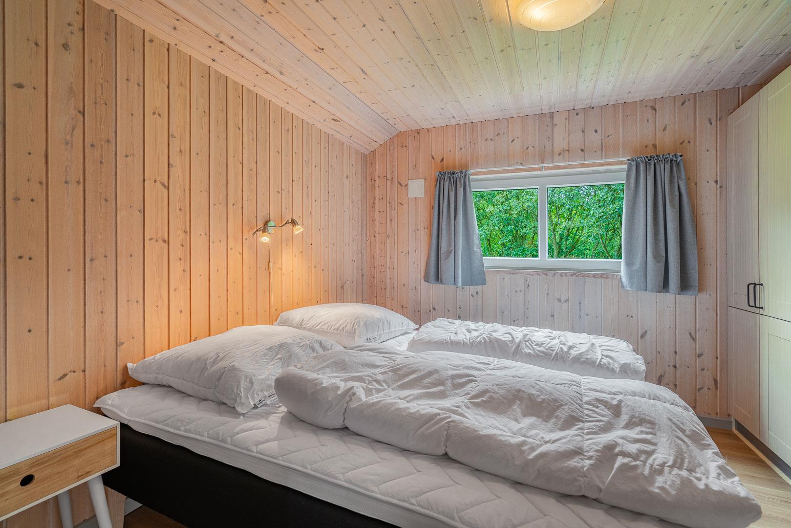 Stilfuldt og charmerende feriehus med den velkendte danske hygge. 120m2 fordelt på 4 soverum, hvoraf 3 har dobbeltseng og 1 har enkelt senge. Stort og dejligt badeværelse med sauna og gulvvarme. Ekstra toilet med håndvask og gulvvarme. Hyggelig og rummelig stue med tv, brændeovn og varmepumpe. Stue, spiseplads og køkken med opvaskemaskine og mikroovn er kombineret i ét og vil danne rammen om fælles samvær. Bryggers med vaskemaskine og tørretumbler.