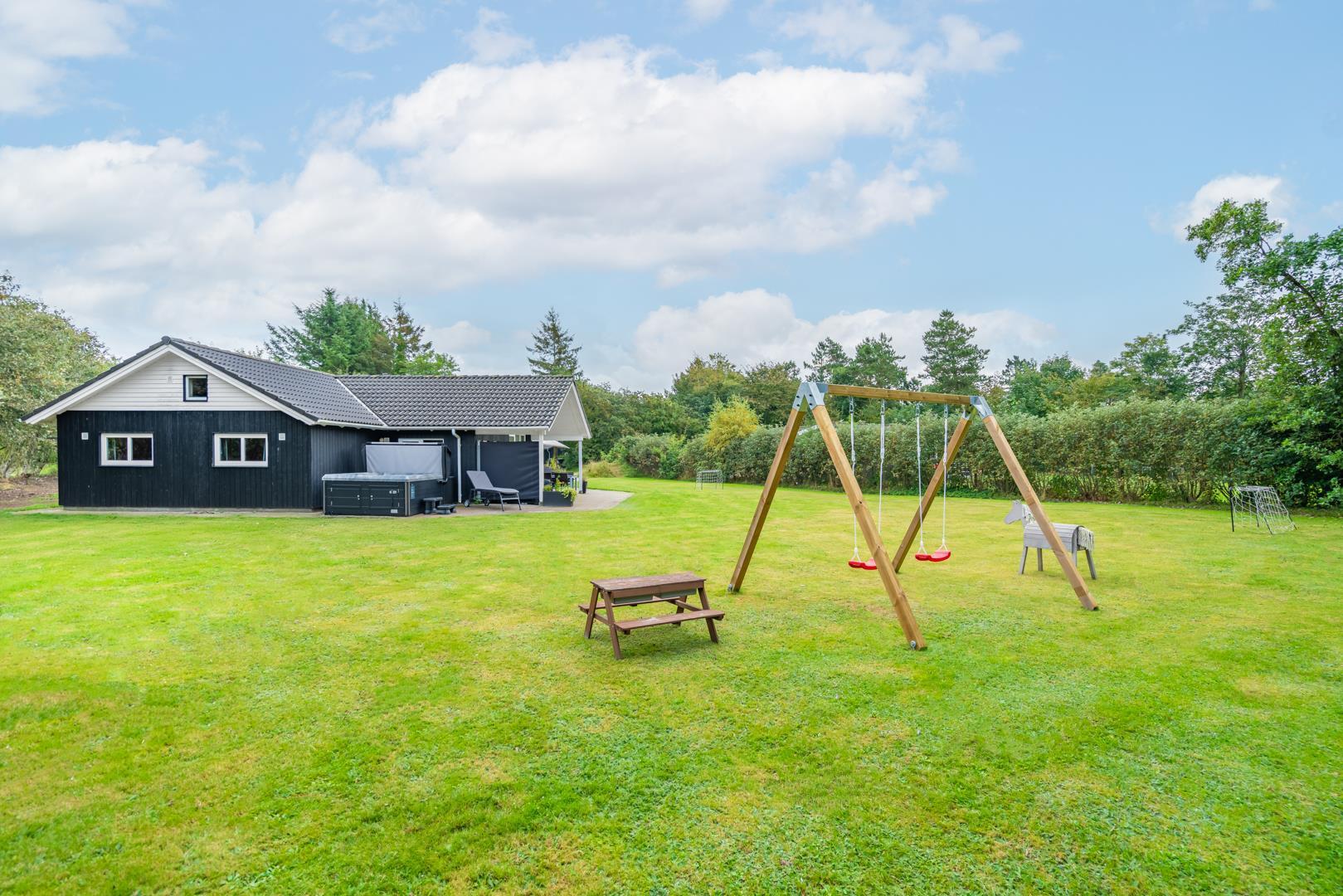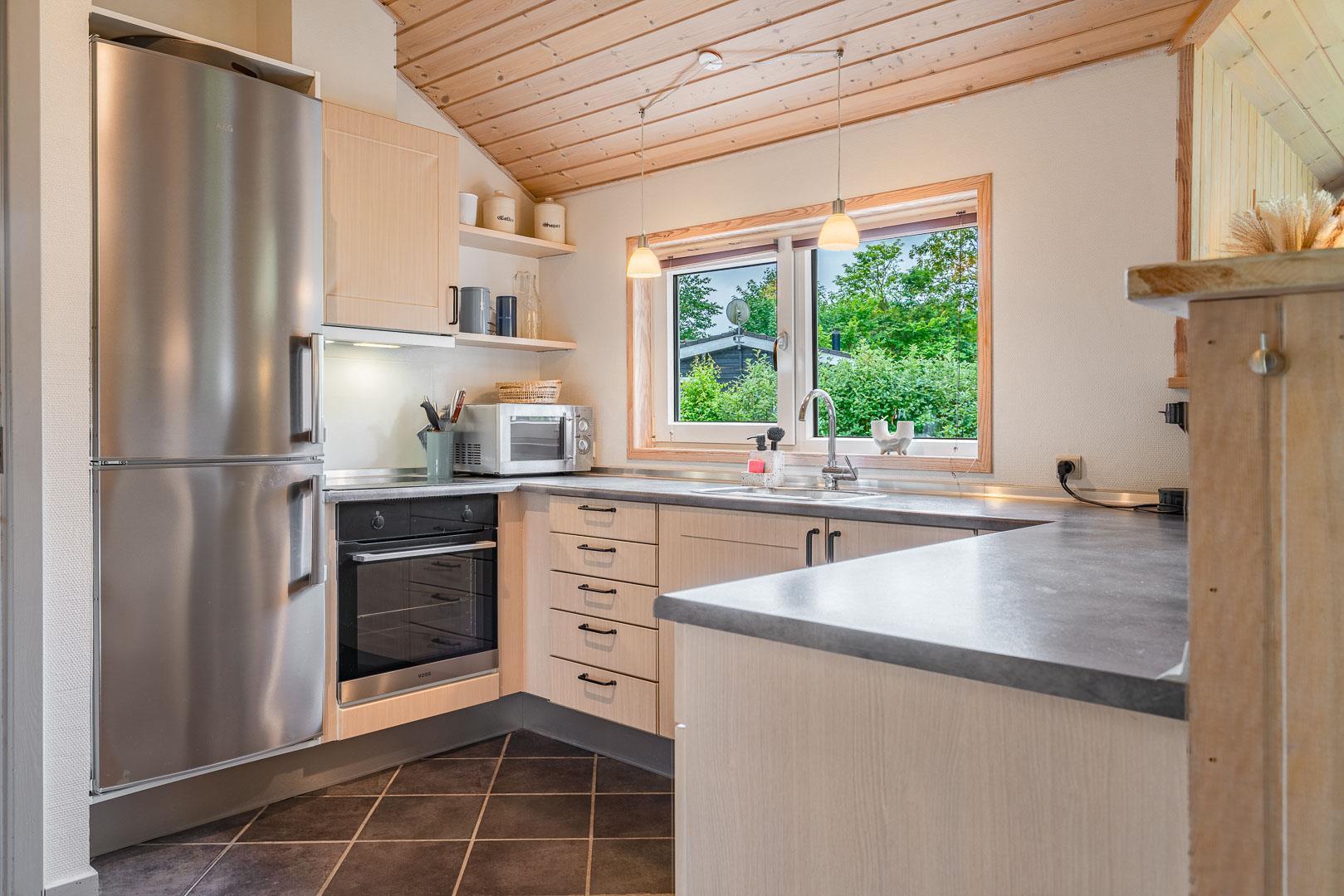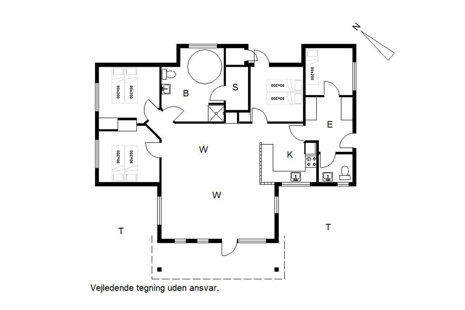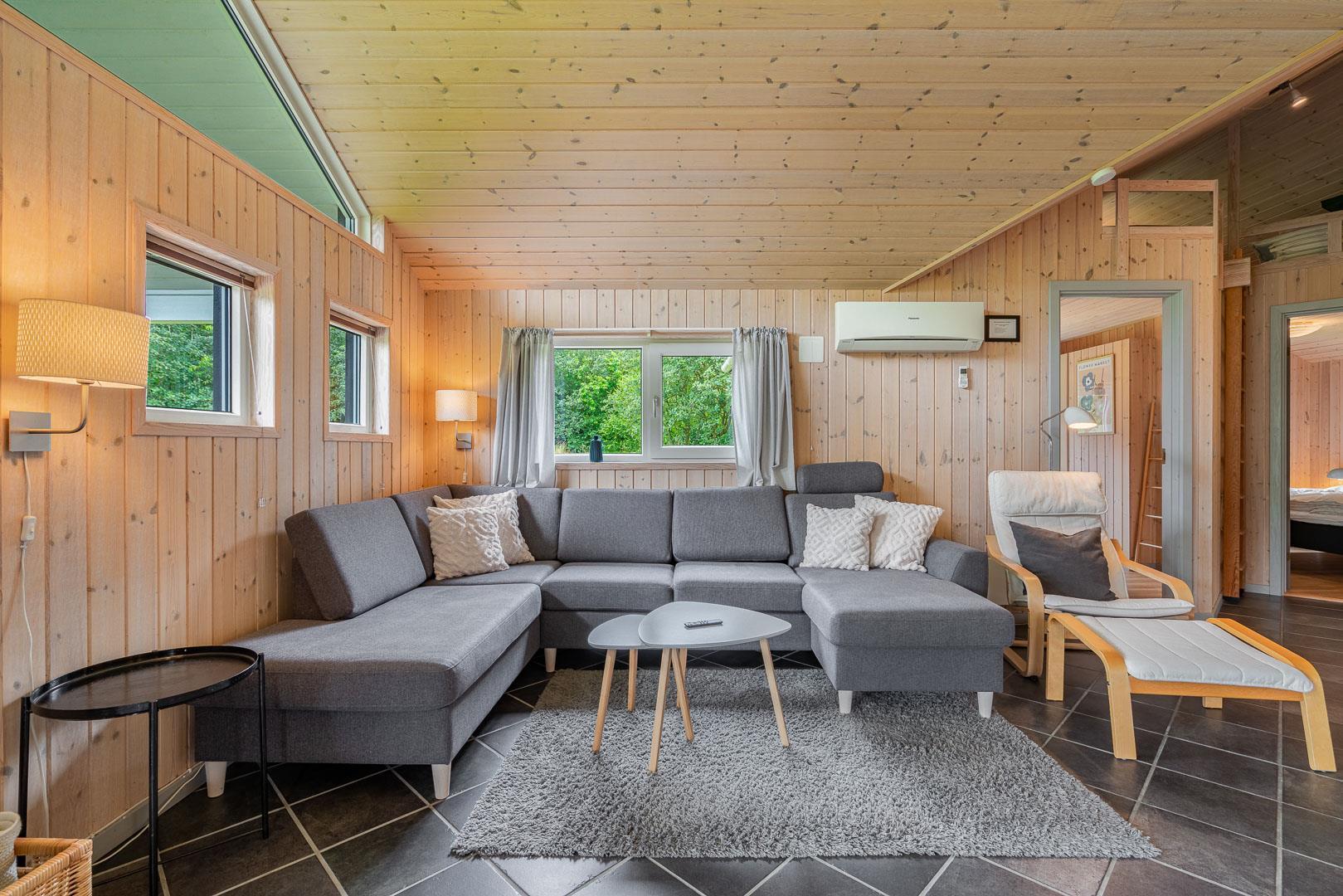 Stilfuldt og charmerende feriehus med den velkendte danske hygge. 120m2 fordelt på 4 soverum, hvoraf 3 har dobbeltseng og 1 har enkelt senge. Stort og dejligt badeværelse med sauna og gulvvarme. Ekstra toilet med håndvask og gulvvarme. Hyggelig og rummelig stue med tv, brændeovn og varmepumpe. Stue, spiseplads og køkken med opvaskemaskine og mikroovn er kombineret i ét og vil danne rammen om fælles samvær. Bryggers med vaskemaskine og tørretumbler.