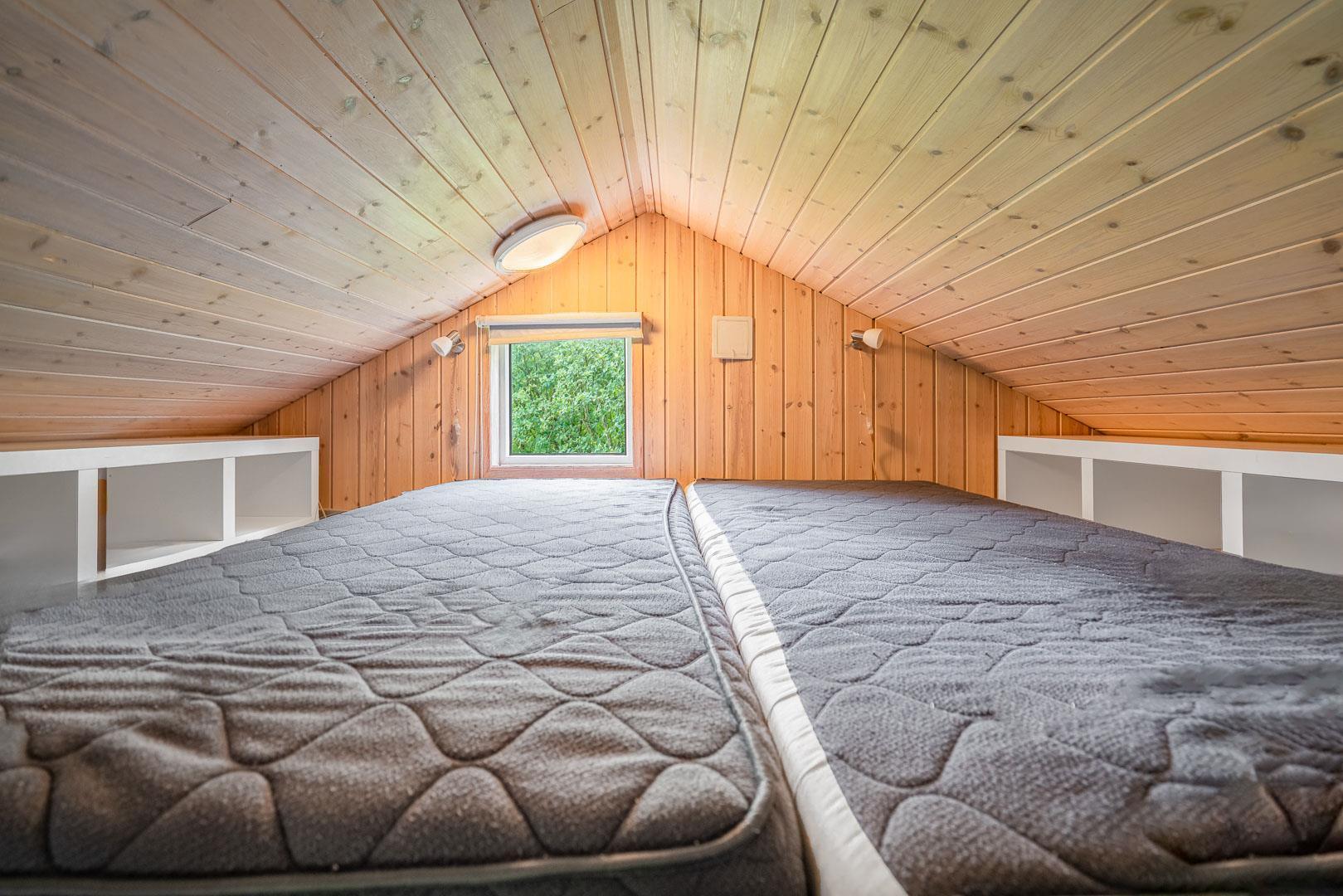 Sengestørrelse: 3 dobbeltsenge med 2 madrasser 90 x 200 cm + 1 enkeltseng 80 x 200 cm.