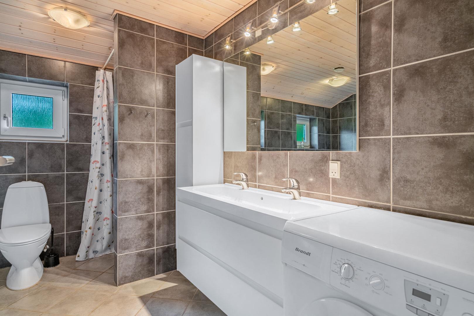 Indendørs finder man et pænt køkken med opvaskemaskine, separat fryser og mikroovn. Der er to badeværelser, hvoraf det ene har spa, sauna og wellness bruser. De tre gode soverum og en hyggelig hems giver plads til afslapning. Ejendommen er løbende moderniseret og udstyret med både vaskemaskine og tørretumbler.