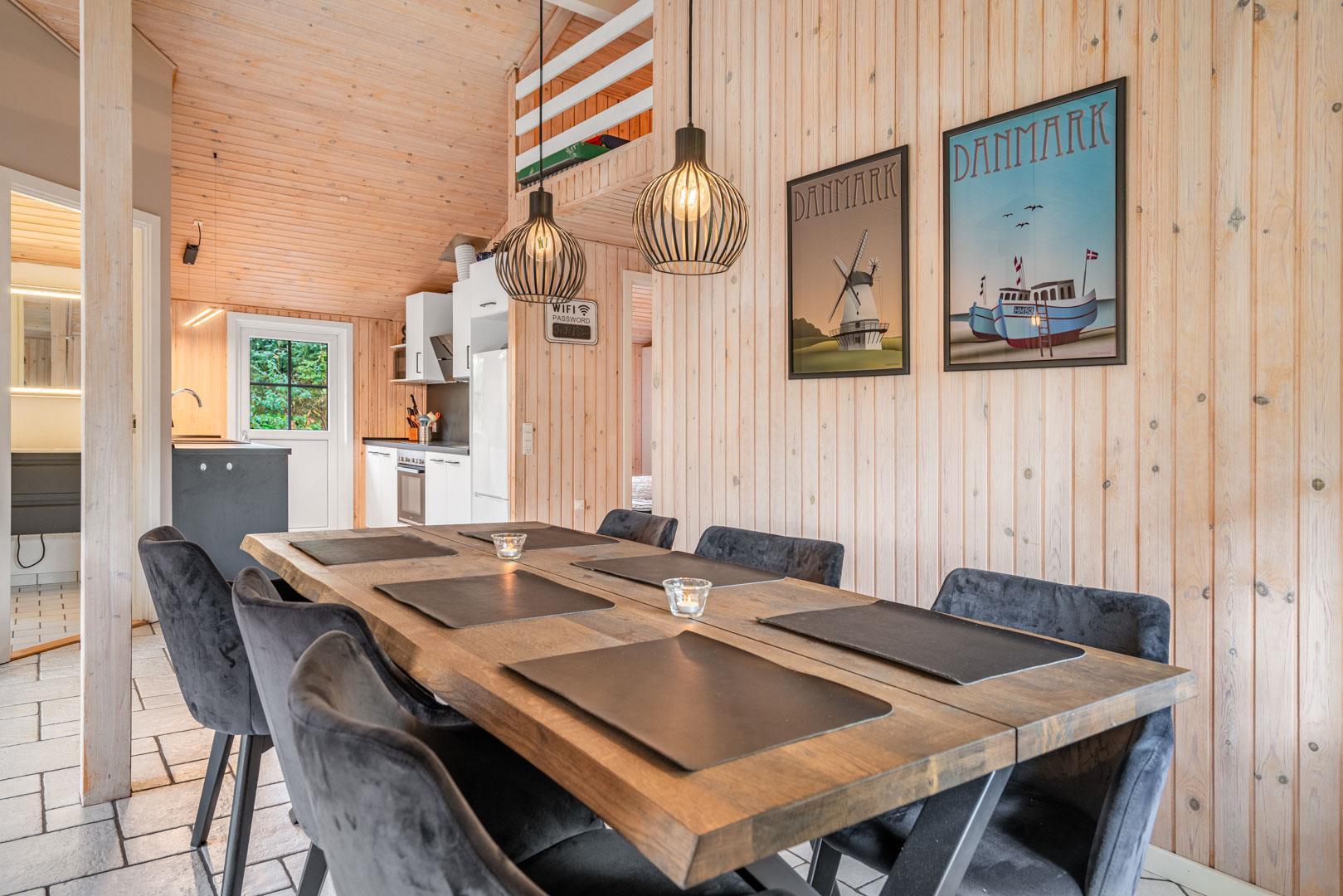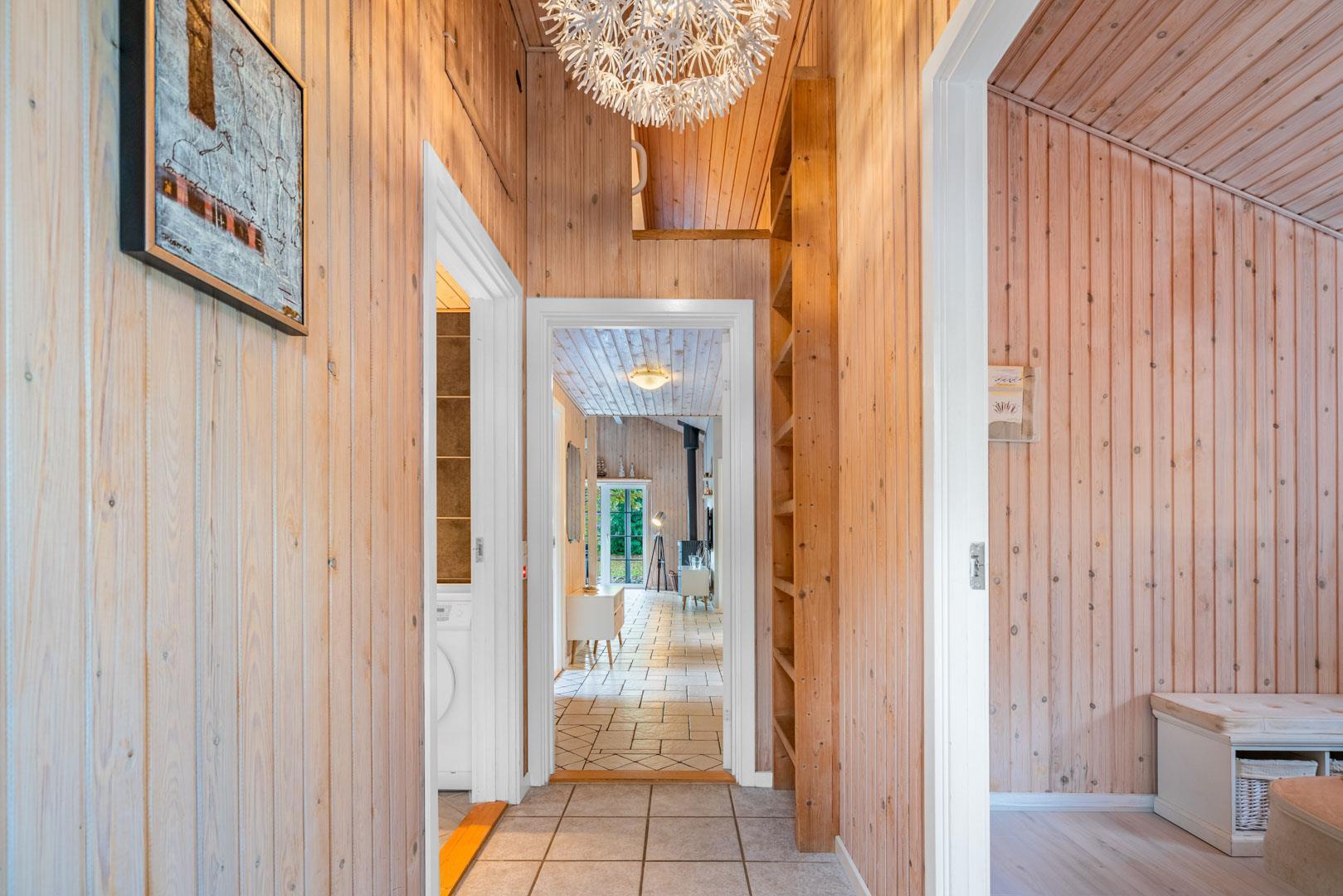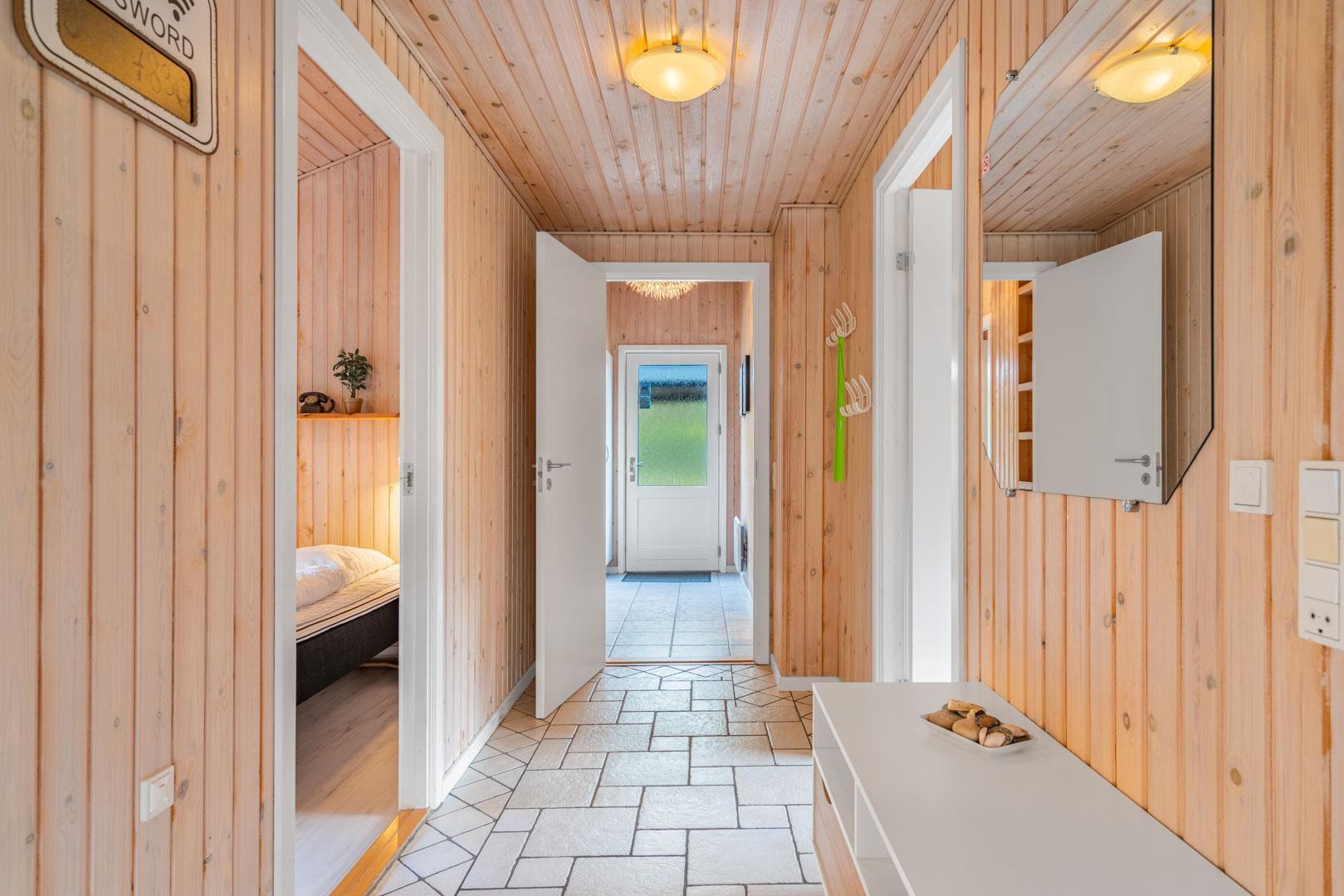 Dette velholdte feriehus ligger på en beplantet naturgrund for enden af en blind vej i Jegum Ferieland. Huset byder på en dejlig og ugeneret solgård samt en terrasse med udgang fra stuen, som skaber et skønt samlingspunkt for familien.