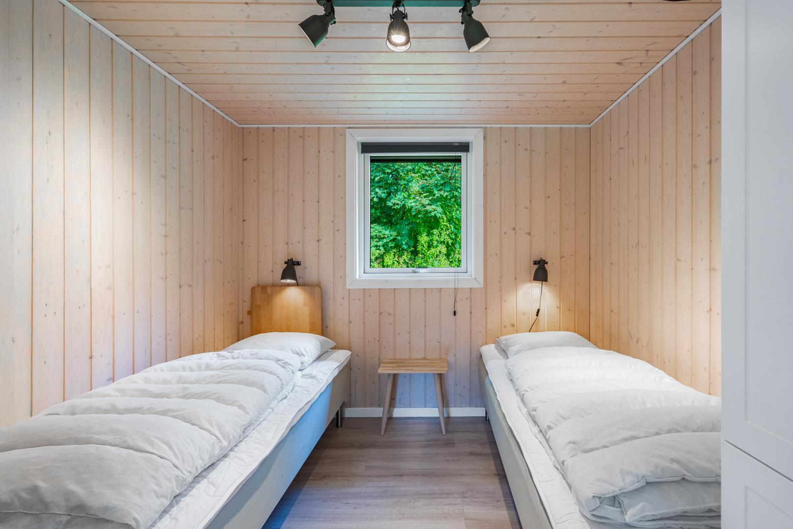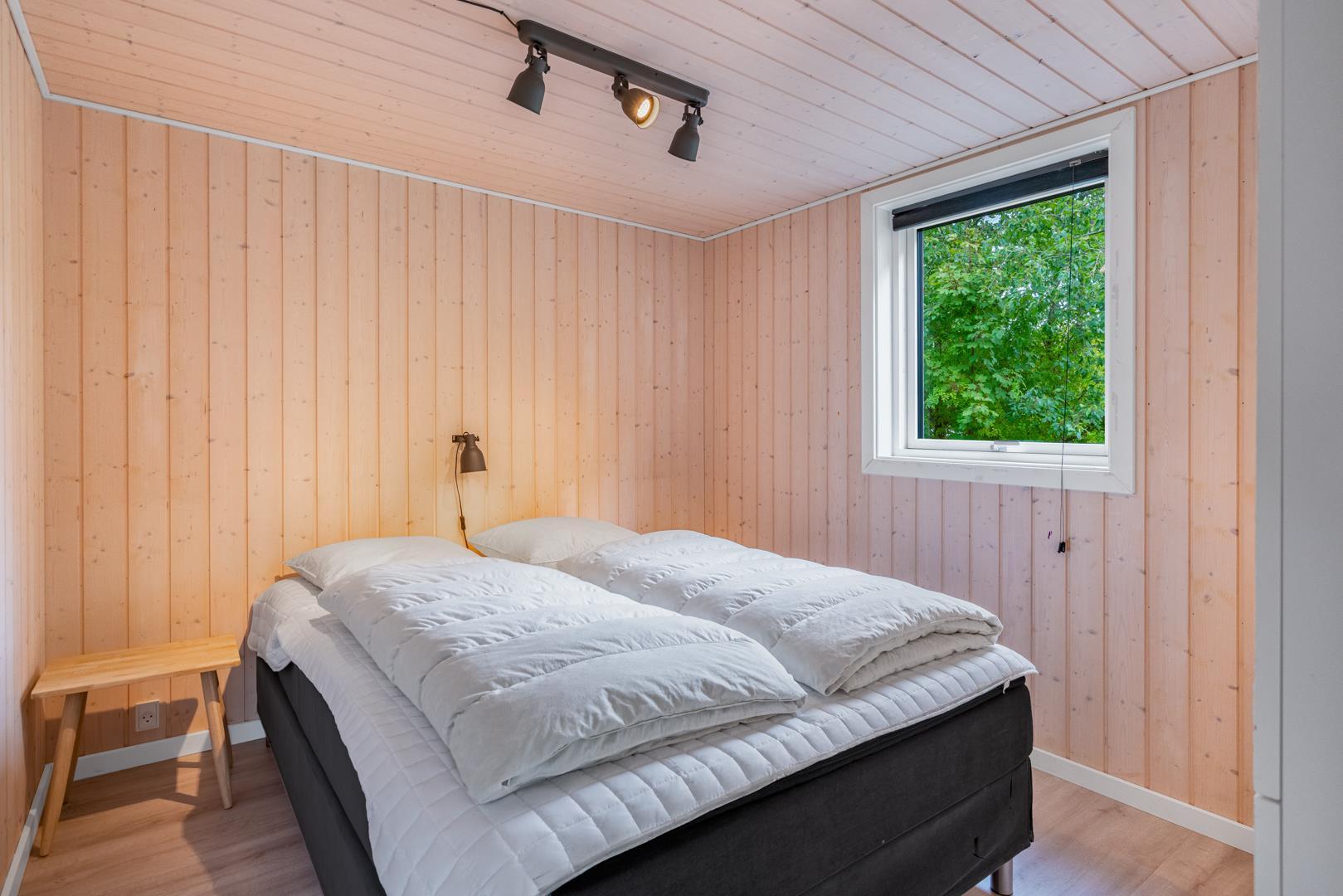 Der er tre soveværelser – to med dobbeltseng og ét med enkeltsenge – samt en åben hems, som børnene vil elske som ekstra sove- eller legeplads.