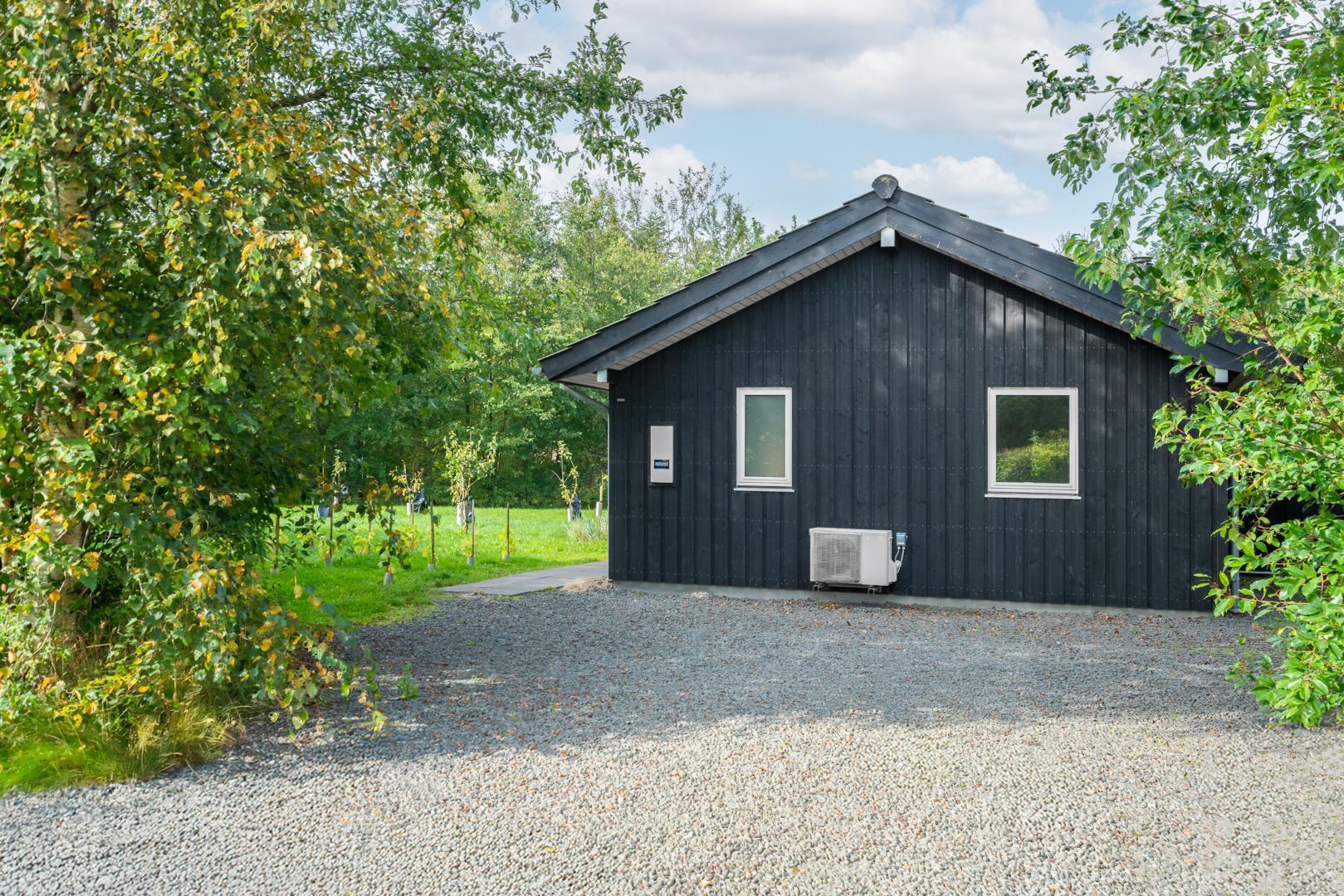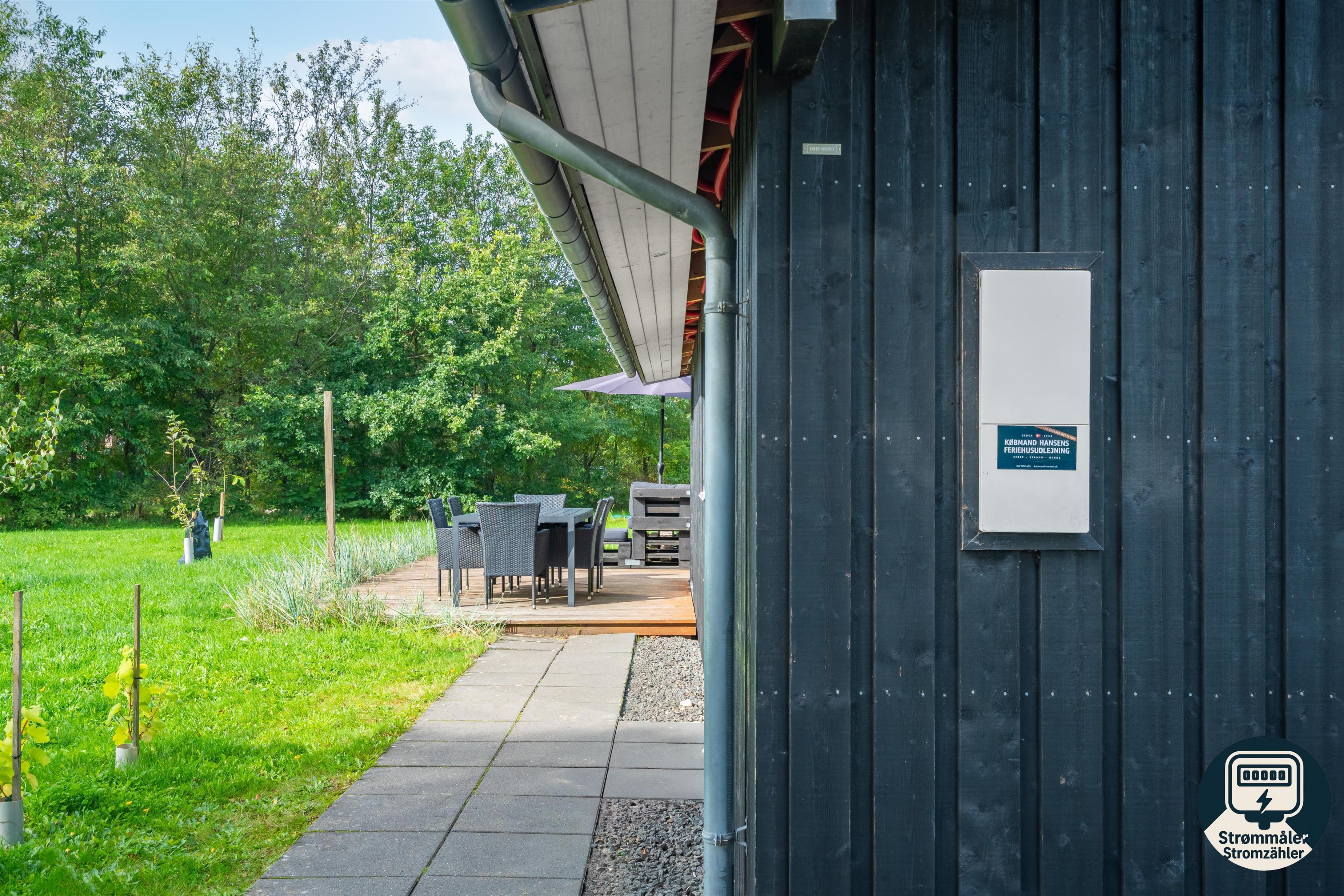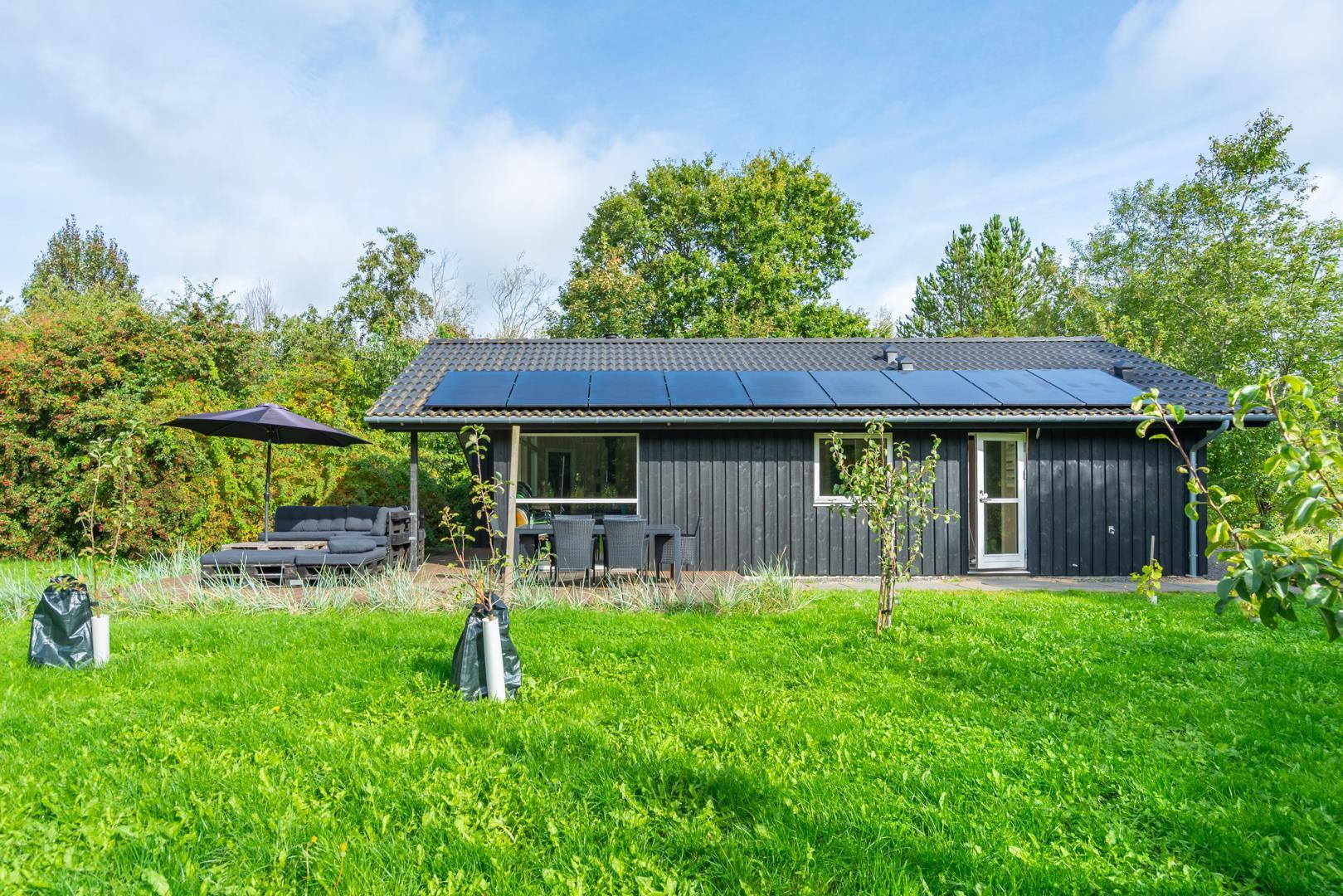 Solcellerne på taget producerer en del af sommerhusets strømforbrug, så I både sparer penge og passer på miljøet. Kun når solenergien ikke rækker, afregnes almindeligt elforbrug.