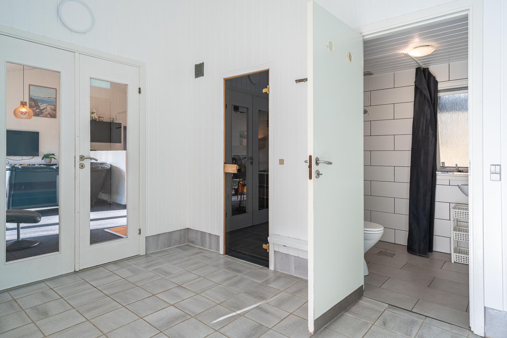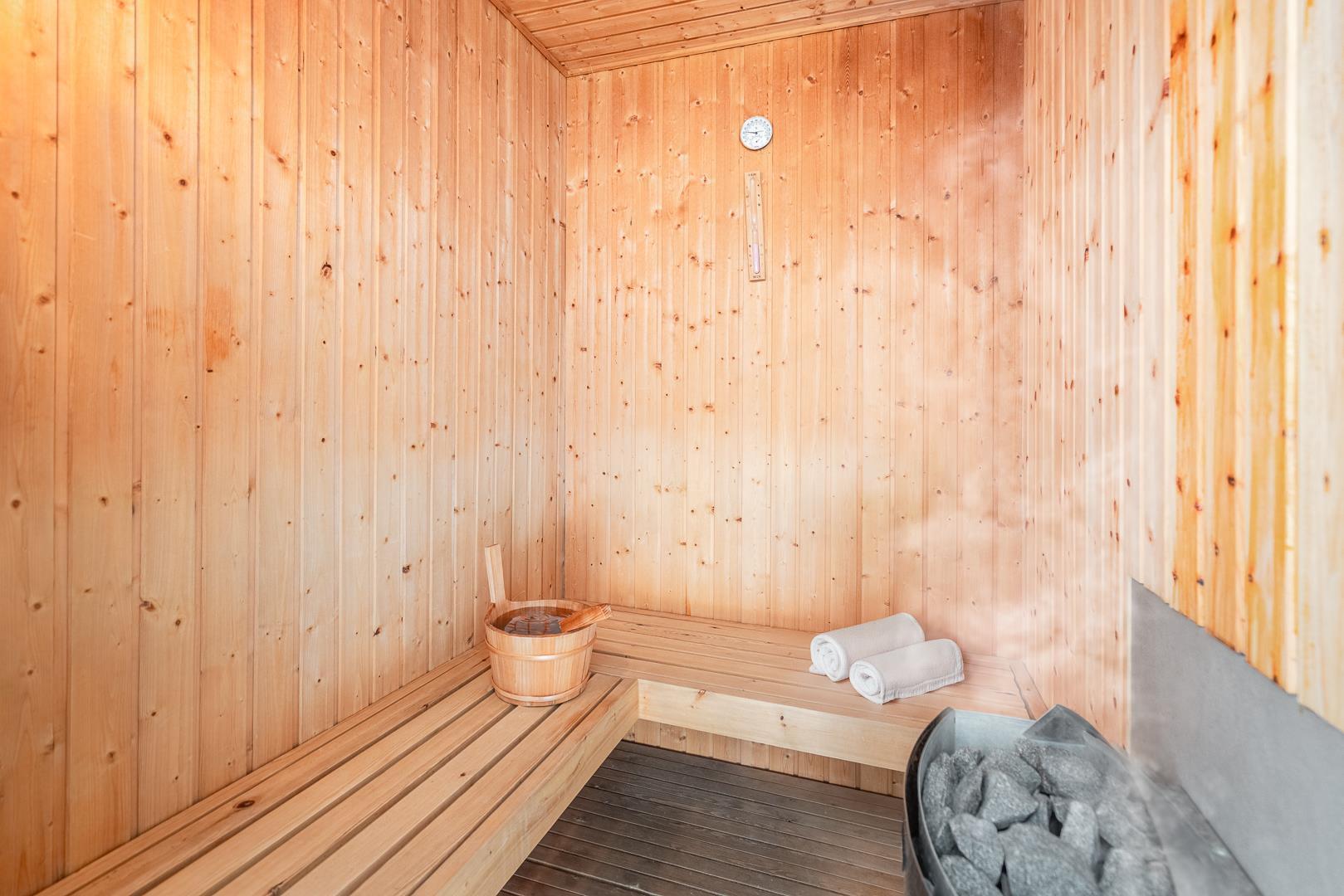 To pæne badeværelser gør morgenerne nemmere – det ene med gulvvarme. Wellnessafdelingen med spa, sauna og egen pool bliver hurtigt familiens favorit – her kan I slappe af og nyde roen.