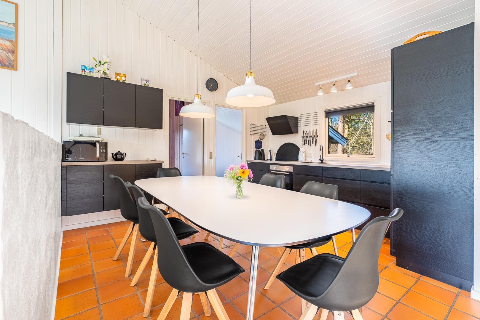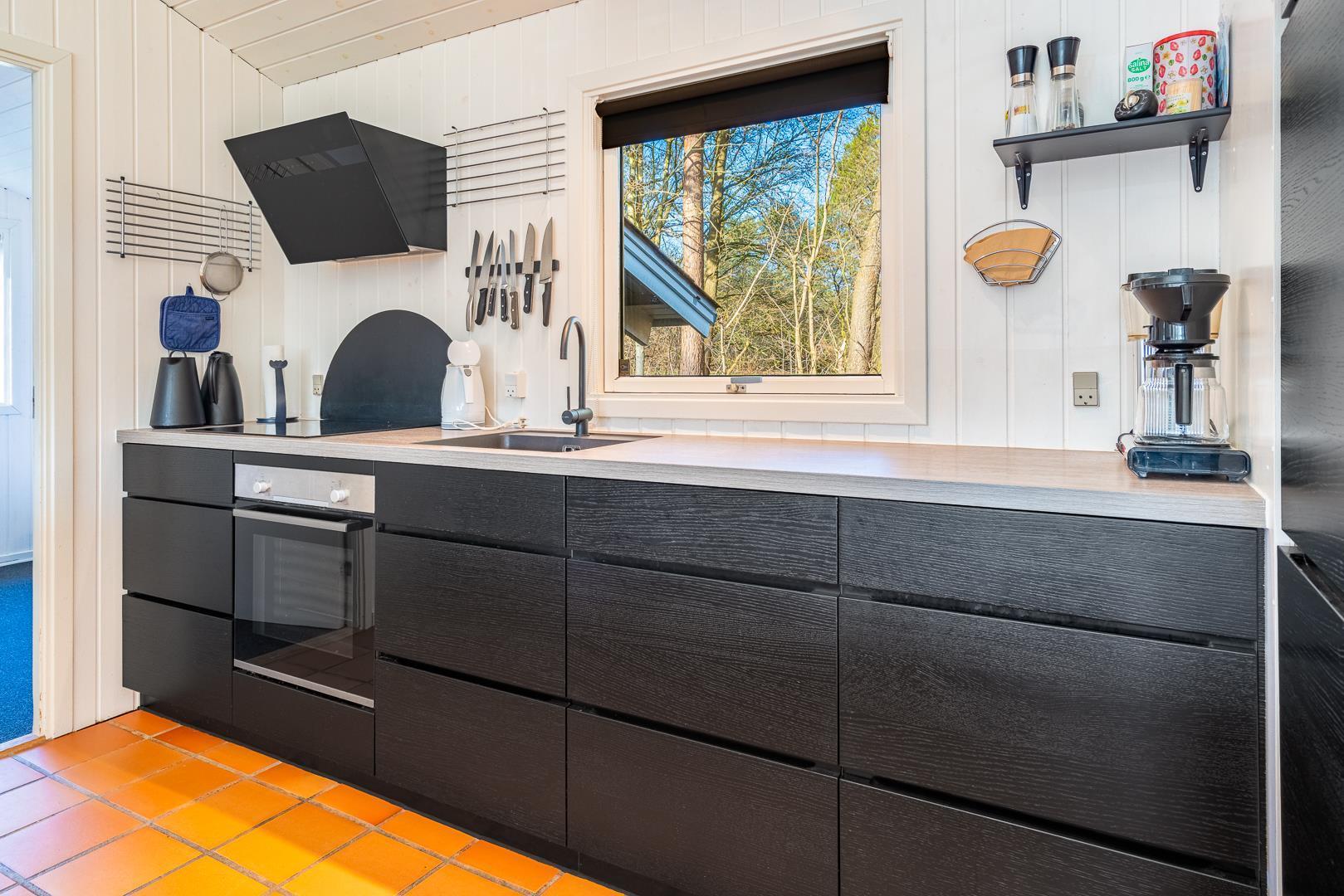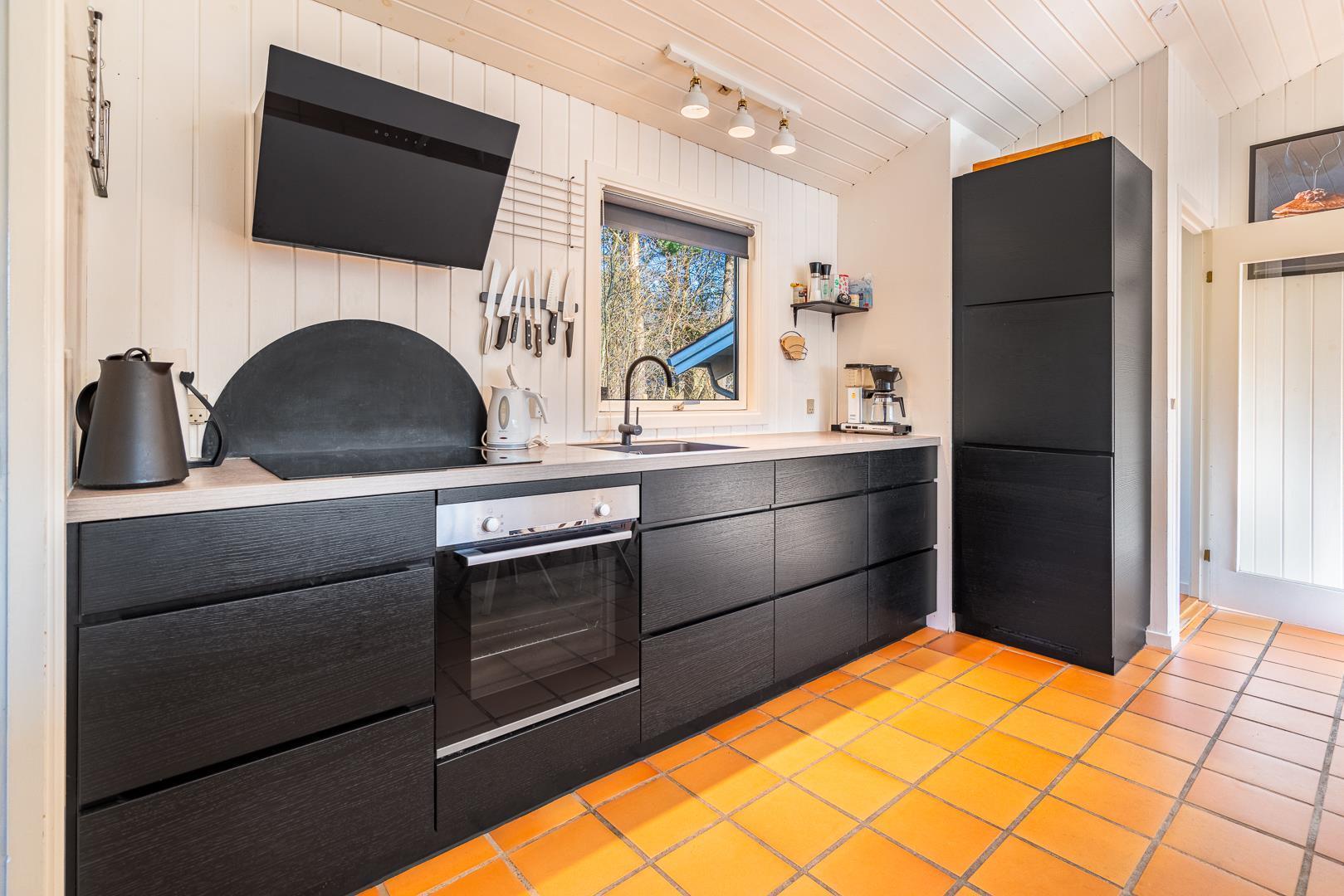 I det åbne opholdsrum samles man omkring brændeovnen til spil, film eller hyggelige aftener med Chromecast. Køkkenet er moderne og funktionelt med stort køle-/fryseskab, opvaskemaskine og rigelig bordplads, så madlavningen bliver en fornøjelse.