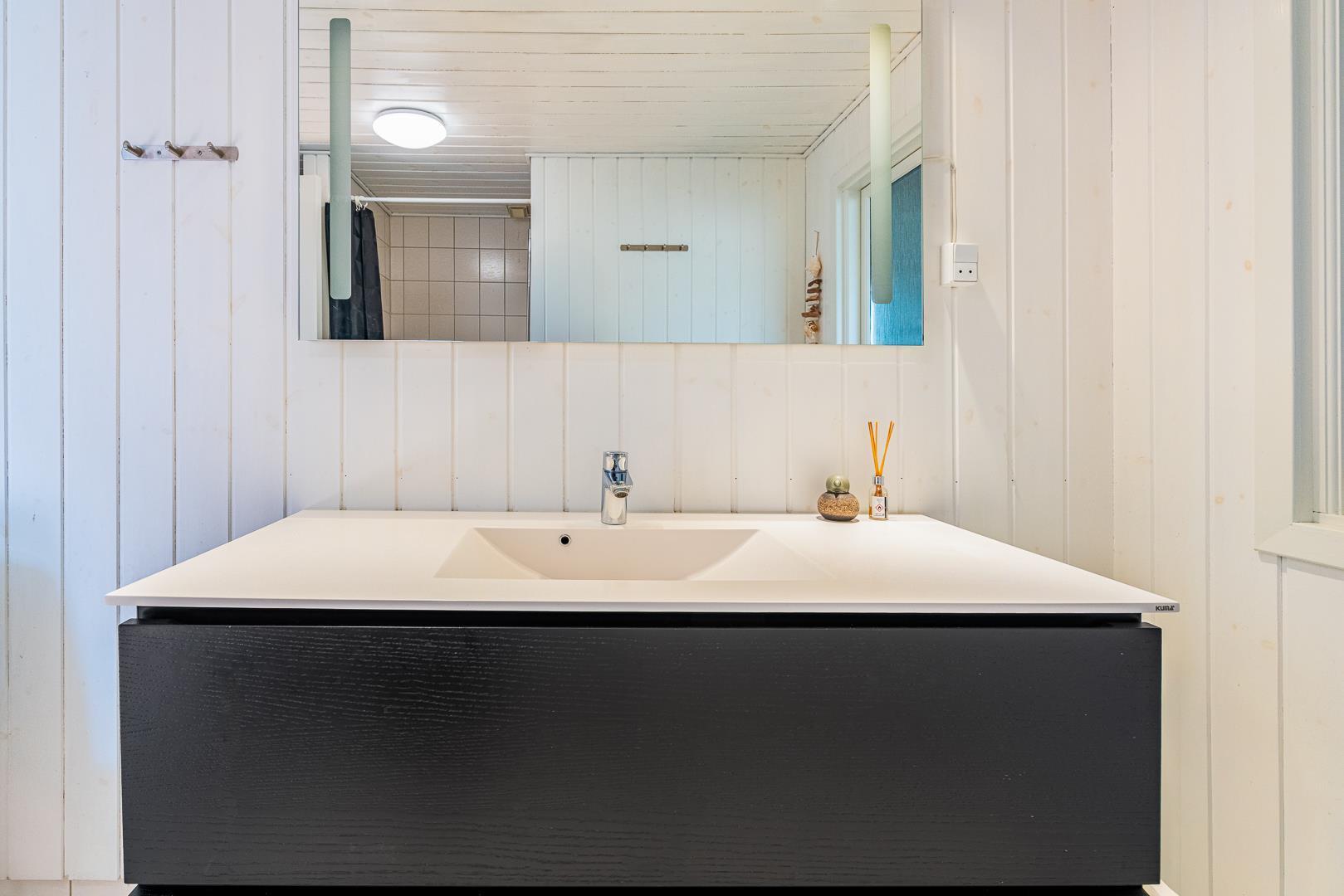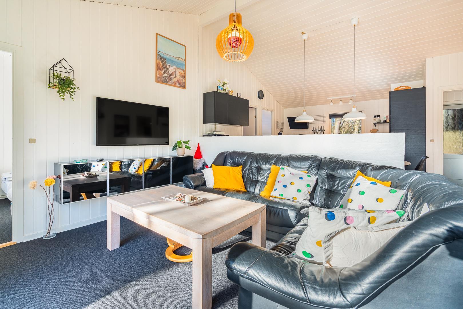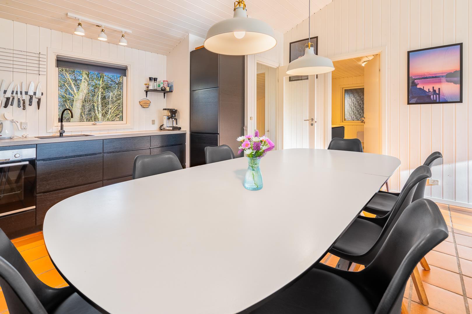 I det åbne opholdsrum samles man omkring brændeovnen til spil, film eller hyggelige aftener med Chromecast. Køkkenet er moderne og funktionelt med stort køle-/fryseskab, opvaskemaskine og rigelig bordplads, så madlavningen bliver en fornøjelse.