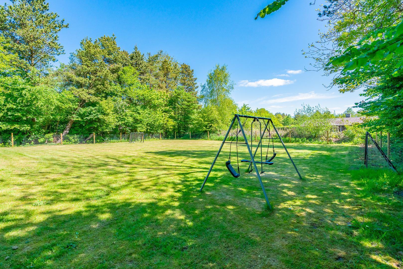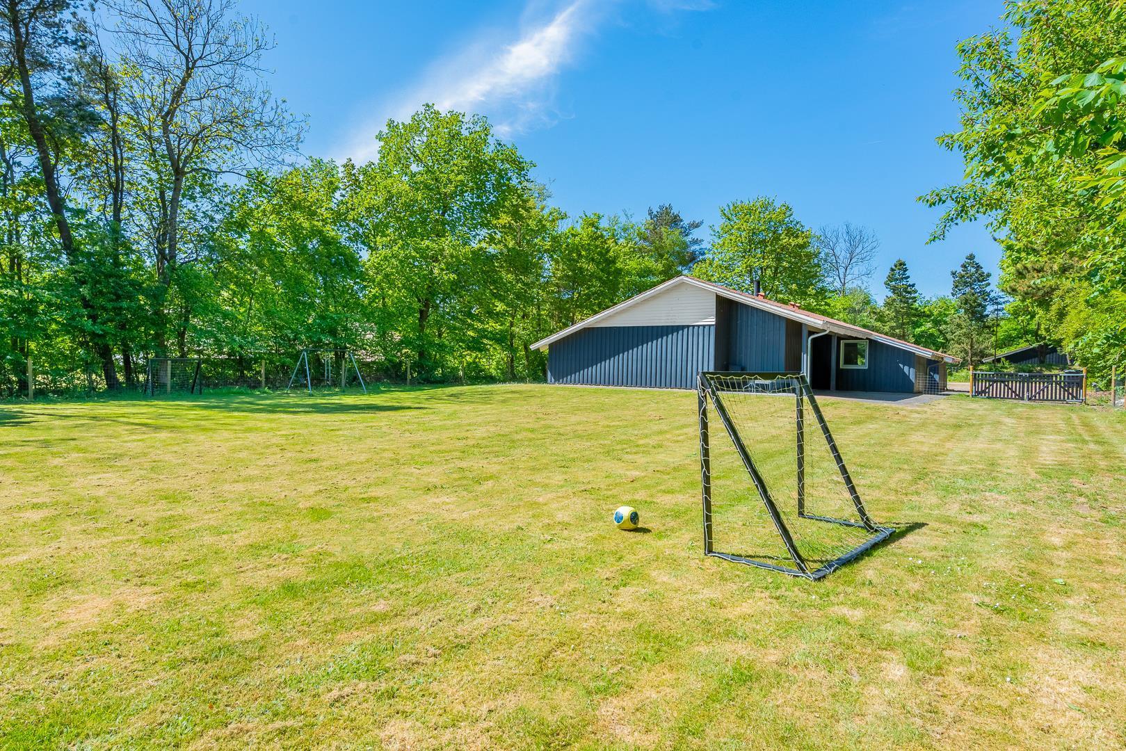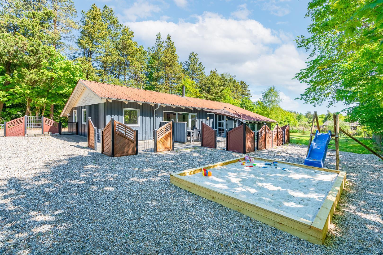 De yngste gæster vil elske trampolinen, gyngen og sandkassen – her er lagt op til timevis af sjov under åben himmel.