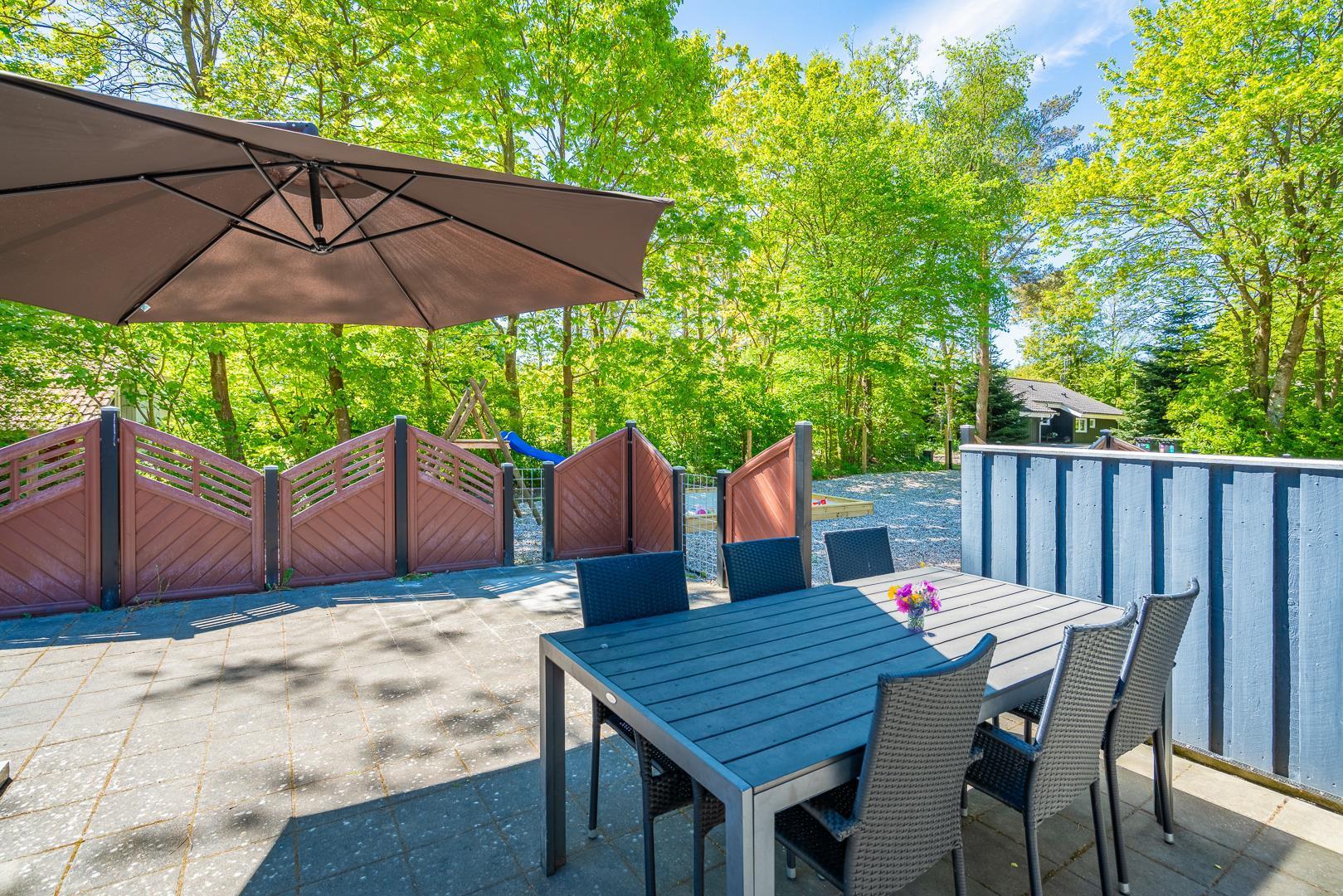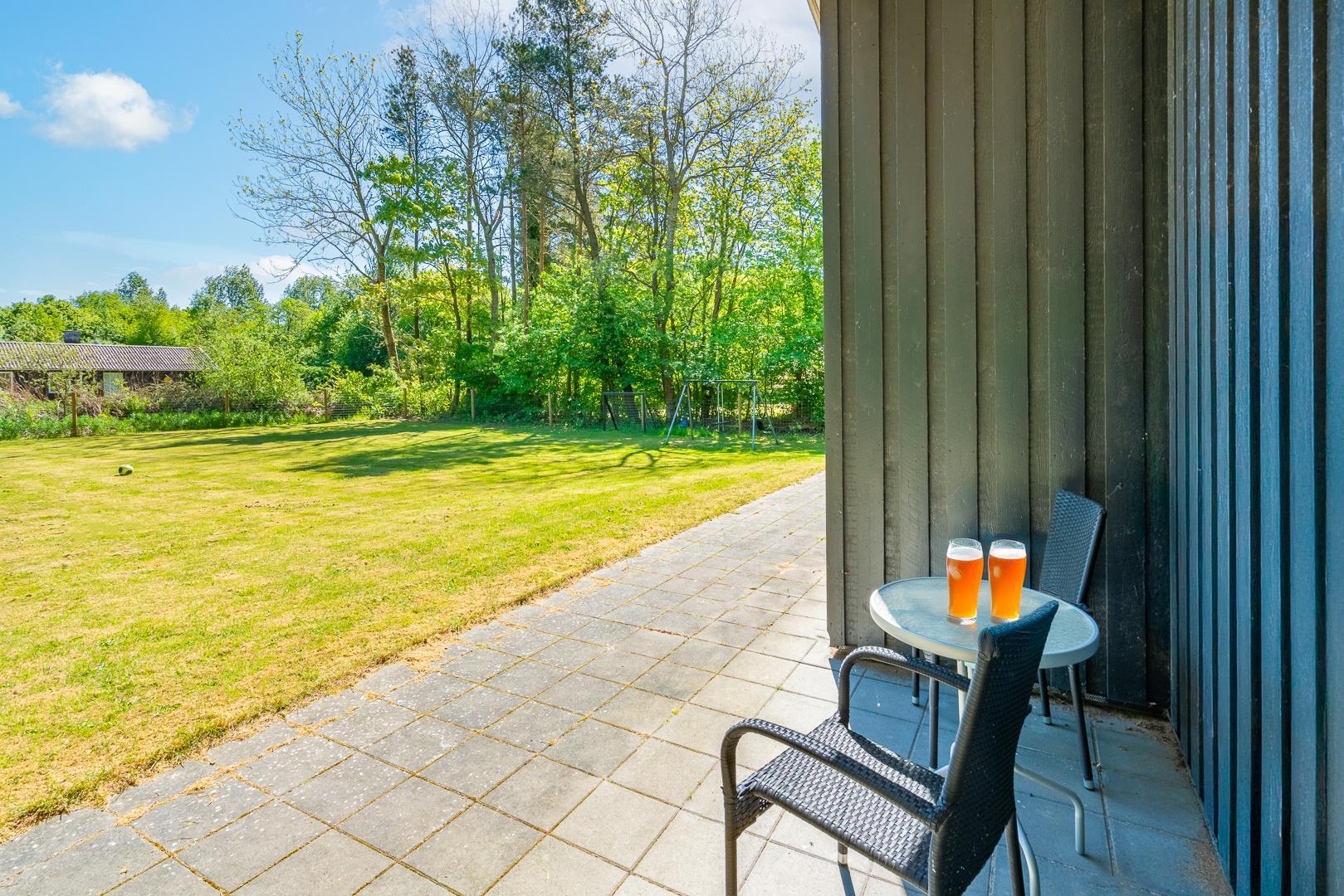 På den lukkede terrasse kan I nyde morgenkaffen, solskinnet eller et glas vin om aftenen. Haven byder på havemøbler, læhegn og god plads til både leg og ro.
