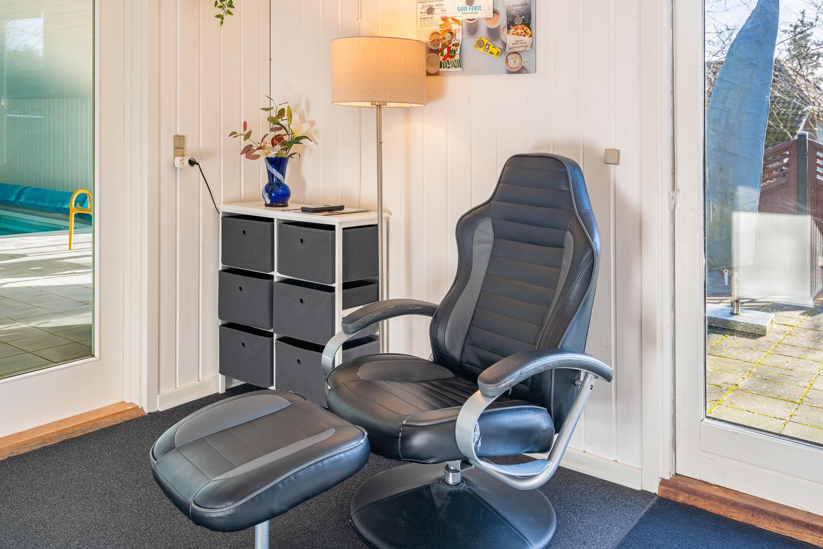 Dette moderne sommerhus har alt, hvad hjertet begærer: pool, sauna, god plads og en sikker have. Her føler alle sig velkomne – året rundt.