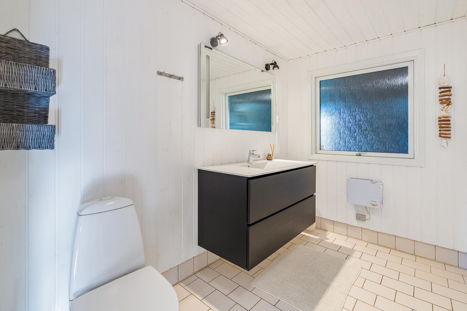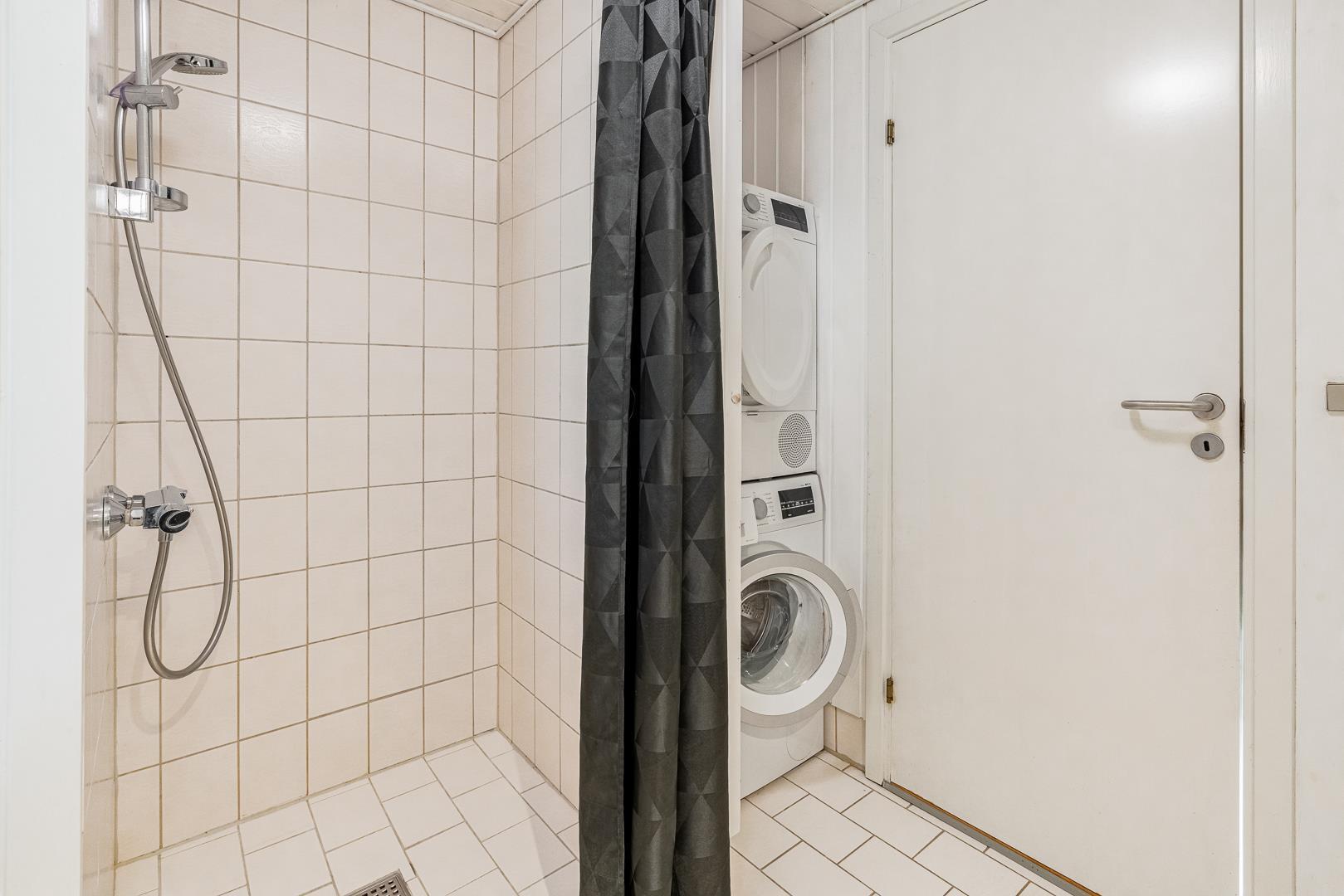 Praktiske detaljer som vaskemaskine og tørretumbler gør huset velegnet til både børnefamilier og gæster, der bliver i længere tid.