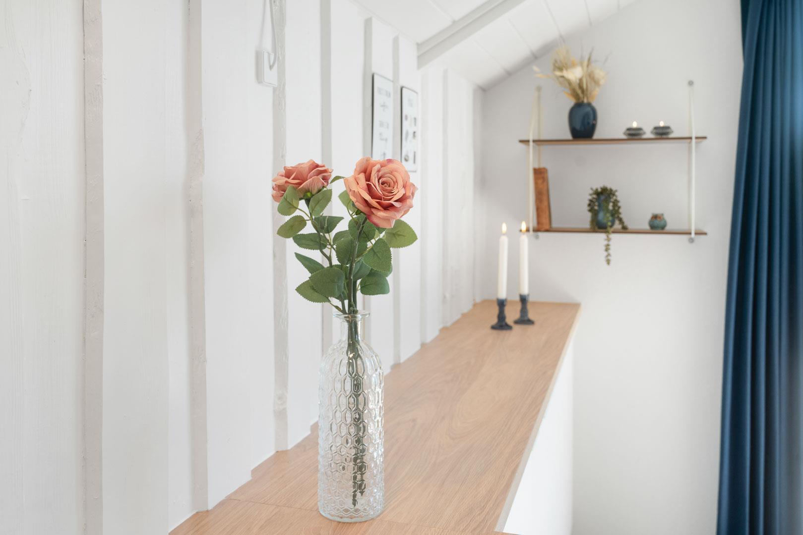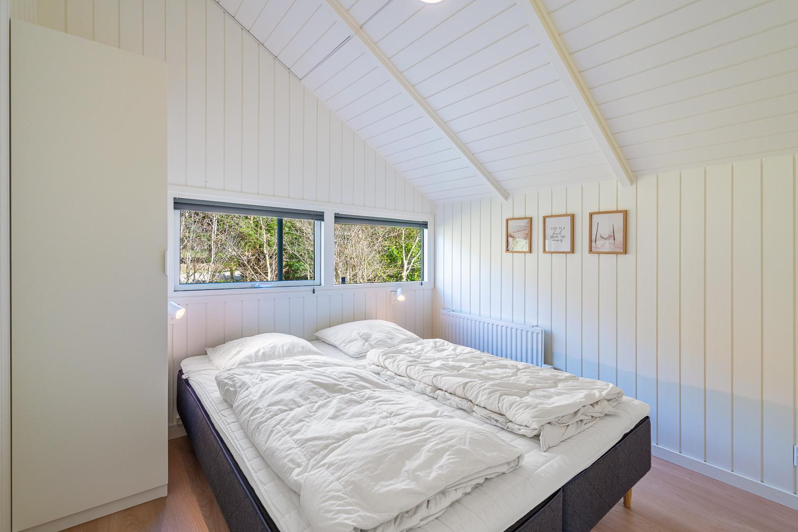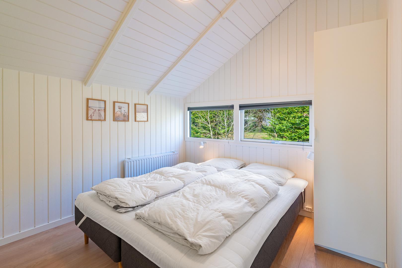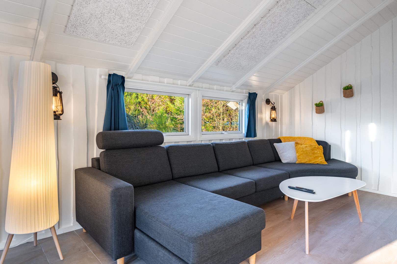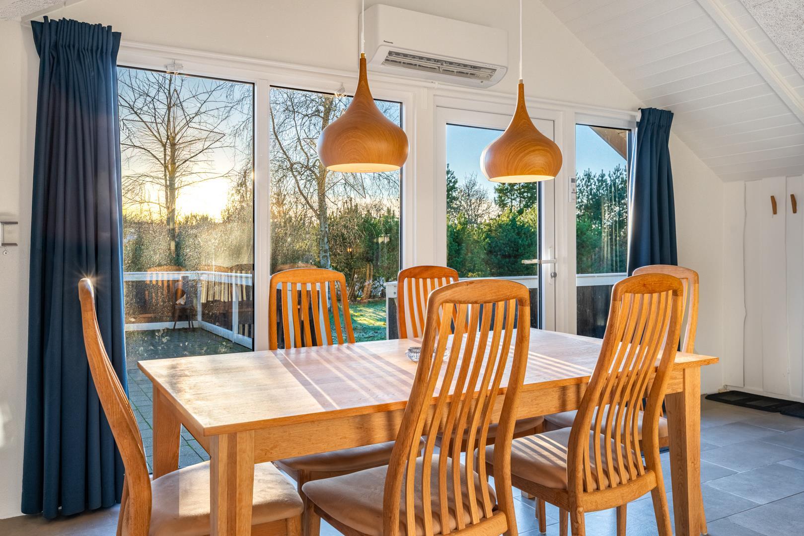 Efter en dag i den friske luft kan I slænge jer i sofaen, se en film via Chromecast eller bare nyde stilheden. En varmepumpe sørger for et behageligt indeklima. Det moderne køkken er godt udstyret med alt, hvad I behøver – herunder en opvaskemaskine. Ved siden af indbyder det store spisebord til fælles måltider og hyggelige aftener.