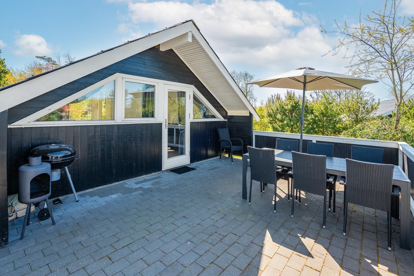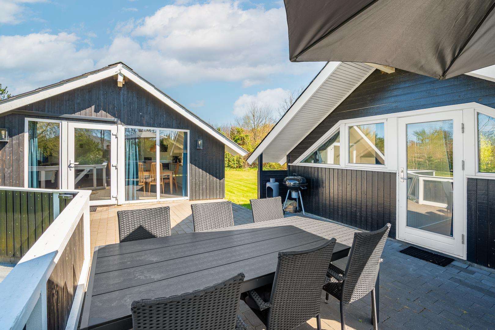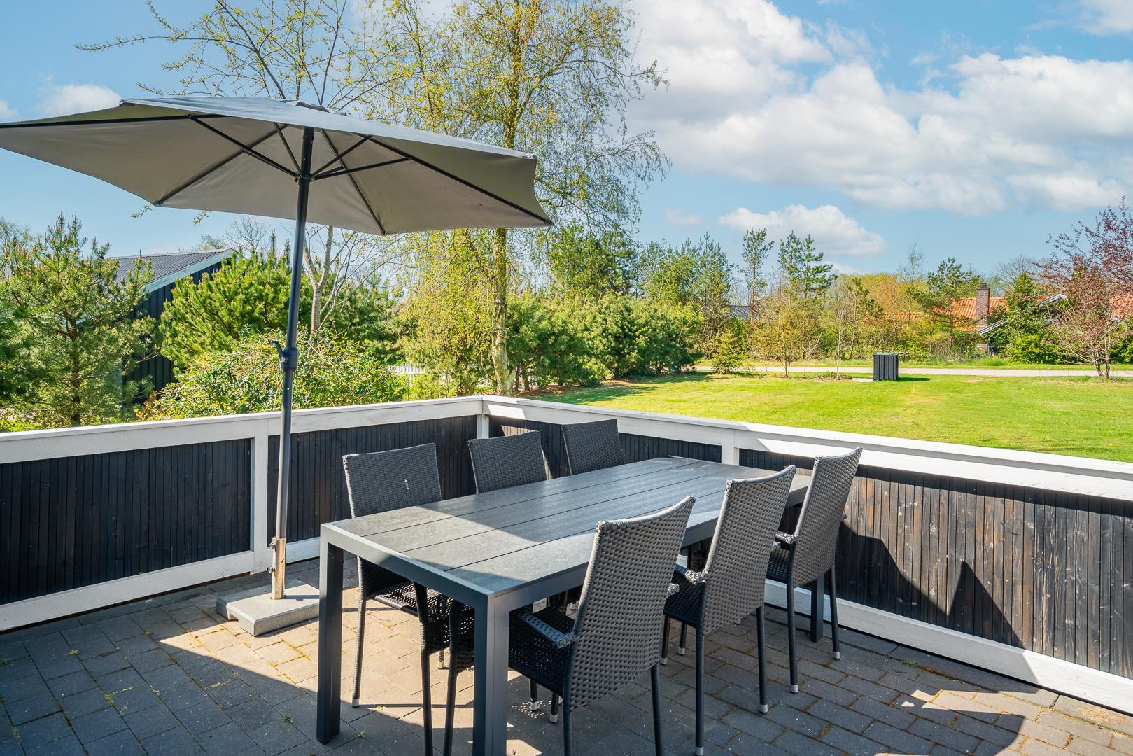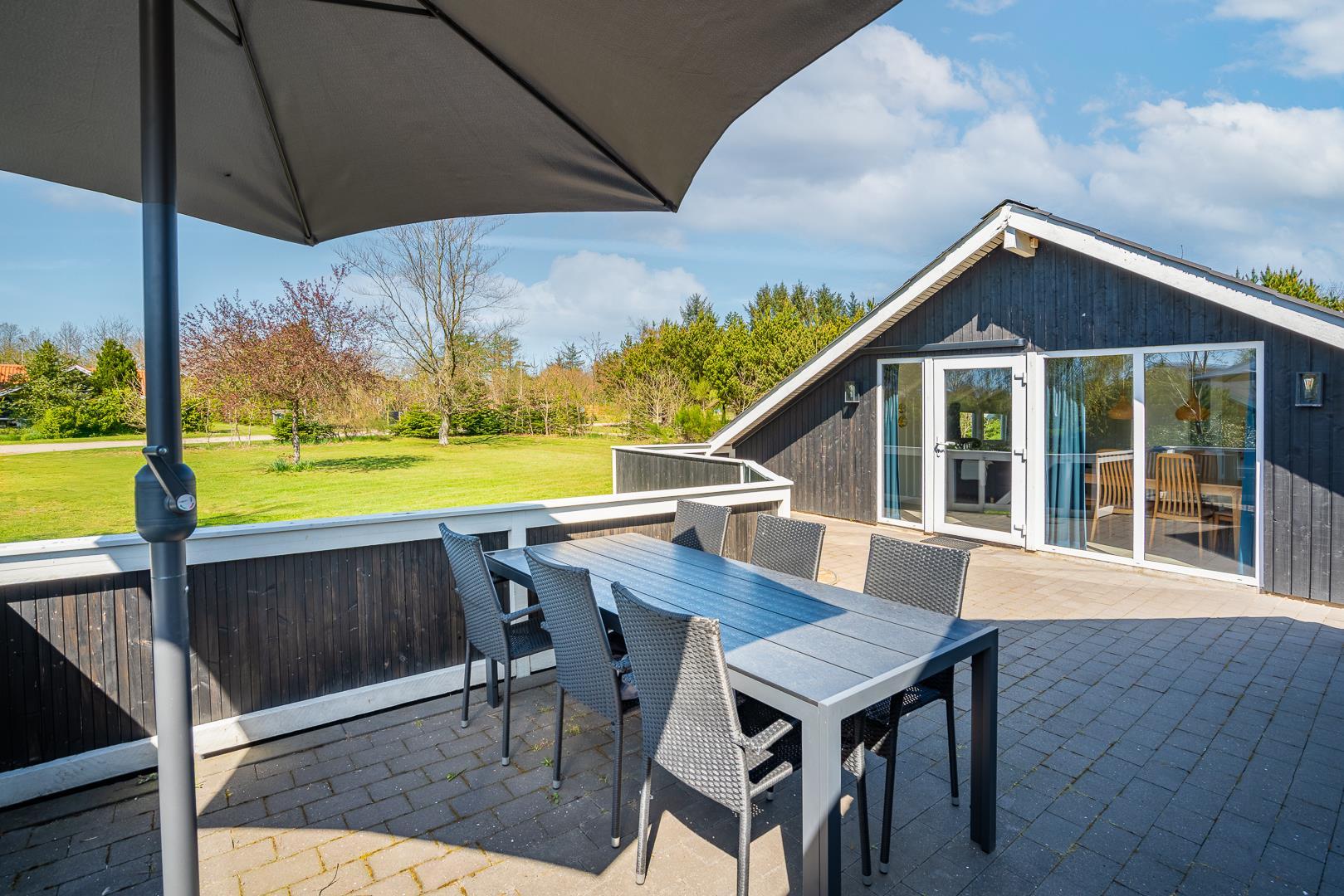 På den delvist overdækkede, lukkede terrasse kan I nyde ferien i det fri – hvad enten det er til morgenmad i solen eller til hyggelige aftener med familien.