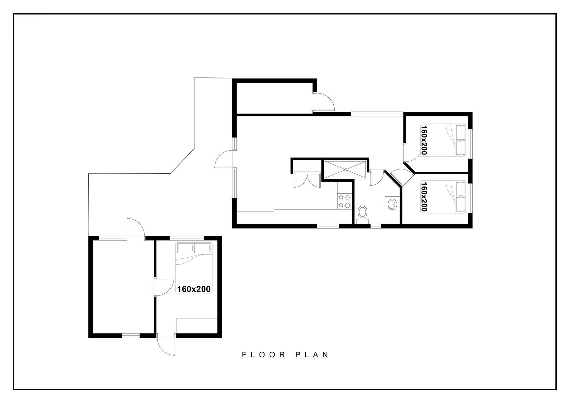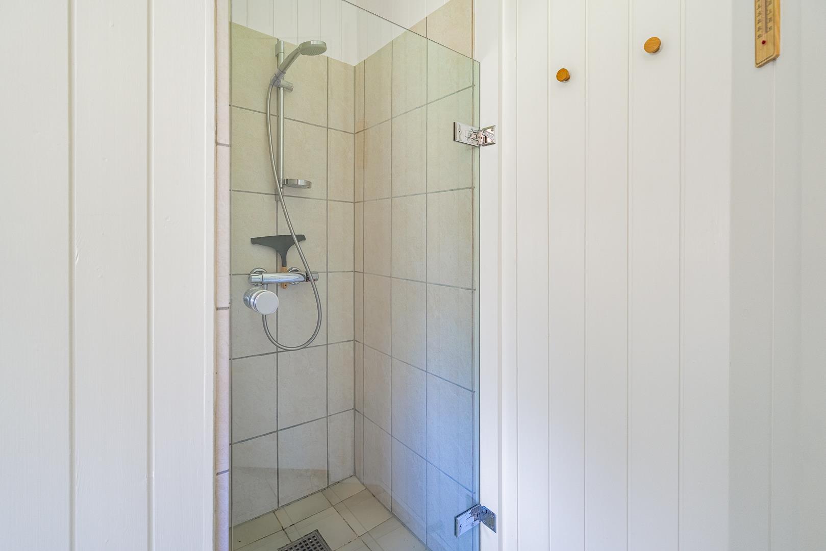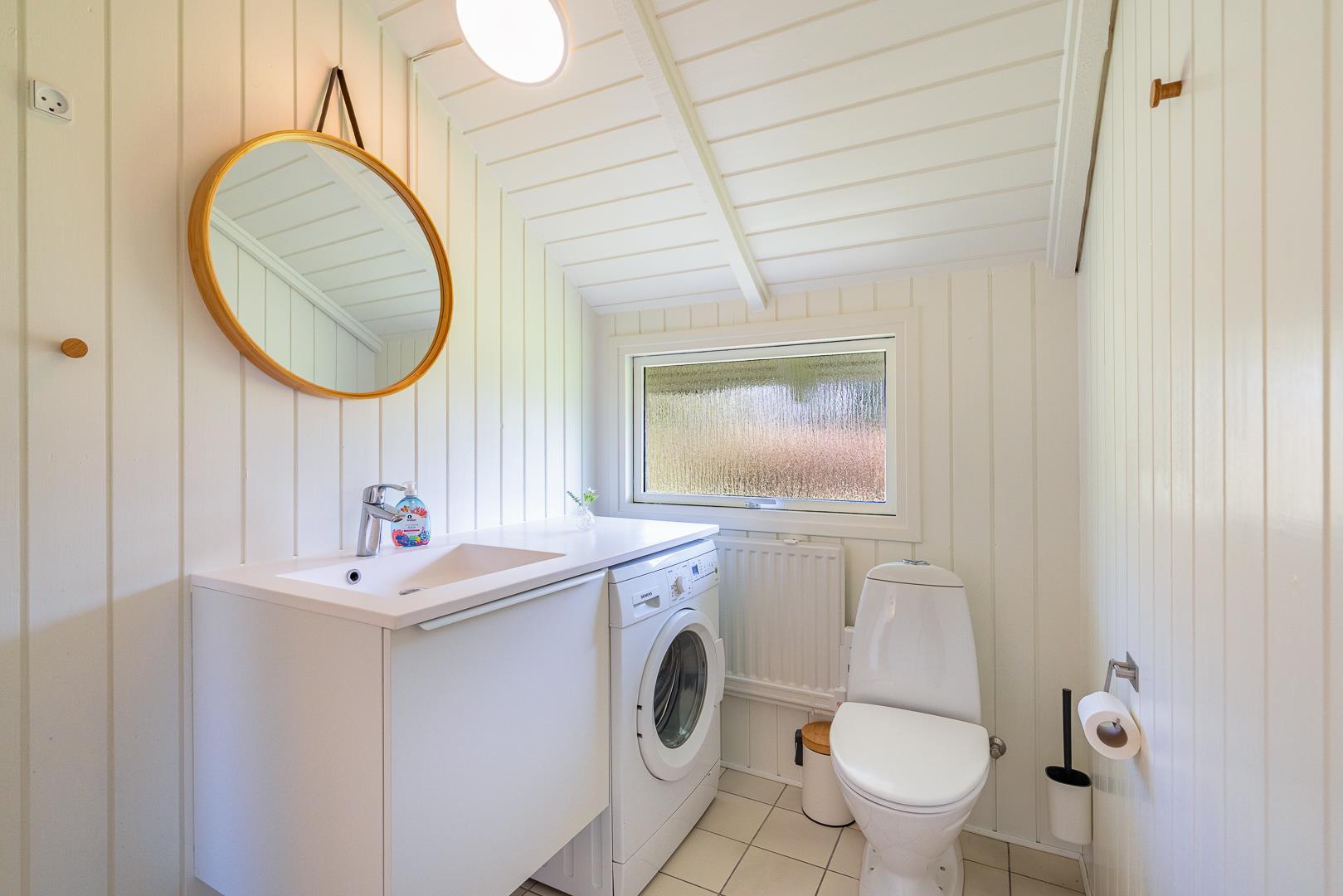 Der er tre soveværelser, alle med dobbeltseng (160 x 200 cm), så hele familien kan sove godt. Badeværelset er funktionelt indrettet med bruseniche og vaskemaskine – praktisk for længere ophold eller ferie med børn.