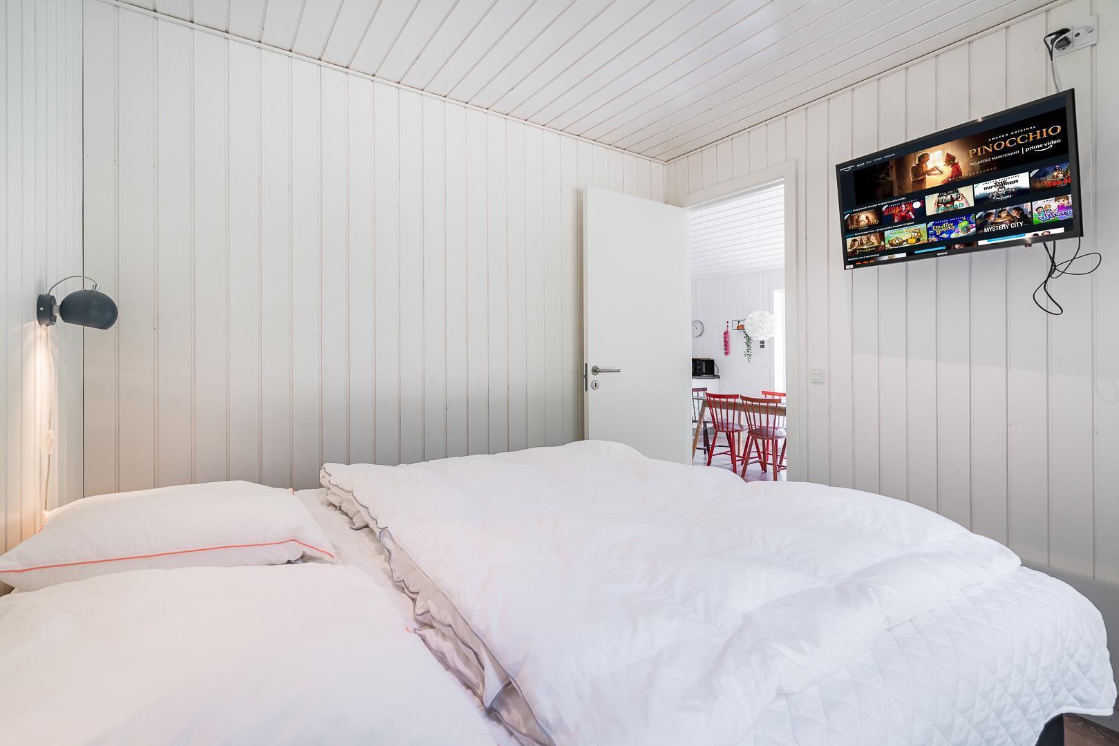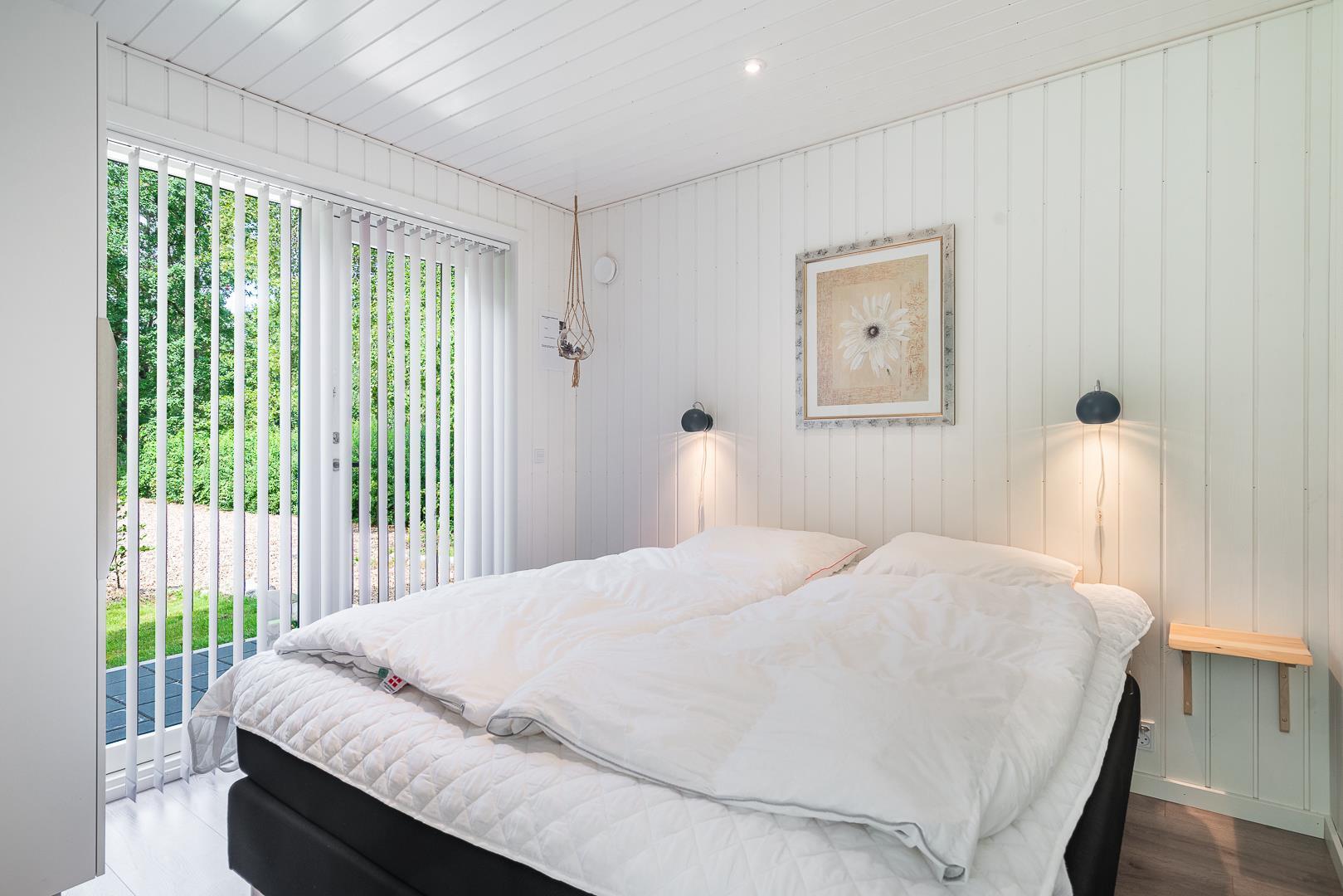 Der er tre soveværelser med dobbeltsenge og god opbevaringsplads, og hemsen fungerer som et ekstra hyggeligt opholdssted for familiens yngste. Badeværelset byder på gulvvarme, vaskemaskine og tørretumbler – alt sammen med fokus på komfort og funktionalitet, også til længere ophold.