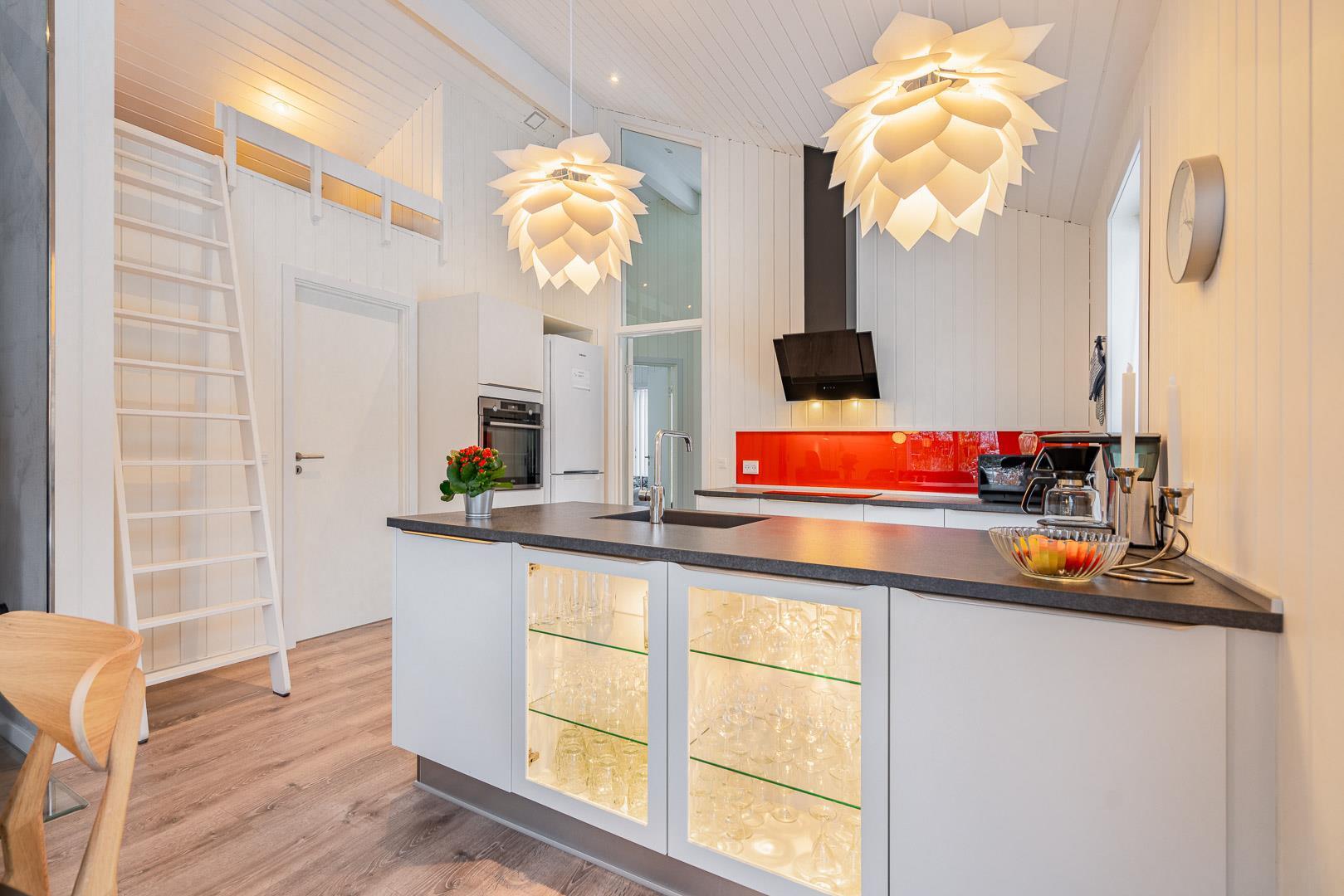 Køkkenet er moderne og velindrettet med alt, hvad I skal bruge – inklusiv opvaskemaskine, ovn og god arbejdsplads. Mens maden simrer, kan børnene hygge sig på hemsen, som er et populært fristed til leg, spil eller stille læsning.
