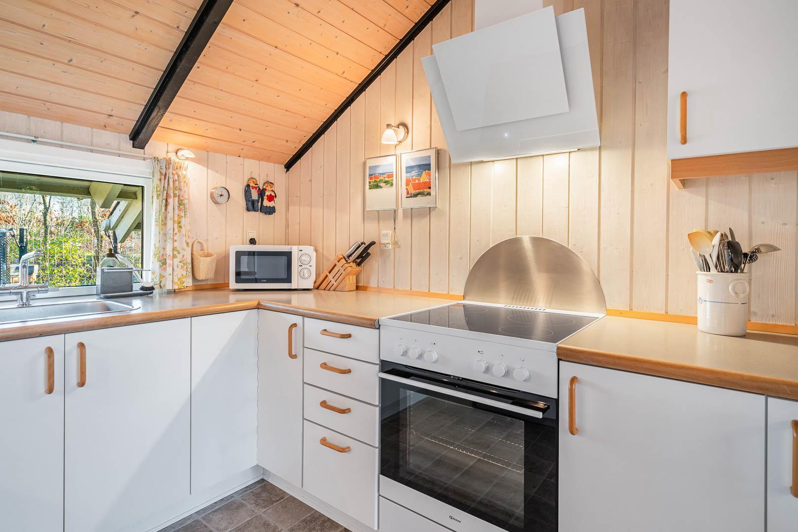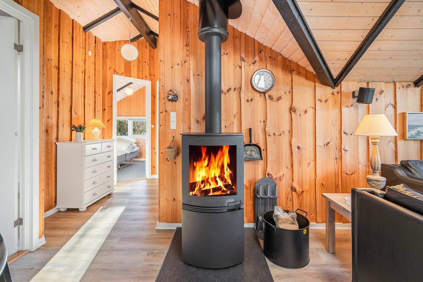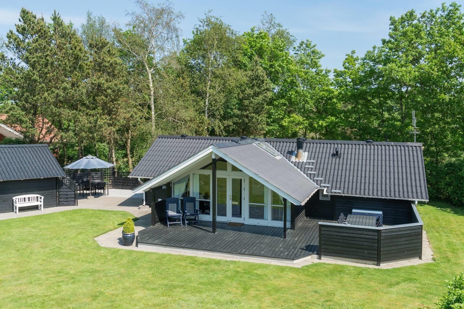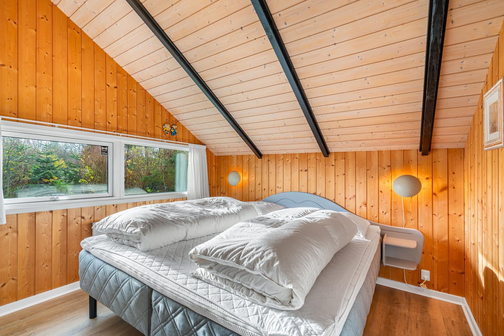 På en skøn grund, med masser af grøn beplantning, der afskærmer og giver både læ og giver en uforstyrret grund, finder I dette meget personlige og velplejede feriehus. Her er stor græsplæne med gynger, sandkasse og fodboldmål, for de gæster der ønsker at benytte mulighederne for bolspil og leg. 3 soverum med dobbeltsenge. Køkken med opvaskemaskine og mikroovn i forbindelse med spiseplads og en hyggelig stue, hvor brændeovn eller varmepumpe kan være varmekilderne på kolde dage. Badeværelse med spa og sauna, samt et gæstetoilet. I entreen adgang til bryggers, hvor du finder du vaskemaskine og tørretumbler samt opbevaringsplads.
