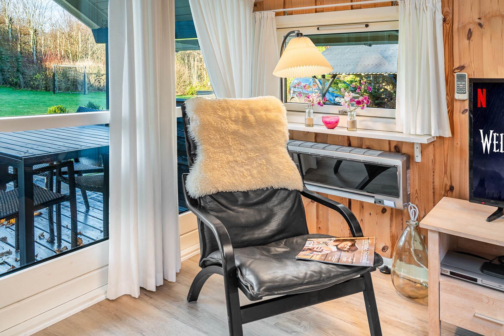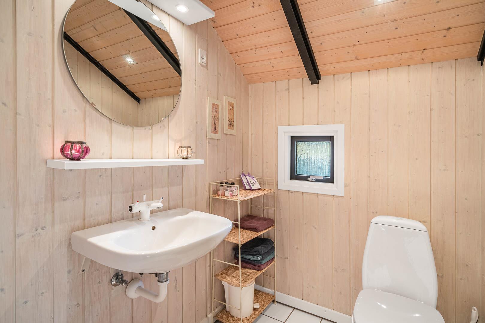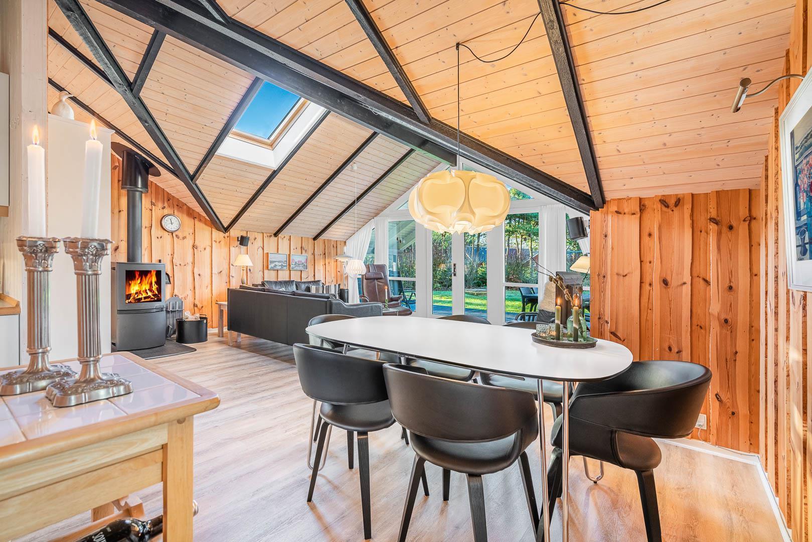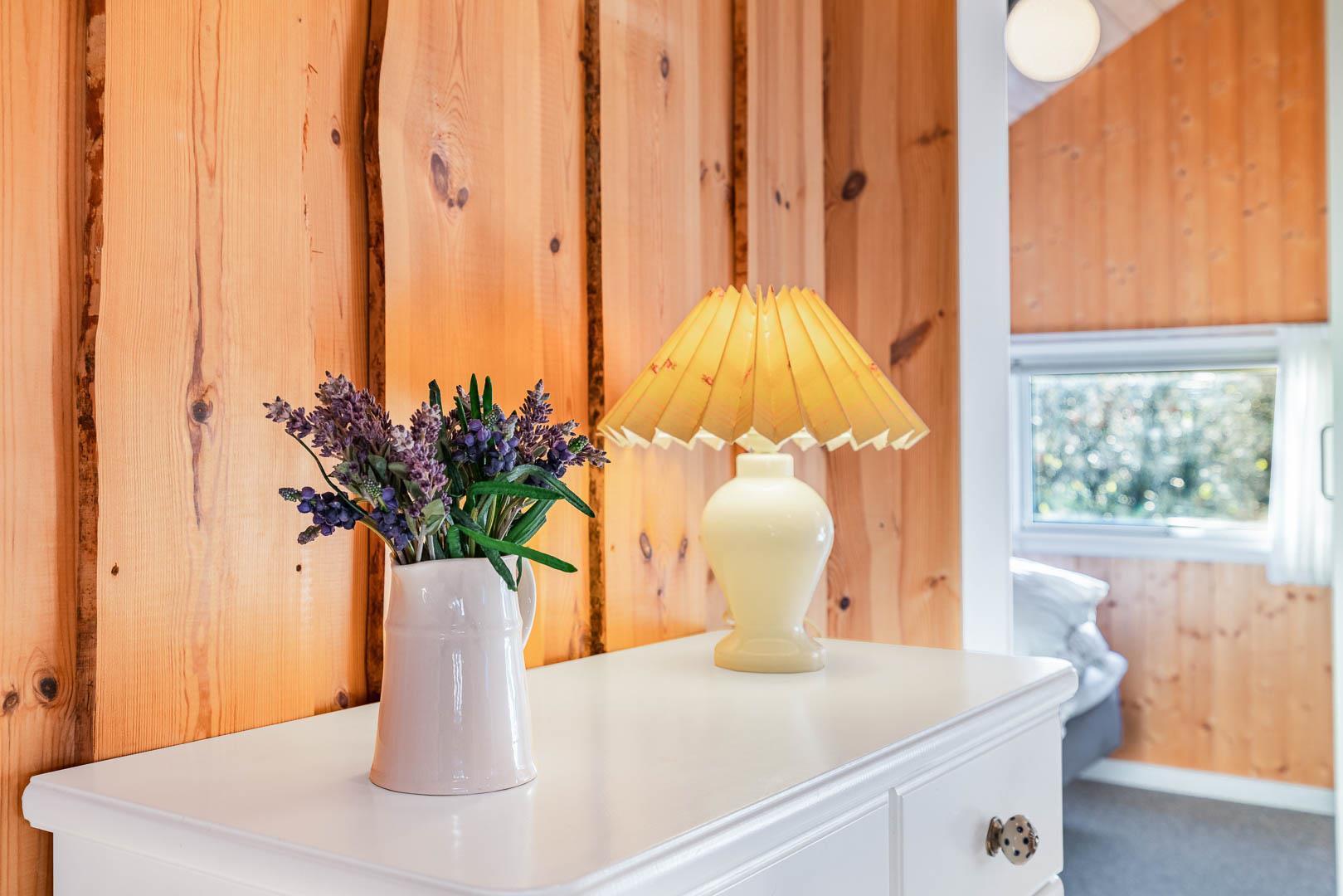 På en skøn grund, med masser af grøn beplantning, der afskærmer og giver både læ og giver en uforstyrret grund, finder I dette meget personlige og velplejede feriehus. Her er stor græsplæne med gynger, sandkasse og fodboldmål, for de gæster der ønsker at benytte mulighederne for bolspil og leg. 3 soverum med dobbeltsenge. Køkken med opvaskemaskine og mikroovn i forbindelse med spiseplads og en hyggelig stue, hvor brændeovn eller varmepumpe kan være varmekilderne på kolde dage. Badeværelse med spa og sauna, samt et gæstetoilet. I entreen adgang til bryggers, hvor du finder du vaskemaskine og tørretumbler samt opbevaringsplads.