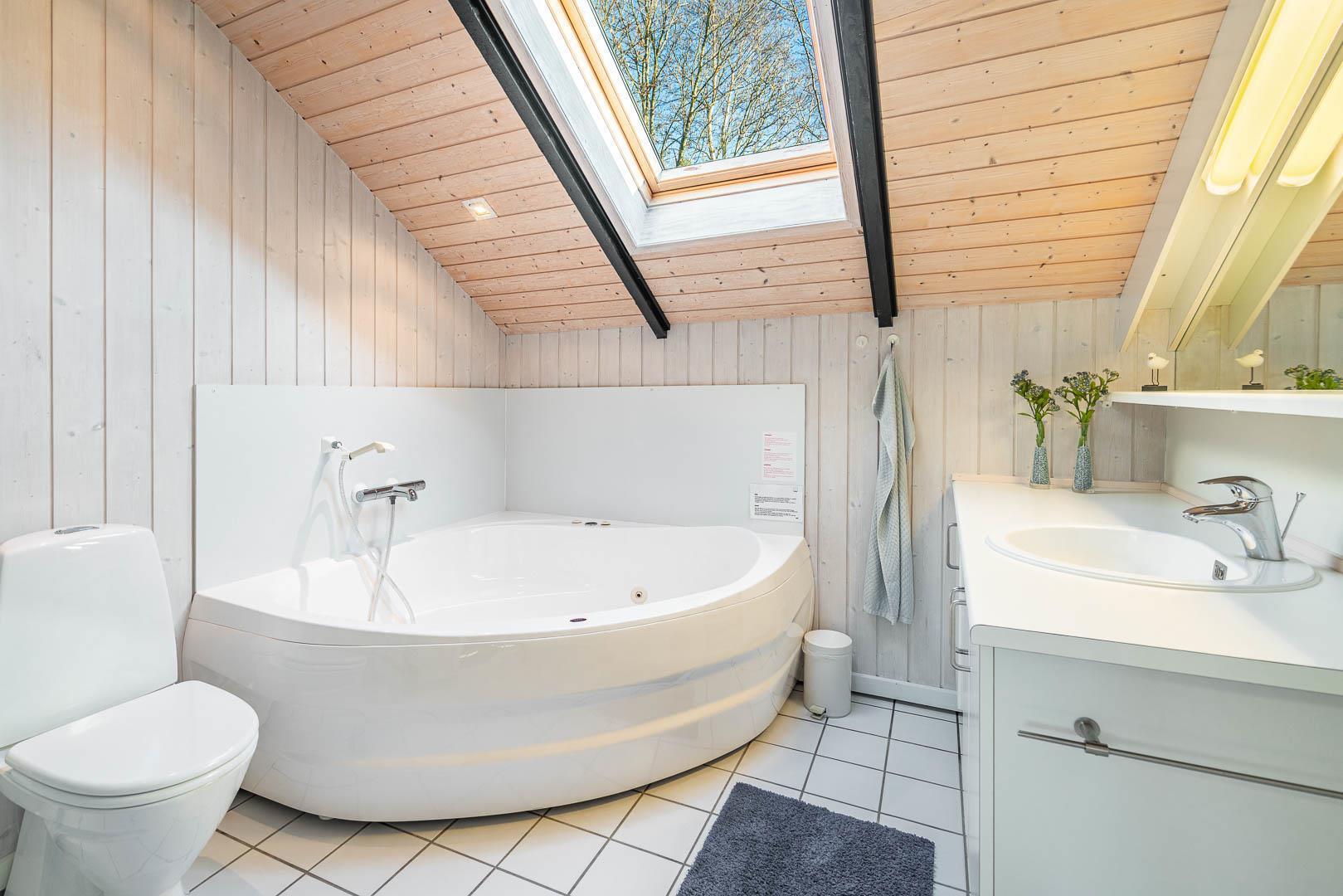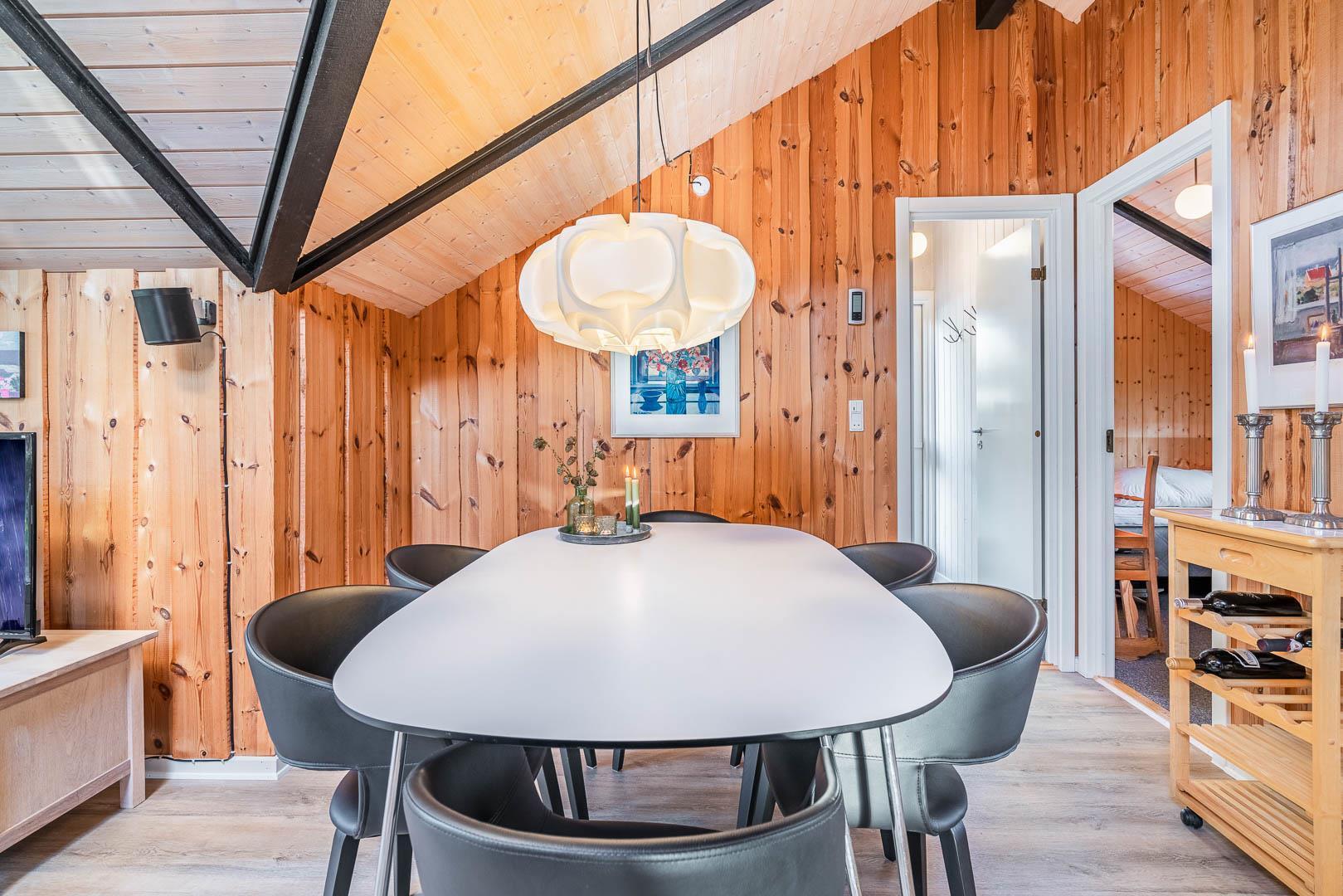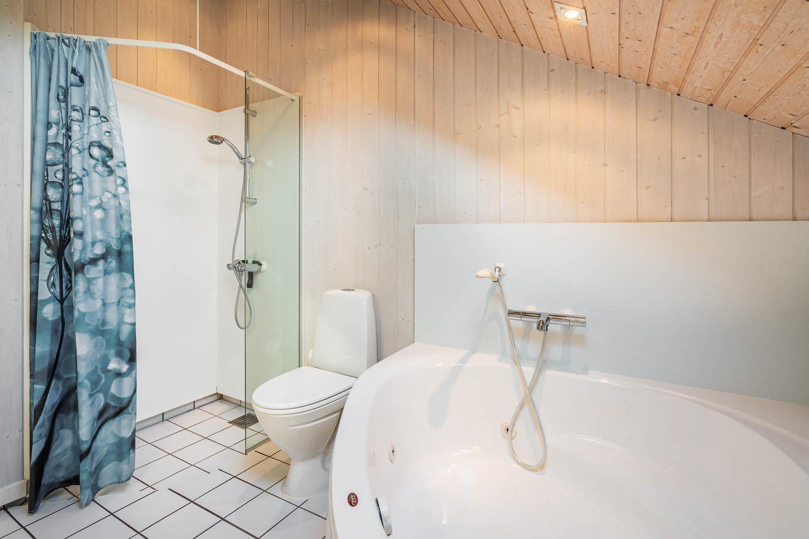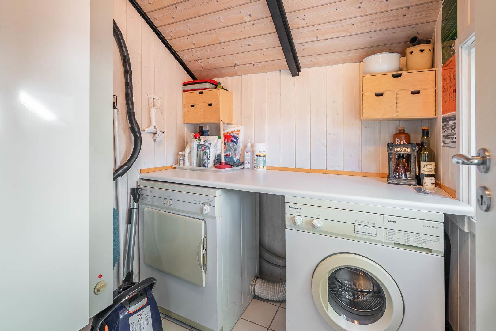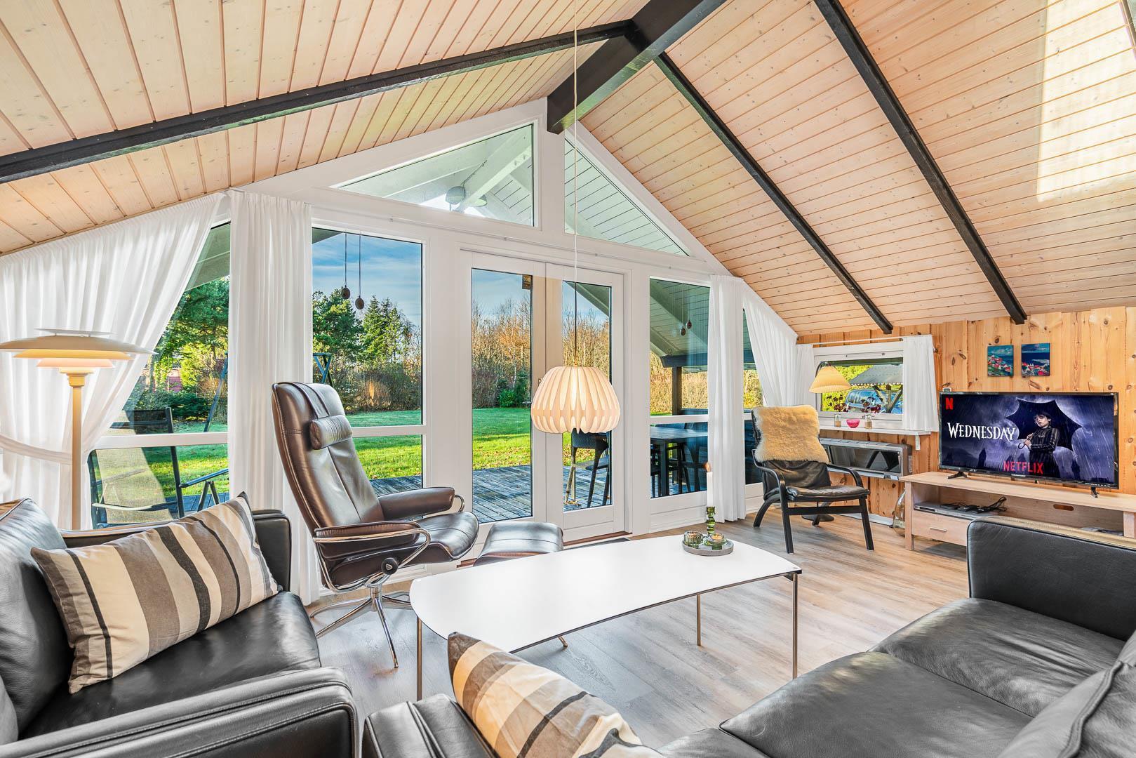 På en skøn grund, med masser af grøn beplantning, der afskærmer og giver både læ og giver en uforstyrret grund, finder I dette meget personlige og velplejede feriehus. Her er stor græsplæne med gynger, sandkasse og fodboldmål, for de gæster der ønsker at benytte mulighederne for bolspil og leg. 3 soverum med dobbeltsenge. Køkken med opvaskemaskine og mikroovn i forbindelse med spiseplads og en hyggelig stue, hvor brændeovn eller varmepumpe kan være varmekilderne på kolde dage. Badeværelse med spa og sauna, samt et gæstetoilet. I entreen adgang til bryggers, hvor du finder du vaskemaskine og tørretumbler samt opbevaringsplads.