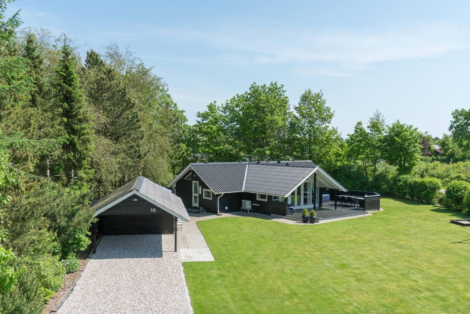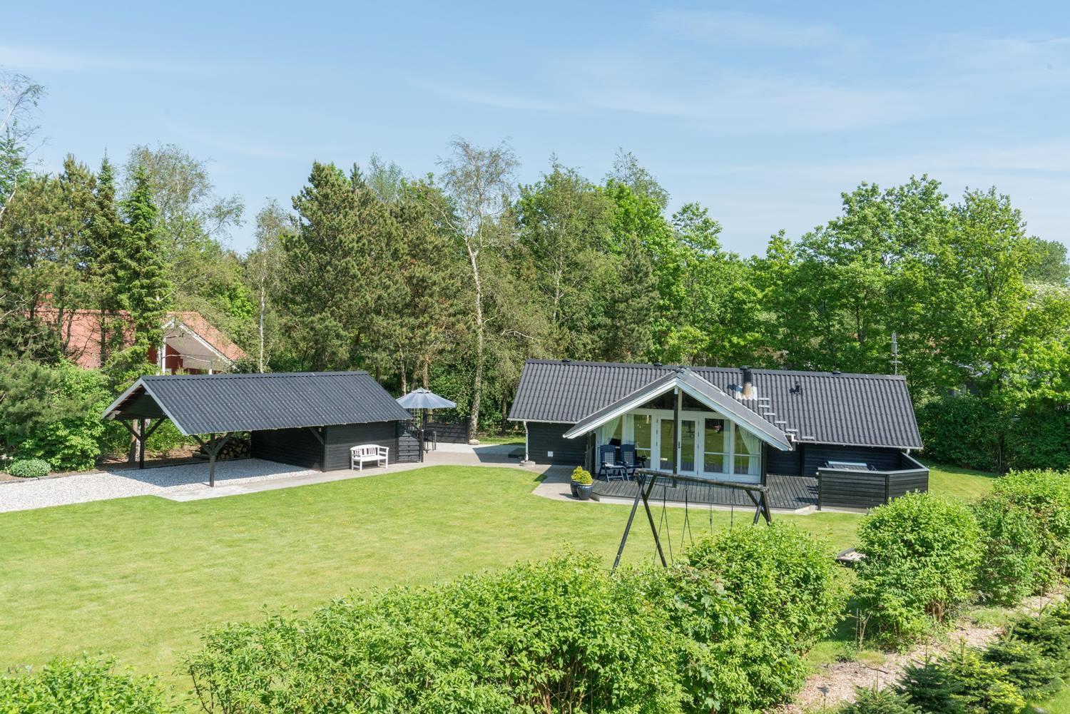 På den store grund er der også carport, så bilen kan stå i skyggen. De udendørs forhold med flere terrasser og overdækning er med til at skabe et godt grundlag for en dejlig ferie på Egelunden 16 i Jegum Ferieland. Området byder desuden på mange gode naturoplevelser og flere rigtig gode cykelstier.