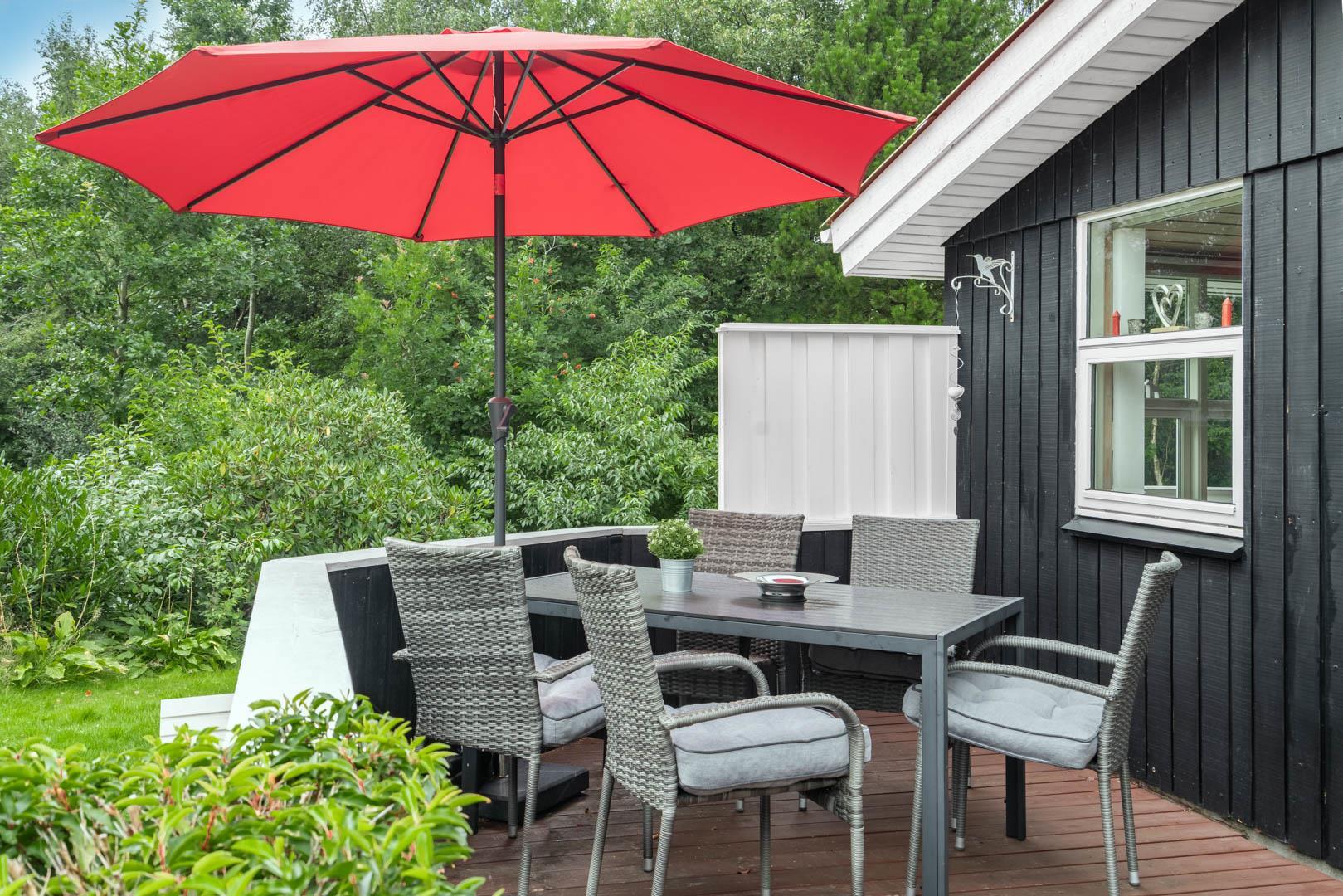 Terrassen er godt beskyttet mod vinden og indbyder til hyggelige grillaftener og fælles måltider i det fri. Haven omkring huset giver plads til leg, afslapning eller blot en stille stund med en god bog.