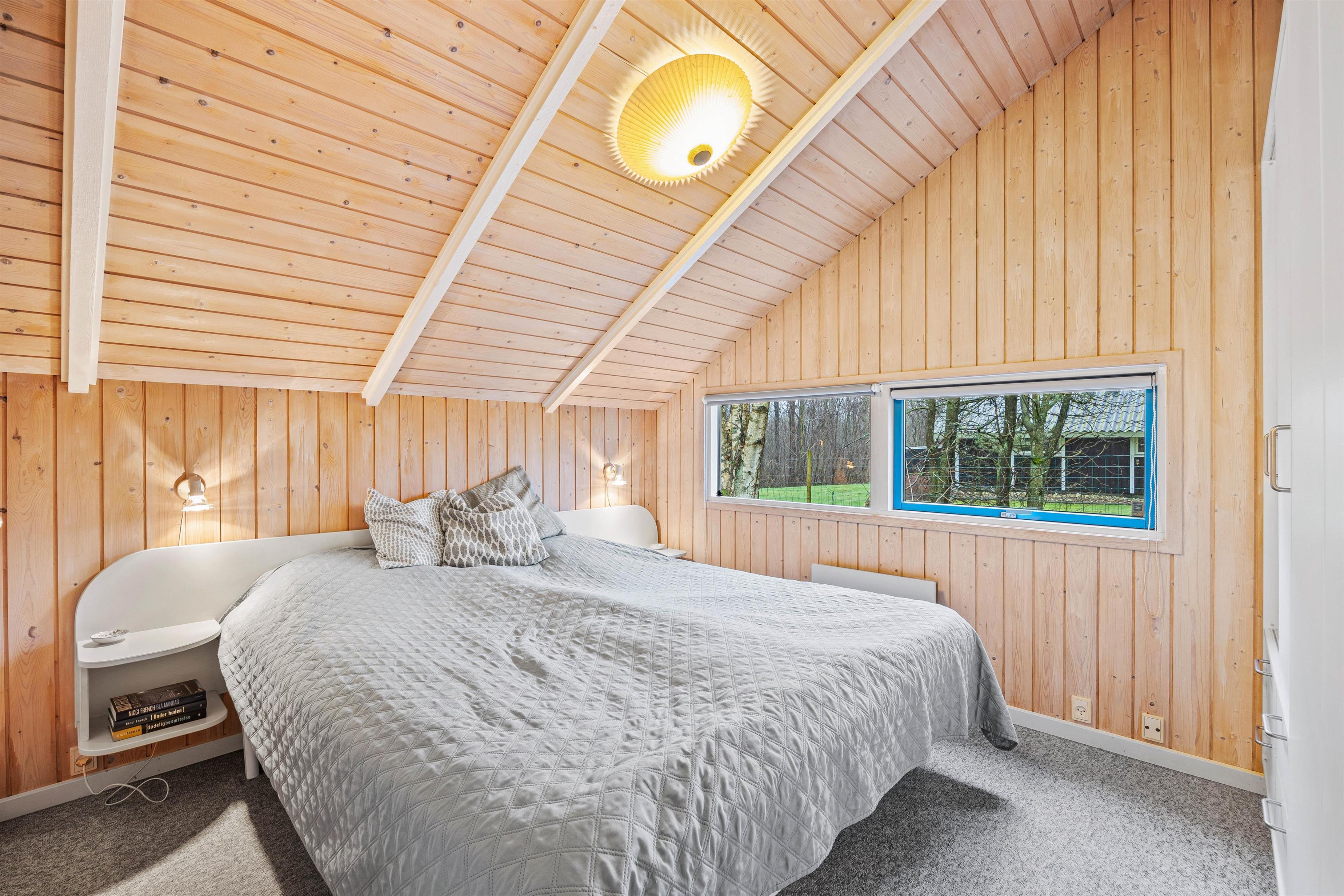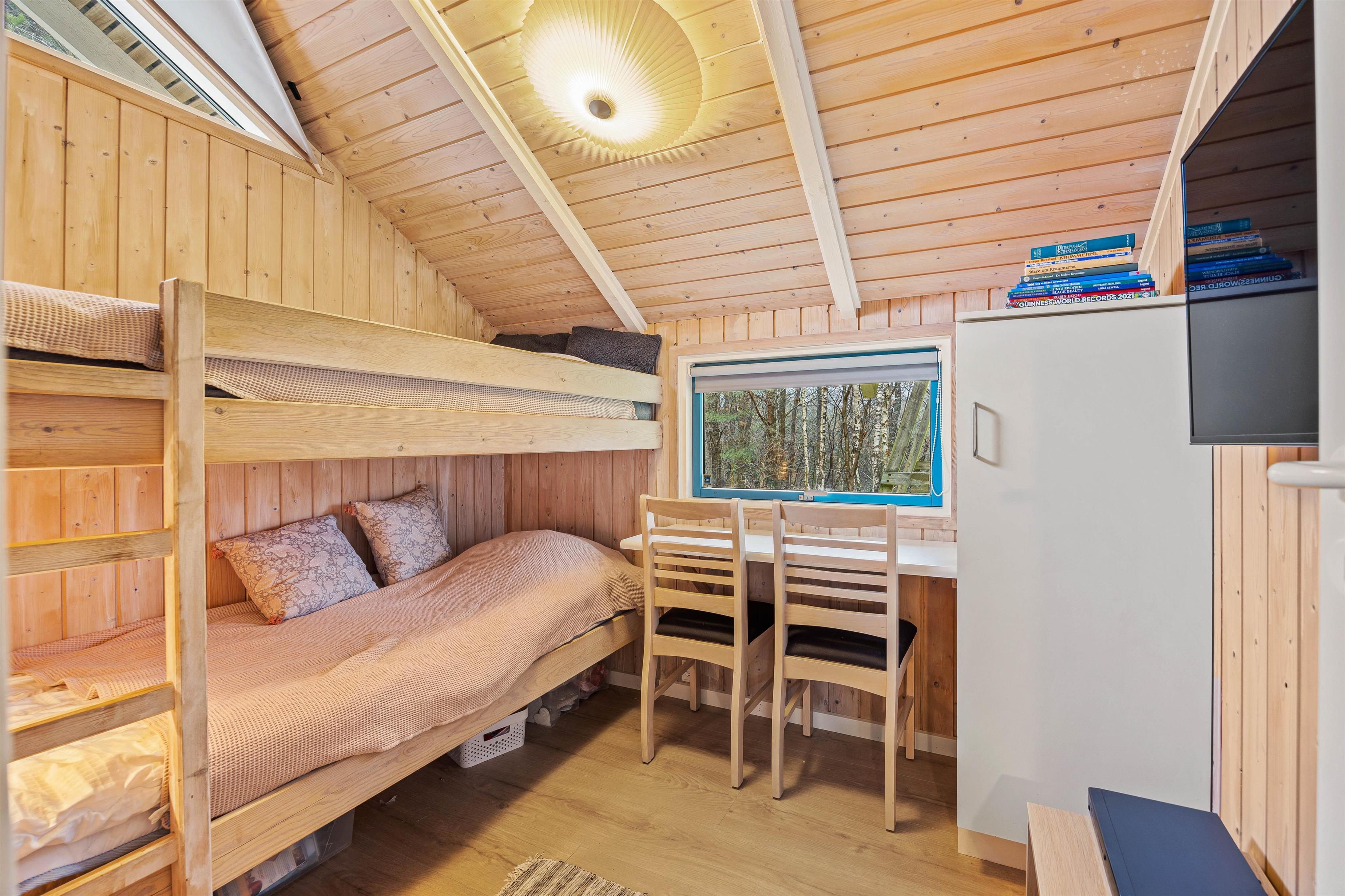 Sommerhuset tilbyder 3 behagelige soveværelser; 2 af dem er indrettet med dobbeltsenge, mens det sidste har en køjeseng, hvilket gør det ideelt for børnefamilier.