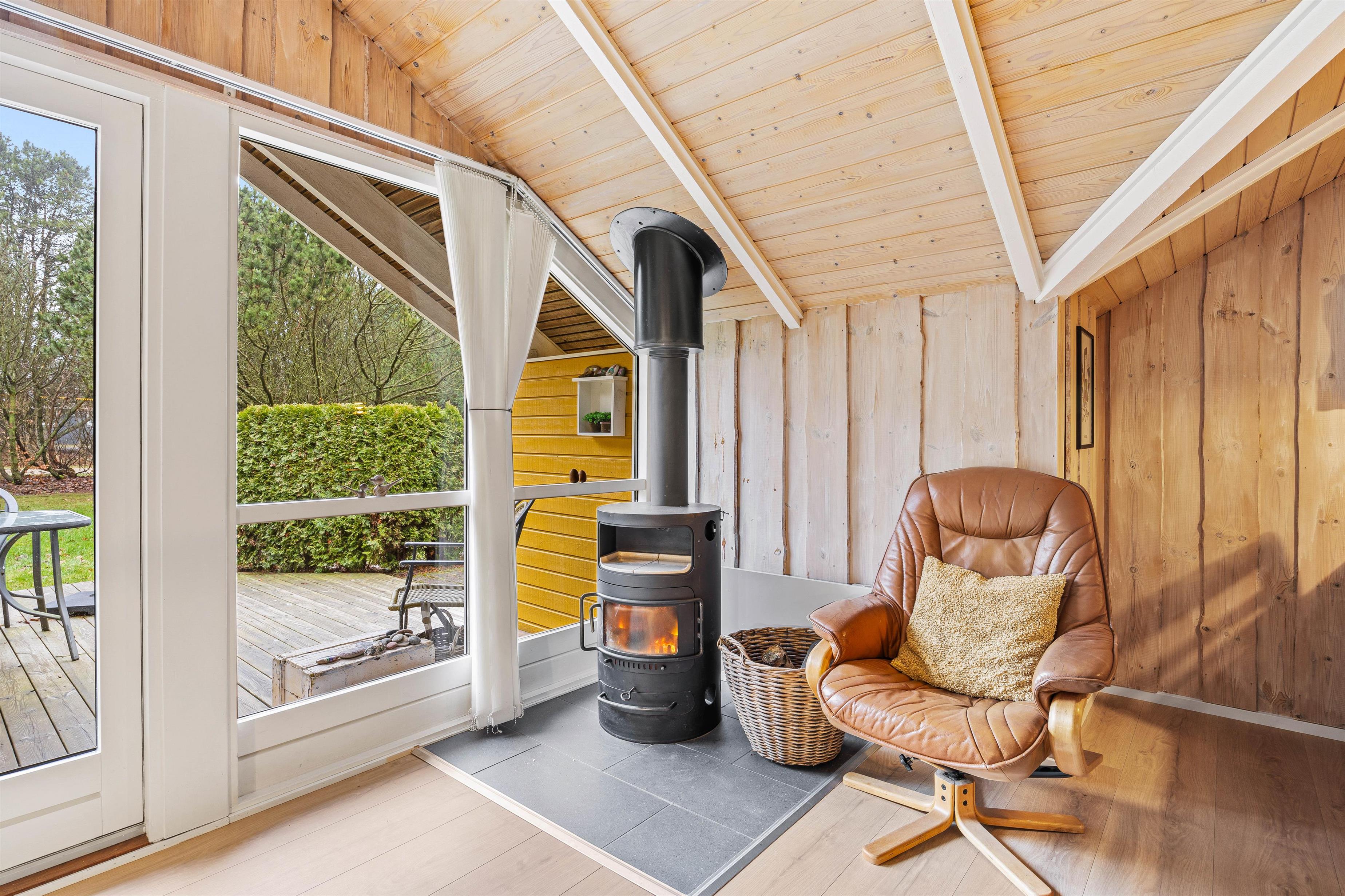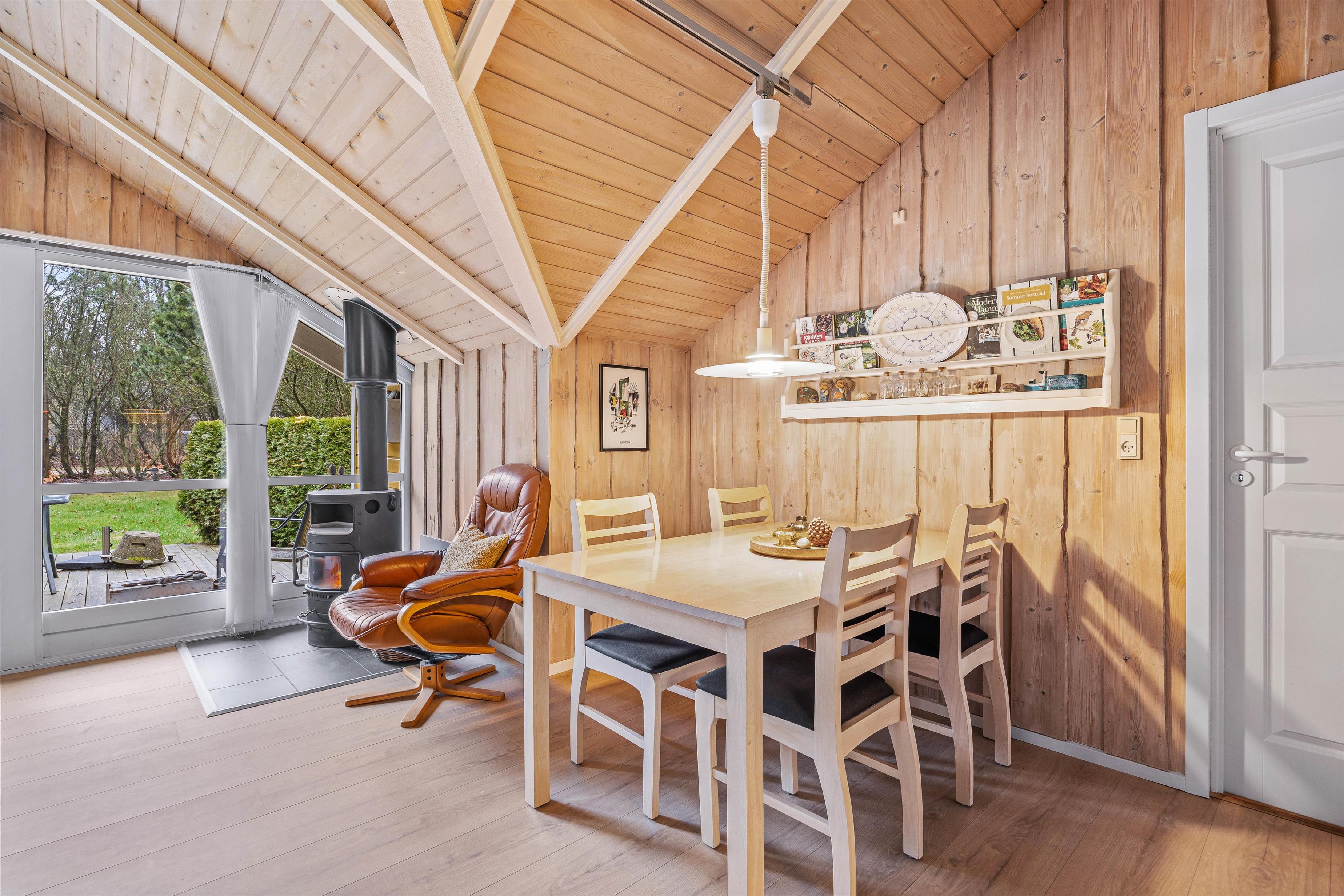 Stuen er udstyret med en hyggelig brændeovn, der bidrager til den klassiske sommerhuscharme og skaber en varm atmosfære til afslappede aftener. Med chromecast til rådighed kan I også nyde jeres yndlingsunderholdning.