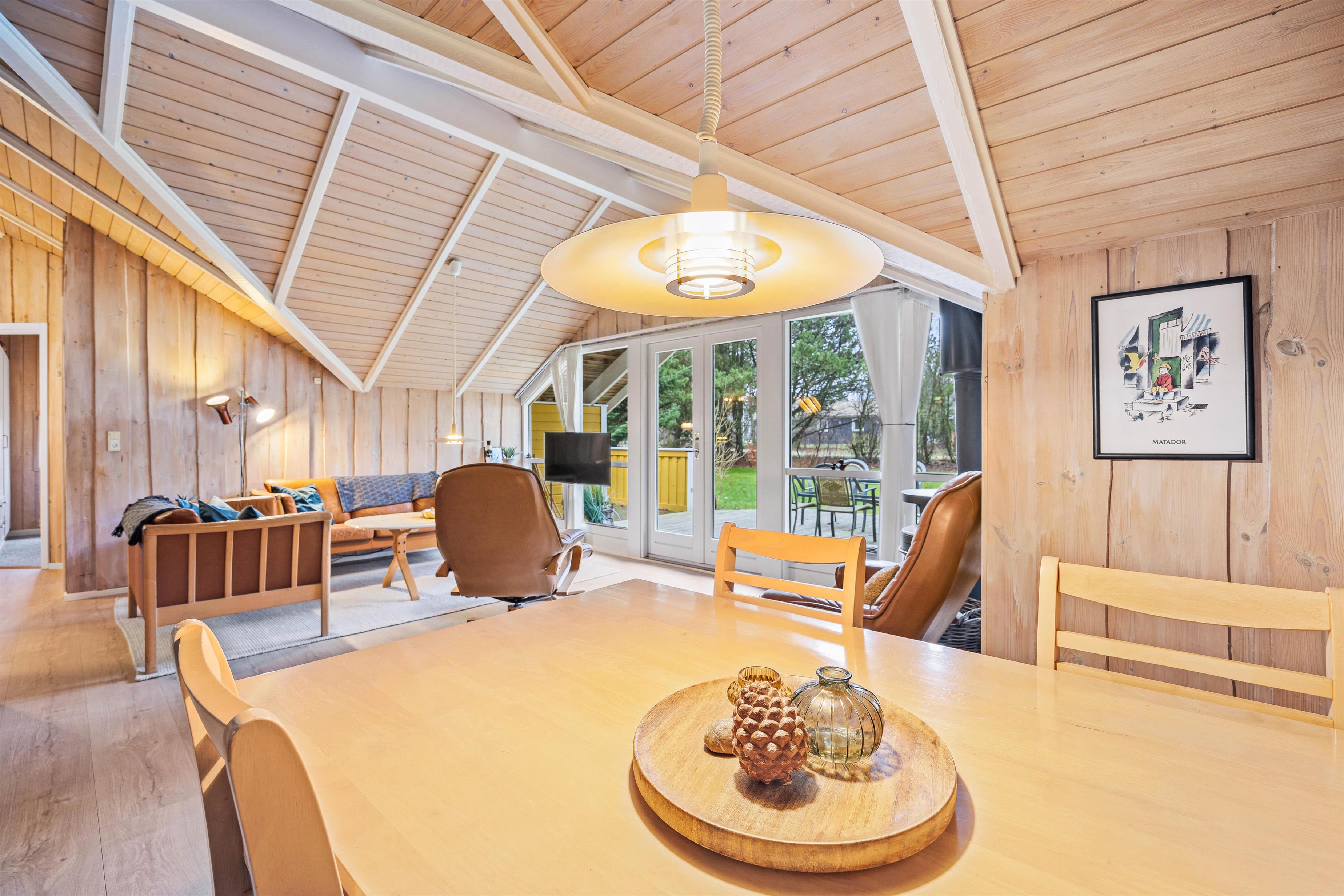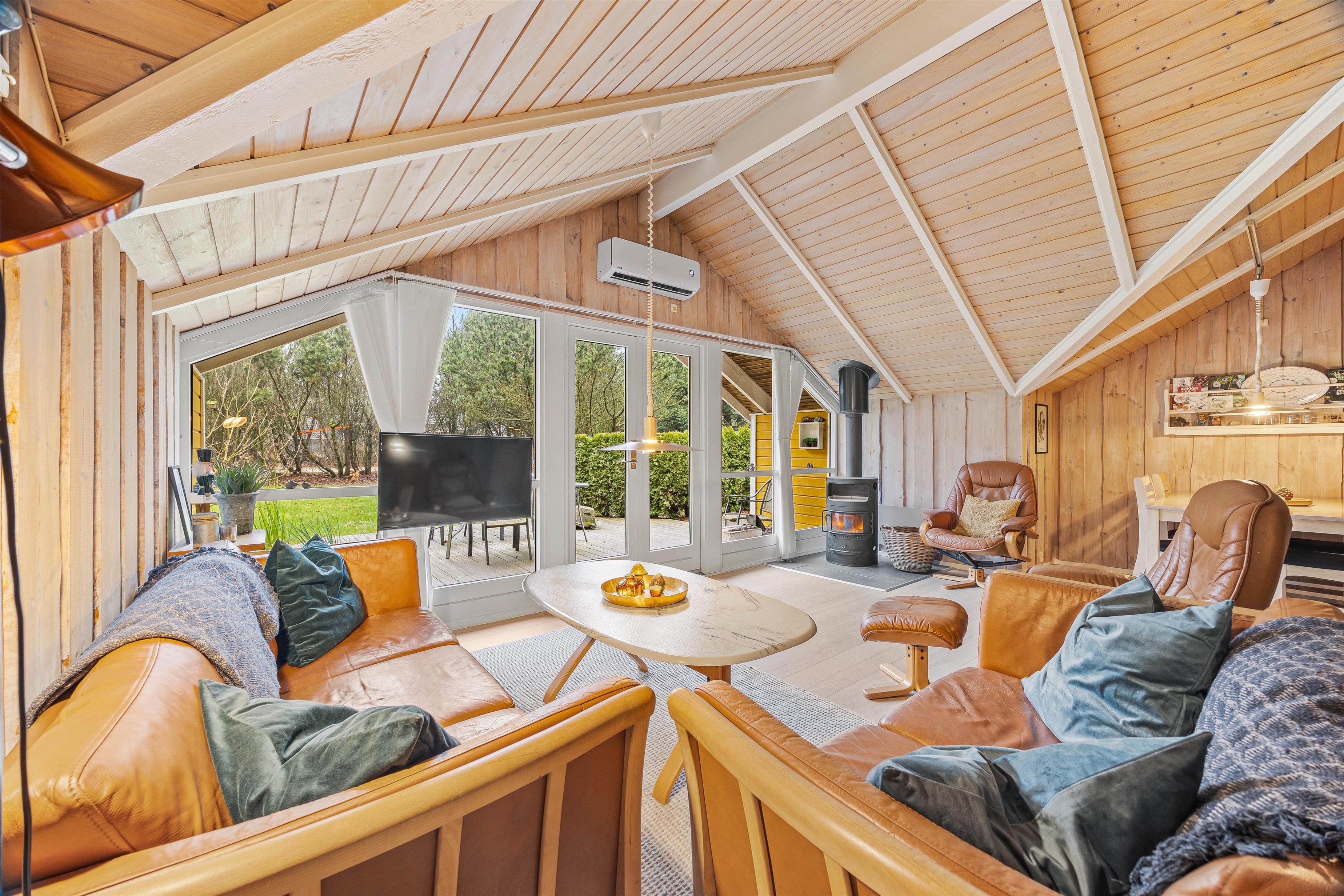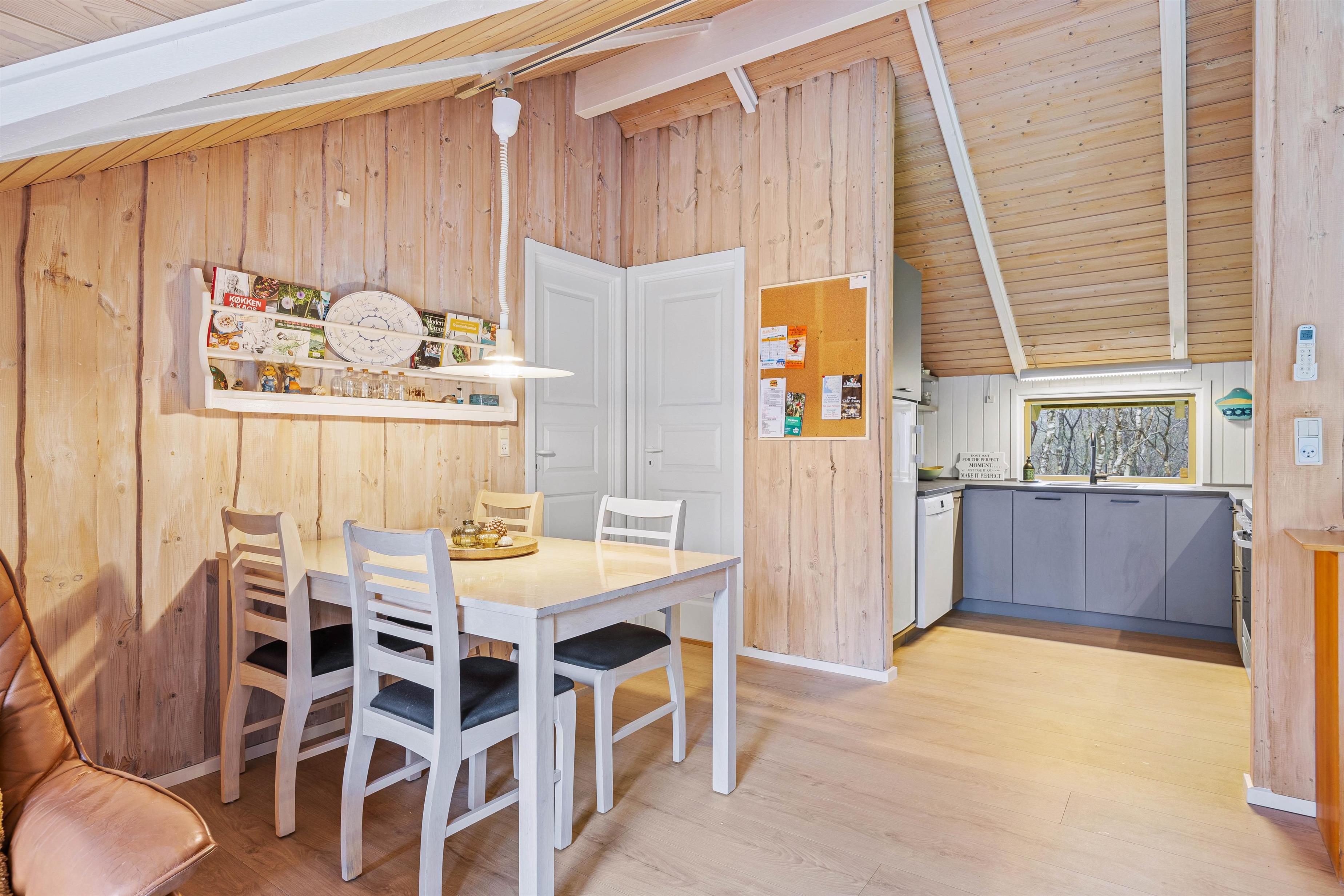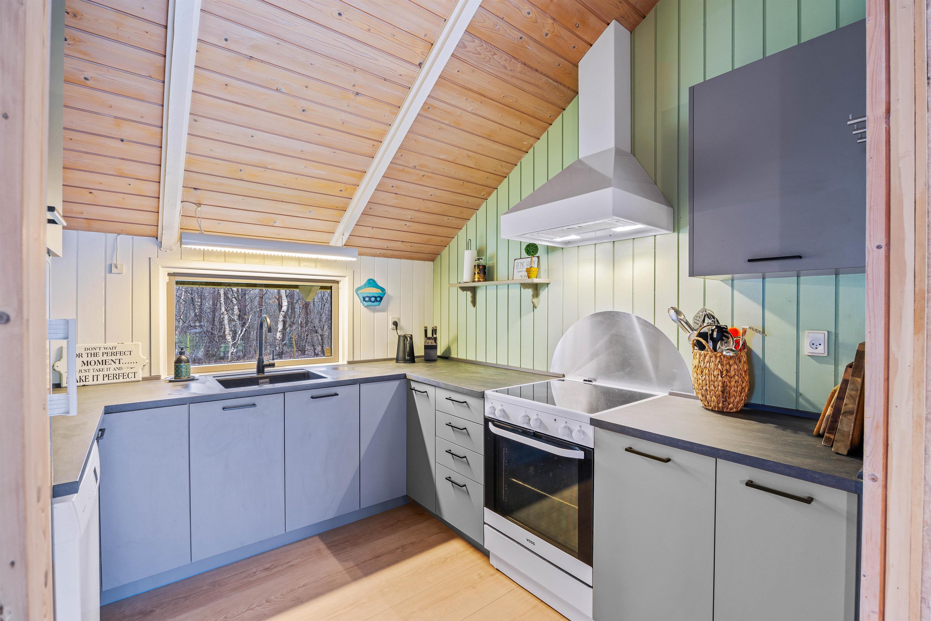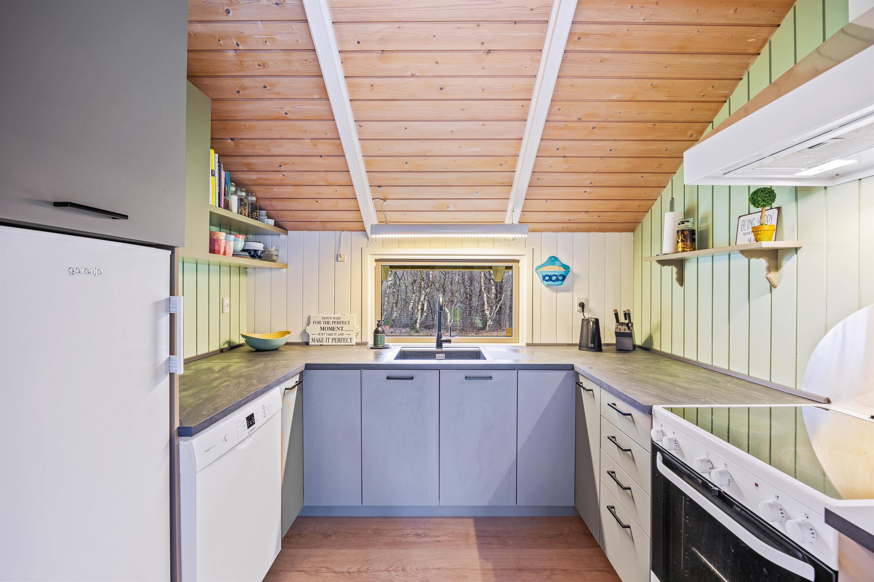Indenfor i sommerhuset byder køkkenet på en praktisk opvaskemaskine, der gør det nemt og hurtigt at klare oprydningen, så I kan komme tilbage til dagens eventyr langs Vestkysten. Det dejlige køkkenalrum er indrettet til at lade samtalen flyde frit fra madlavningen i køkkenet til hyggen i de bløde sofamøbler.
