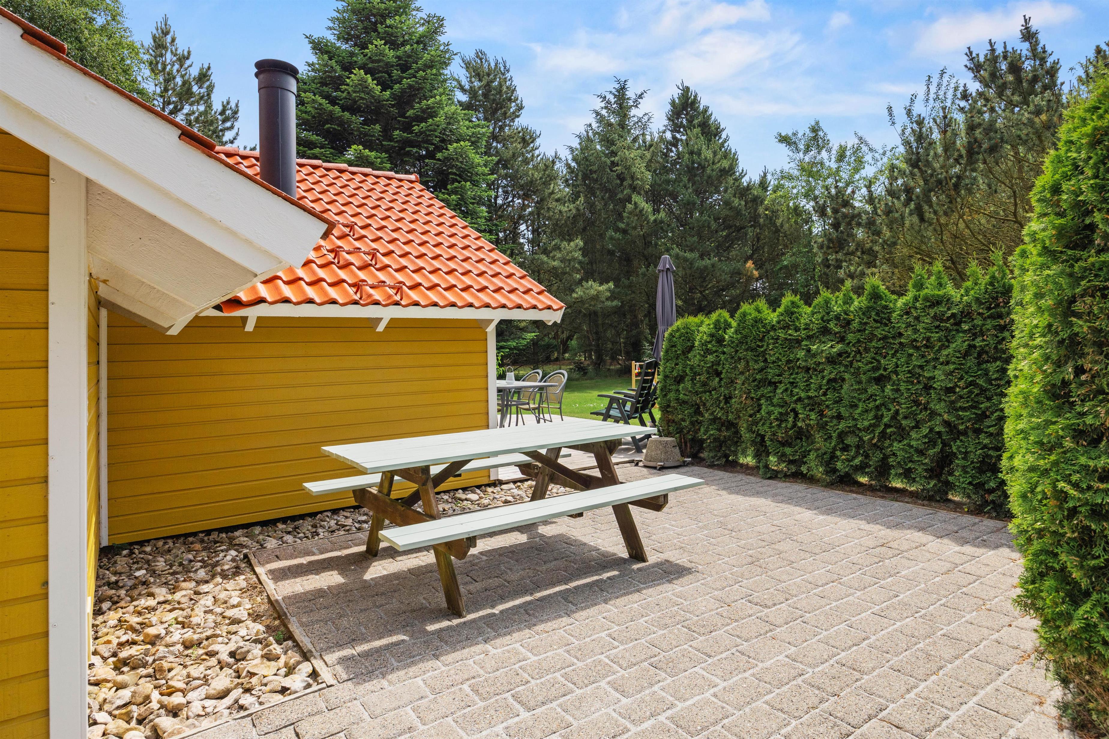 Terrassen er afskærmet, så I kan nyde privatlivet fuldt ud og slappe af med en bog på solvognene eller finde skygge under parasollen.