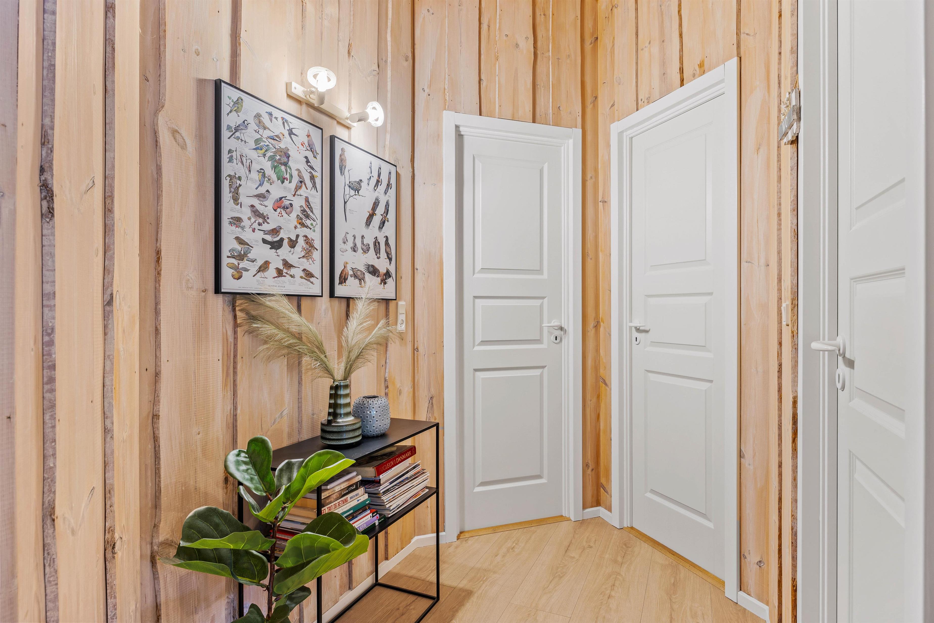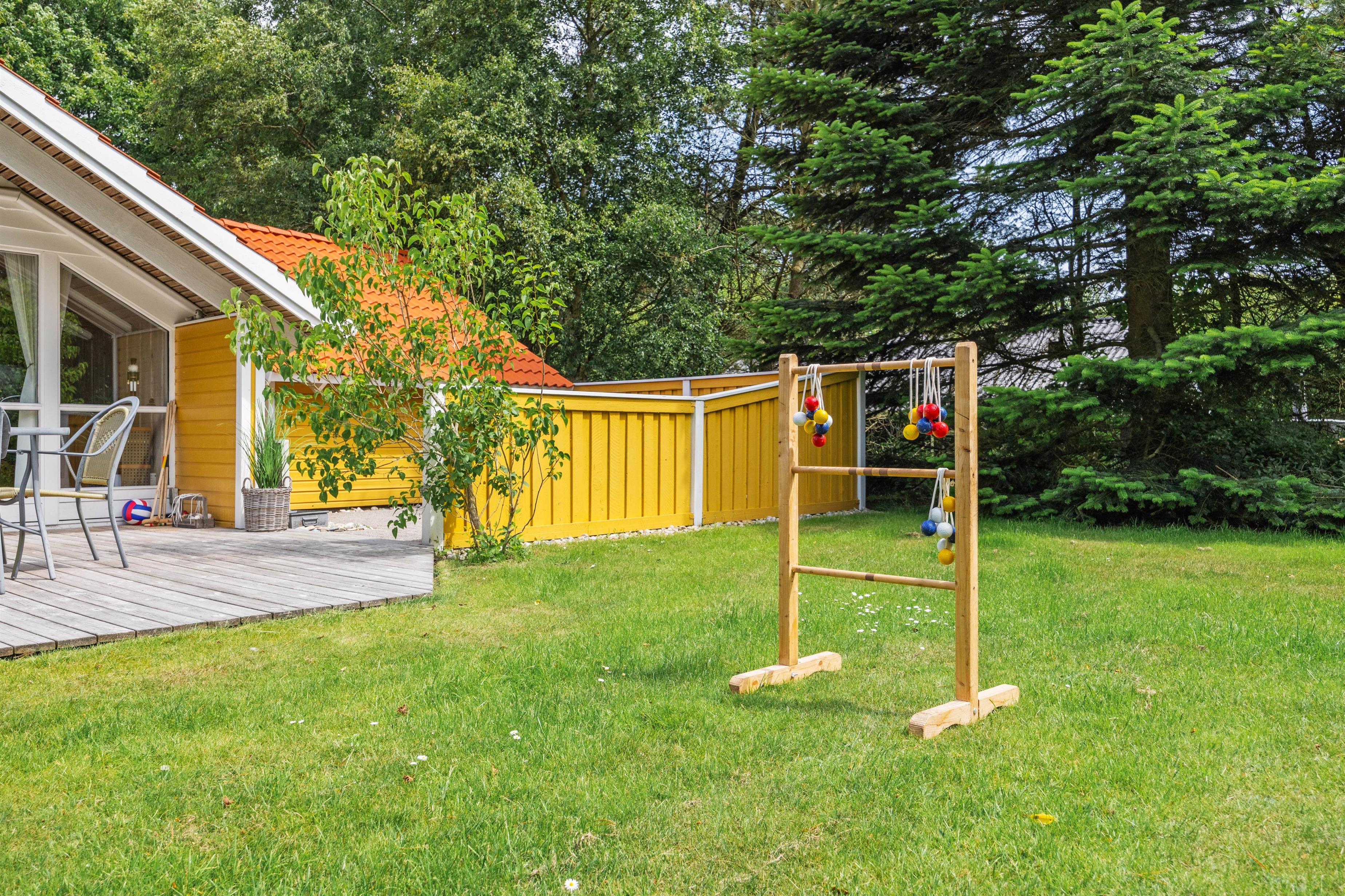 Den omkransende indhegnede plæne gør det muligt for både børn og hund at lege frit og sikkert i den friske luft. Børnene vil elske at tilbringe tid i gyngen eller bygge sandslotte i sandkassen, mens de nyder de mange muligheder for leg og sjov udenfor.