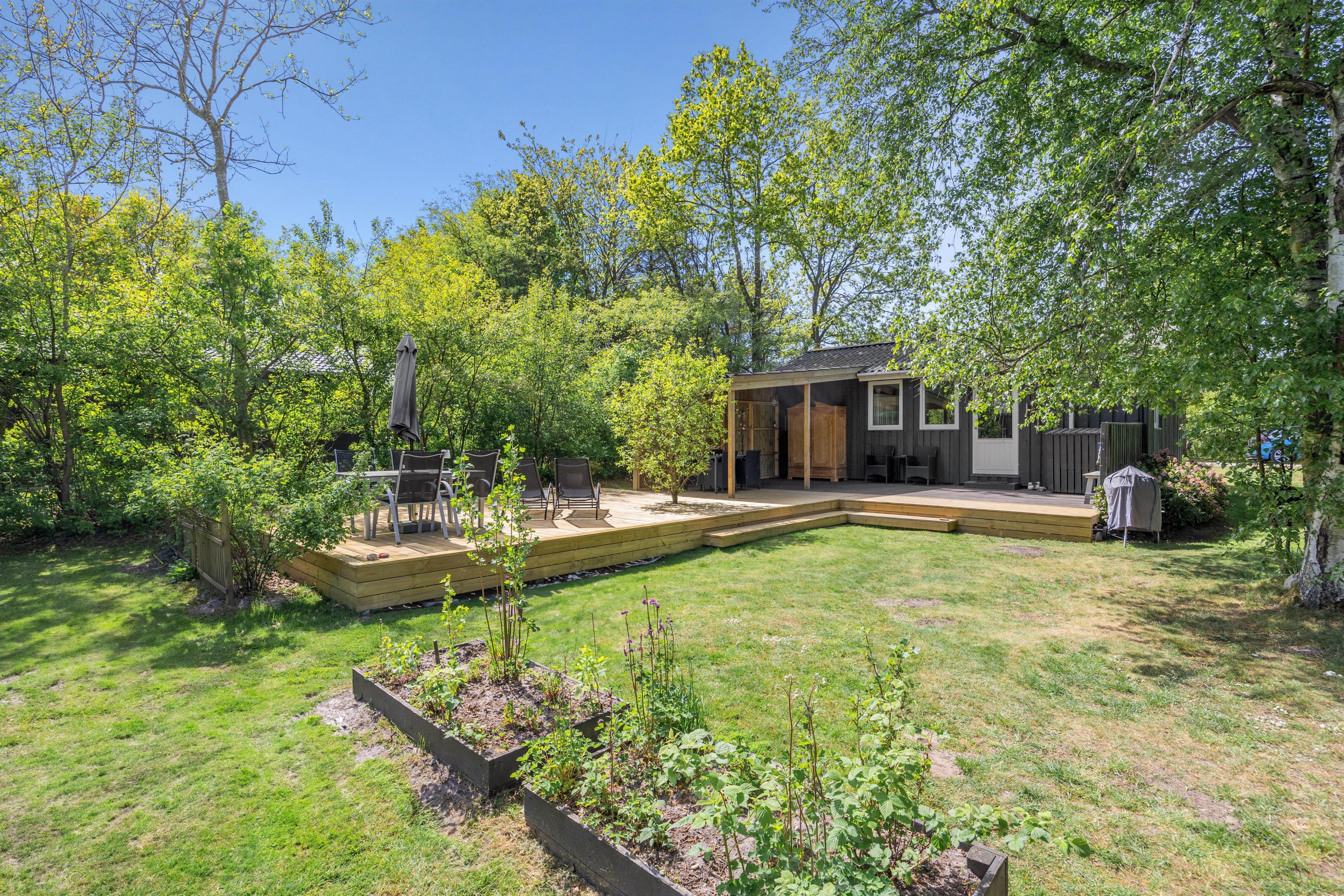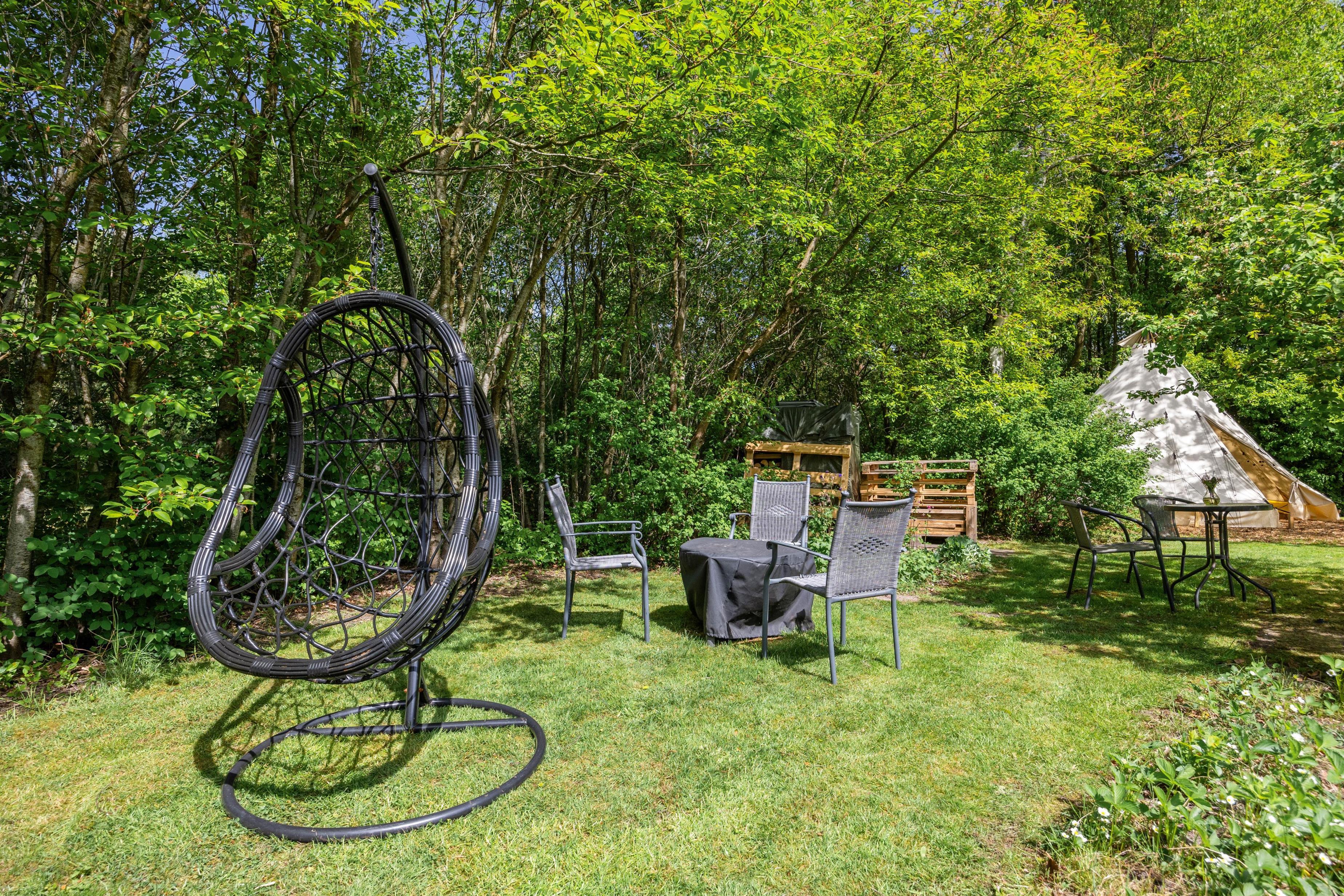 Her på plænen kan børnene brænde energi af eller ligge i græsset og nyde stilheden. Den store haveplads gør det muligt at arrangere spontane fodboldkampe, eller I kan flyde stille i en hængekøje og bare nyde den friske luft. Haven er jo er lige uden for døren, og I har mulighed for at lade naturen være en del af jeres ferieliv.