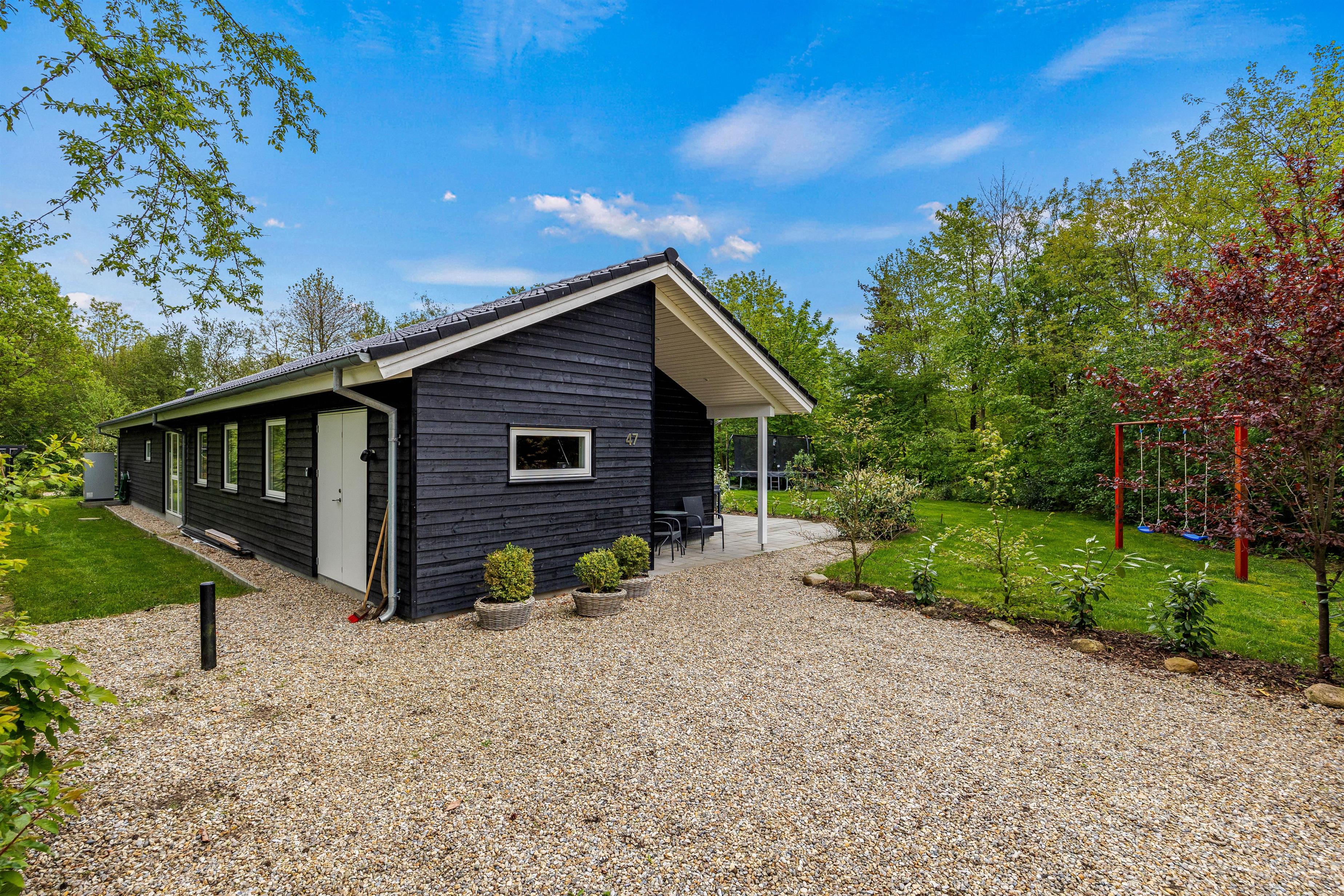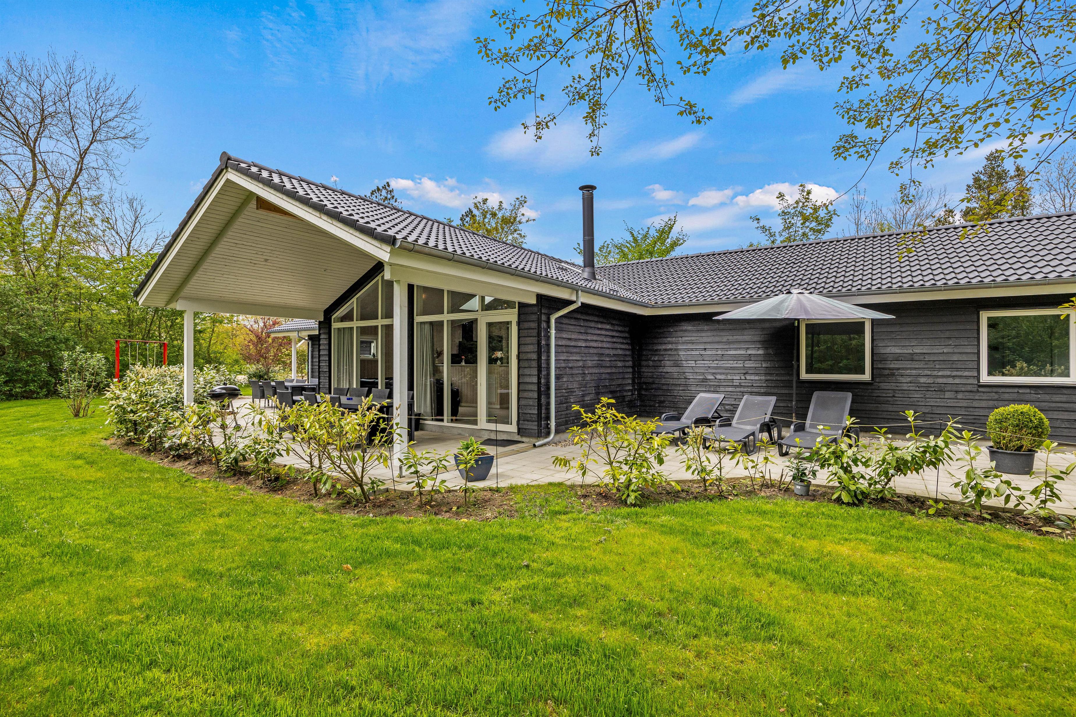 Udenfor venter jer en dejlig have, som er godt afskærmet bag fyrretræerne. Børnene vil elske udendørsfaciliteterne som gynge, sandkasse og trampolin, der inviterer til leg og eventyr i sikre rammer. Her er god plads til leg på den grønne græsplæne, og på den overdækkede terrasse kan I holde de skønneste grillaftner. I haven er der rig mulighed for at nyde udelivet og slappe af i solen!