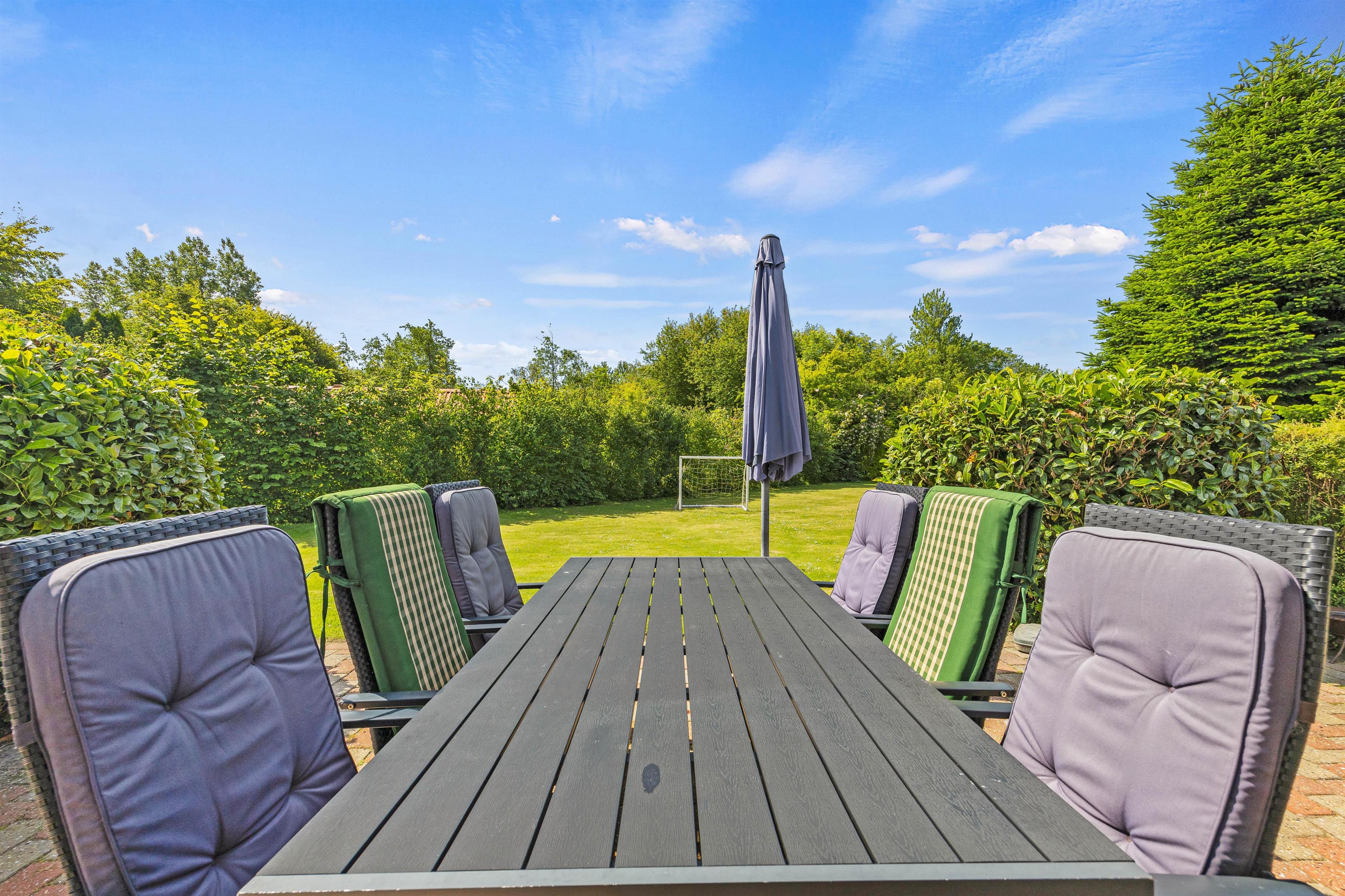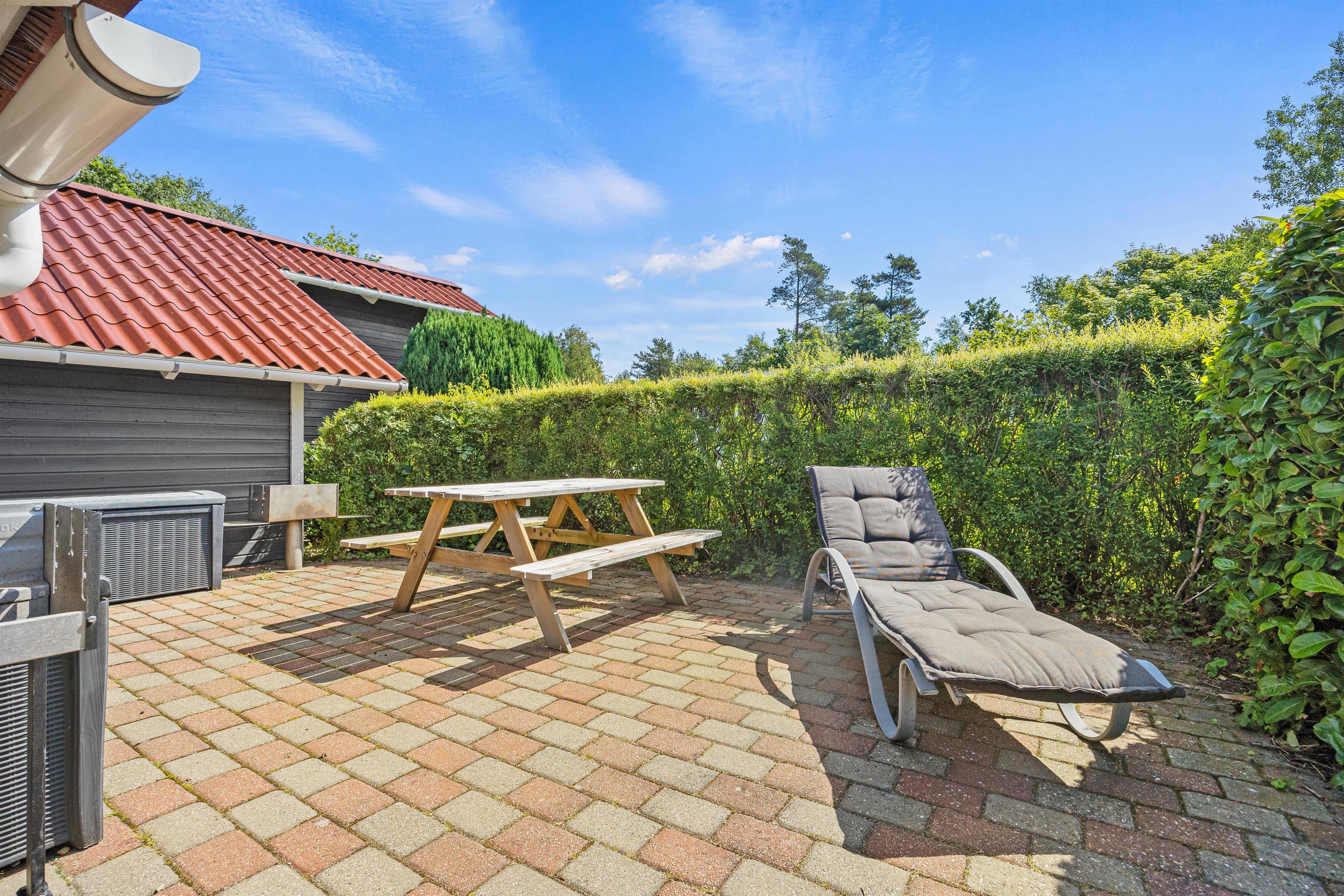 Til aften er det derfor oplagt med en grillaften for hele familien, mens I nyder solens sidste stråler, der kaster et varmt skær over den smukke have. På den veludstyrede terrasse kan I samles til hyggelige stunder, imens I planlægger morgendagens ferieaktiviteter og udflugter. Terrassen byder på masser af muligheder for både afslapning med en god bog i liggestolen
