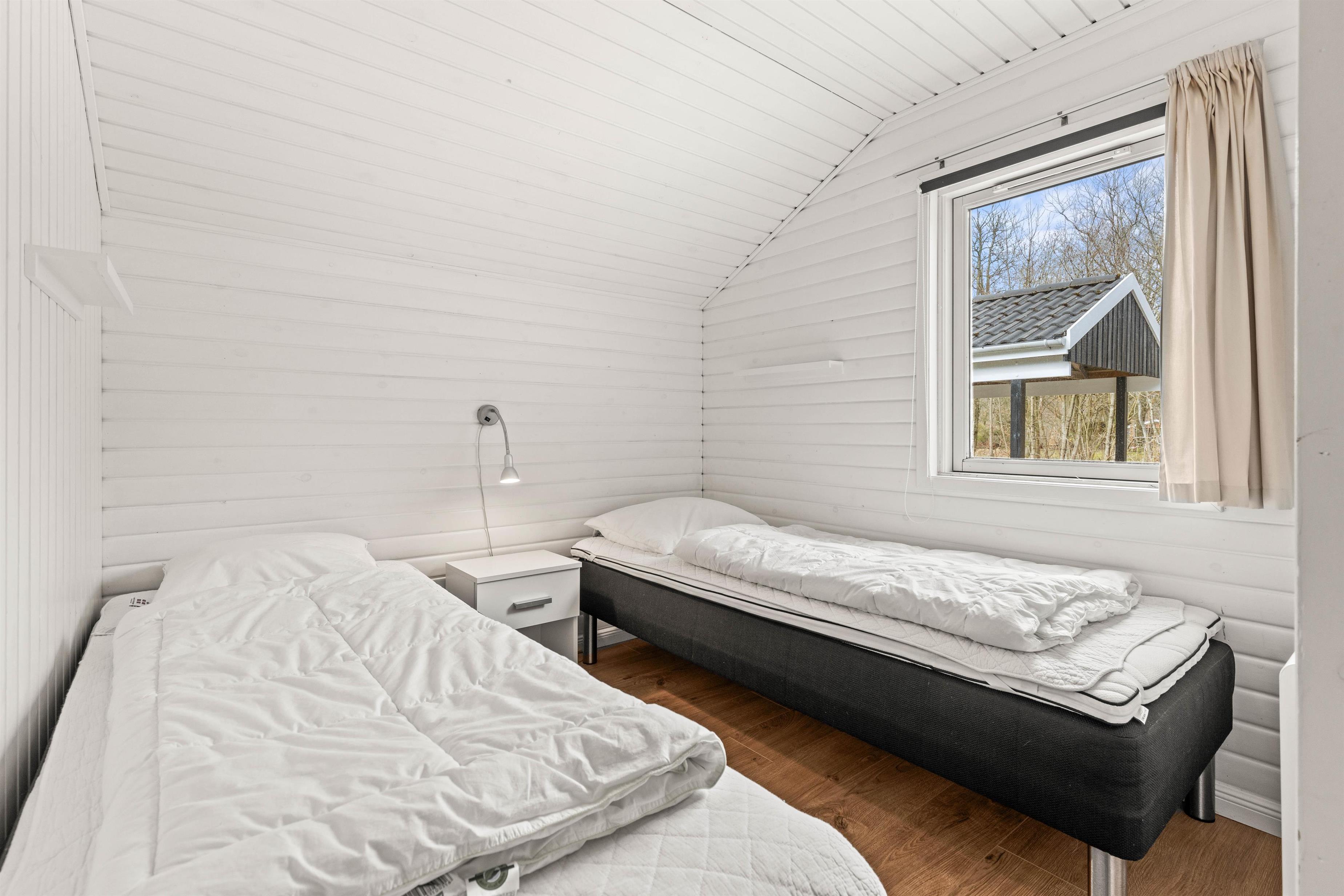 De 2 indbydende soverum tilbyder i alt 4 bløde sovepladser. De lyse farver og enkle linjer i soveværelserne skaber en beroligende atmosfære, der inviterer til afslapning.