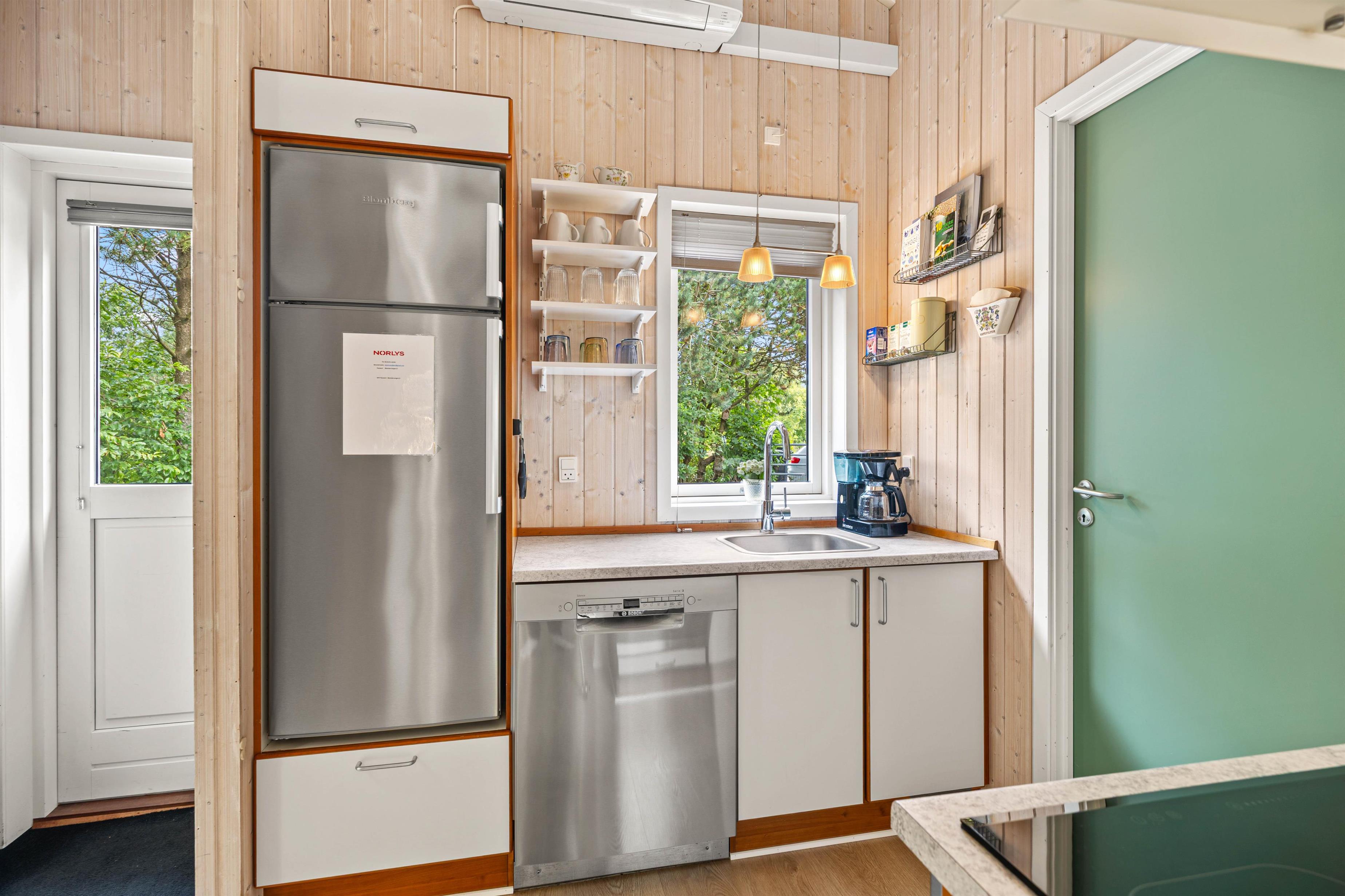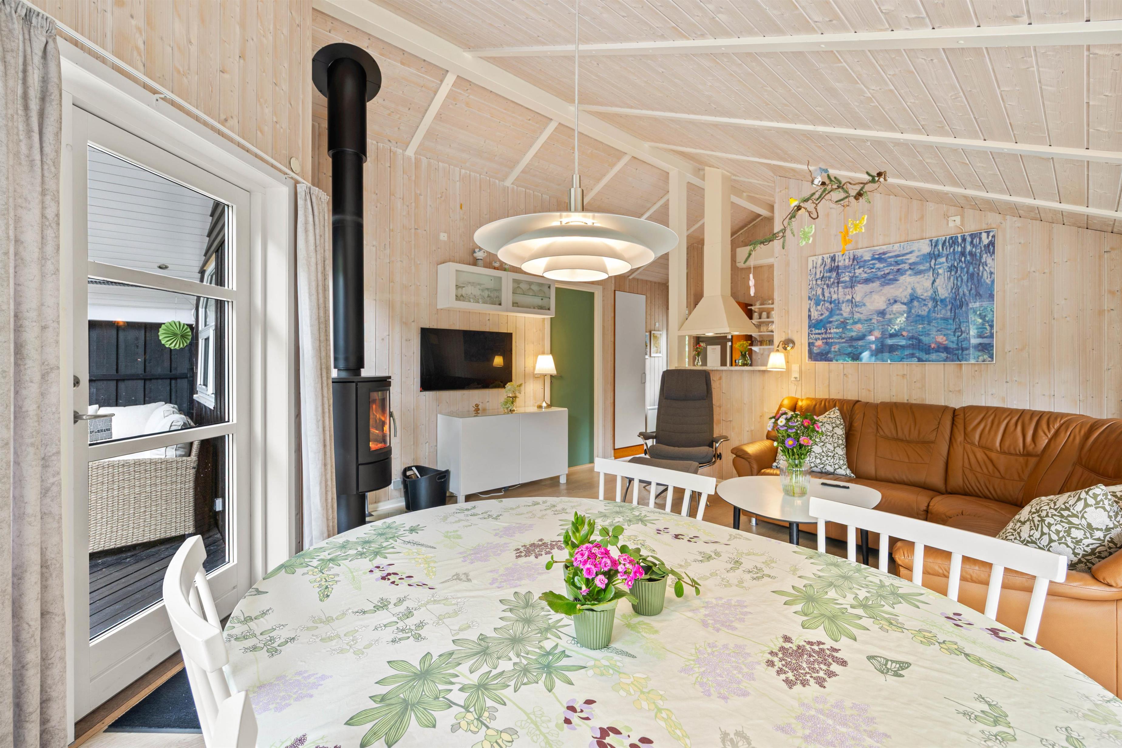 Opvasken klares nemt af opvaskemaskinen, mens tøjvasken hurtigt er overstået med feriehusets vaskemaskine og tørretumbler. Varmepumpen sørger for energivenlig opvarmning og godt indeklima, men på en kølig aften er der nu ikke noget bedre end at tænde op i brændeovnen og mærke varmen fra de knitrende flammer brede sig i stuen.