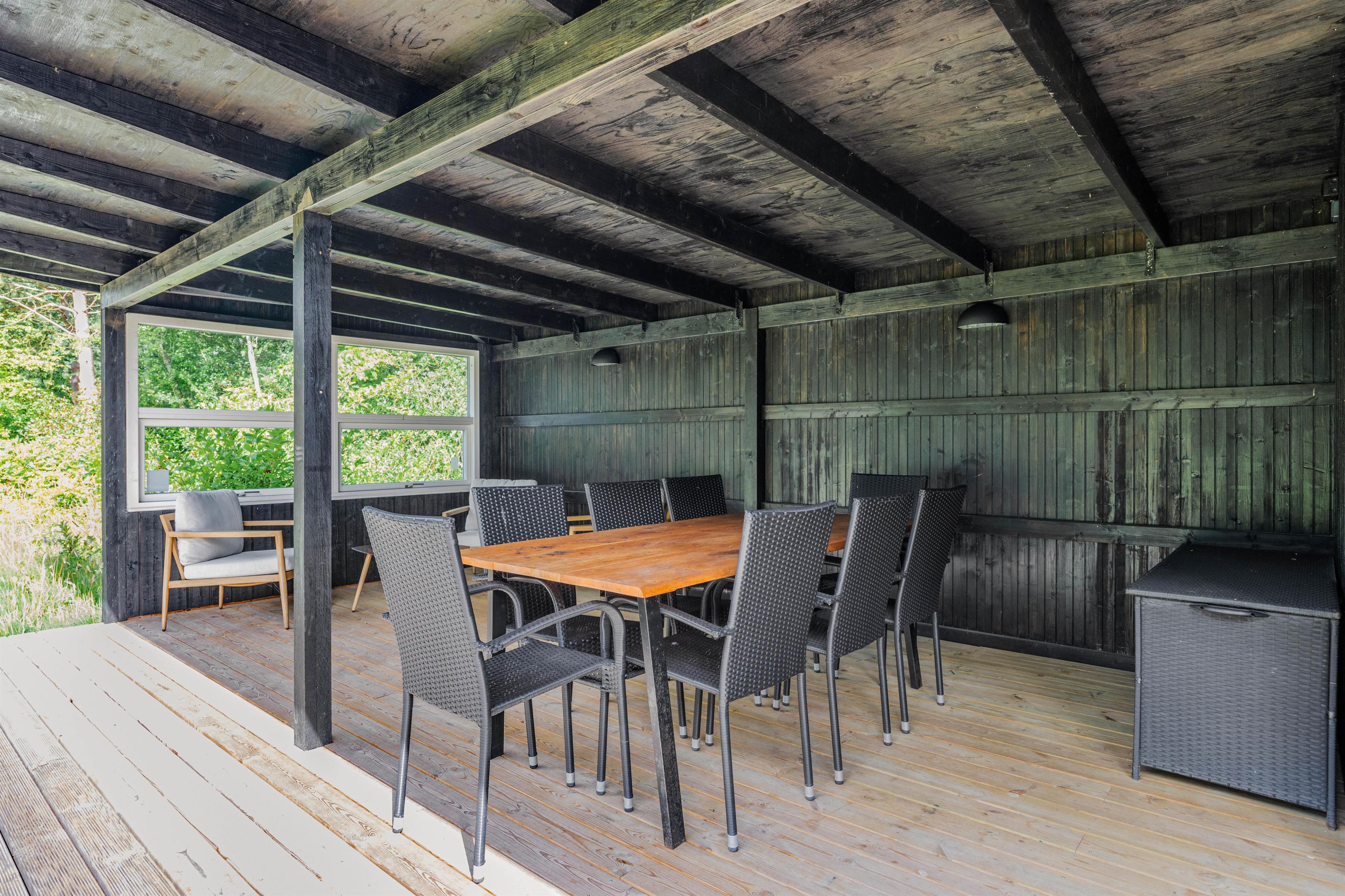 Sommerhuset er et aktivitetshus, fyldt med muligheder for underholdning for både børn og voksne. Prøv kræfter med et spil poolbillard, der inviterer til timevis af sjov og konkurrence. Udendørs er her en gynge, som sikkert vil være til glæde for børnene, mens trampolinen sørger for mange timers leg og latter. For de voksne kan den overdækkede terrasse med havemøbler danne ramme om hyggelige aftener. Det skønne vildmarksbad og den indbydende sauna tilbyder velværeoplevelser i særklasse, perfekte til afslapning og nærvær efter en dag fyldt med eventyr.