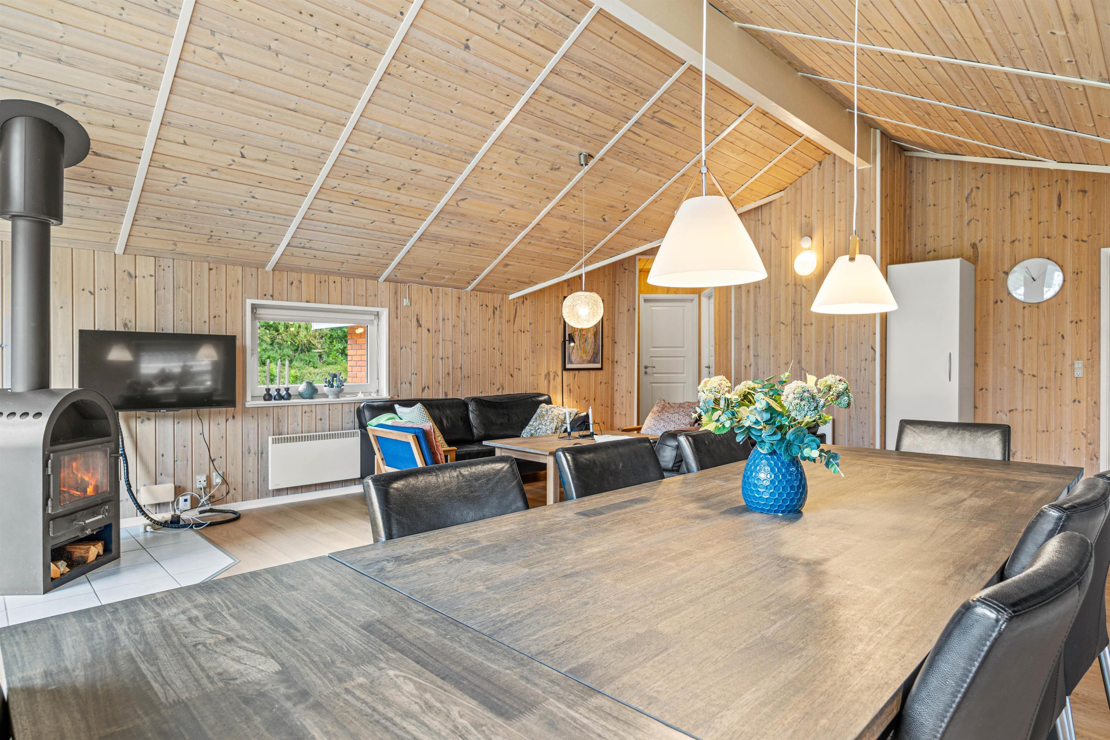 Når du går ind i sommerhuset, mødes du af en indbydende atmosfære, hvor komfort og funktionalitet går hånd i hånd. Den rummelige stue inviterer til afslapning med sin hyggelige brændeovn, der bliver et naturligt midtpunkt på køligere dage. Bevæger du dig videre, finder I det velindrettede køkken, hvor en opvaskemaskine sørger for, at oprydning efter måltiderne er hurtigt klaret.