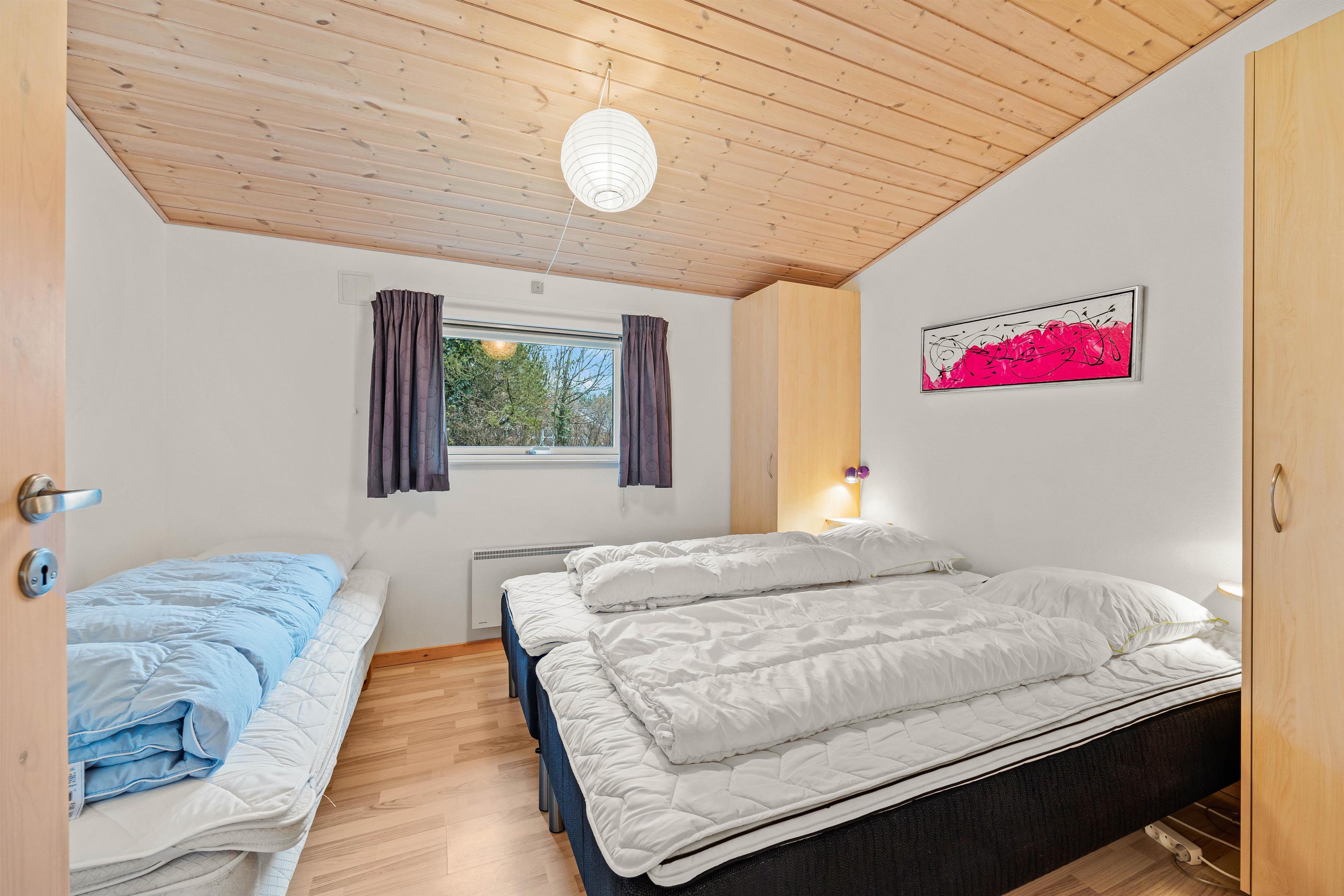 I dette hyggelige sommerhus, som gennemgik en stor renovering i 2020, står ferien på ren afslapning og nærvær med dem, du holder af. Op til 8 feriegæster kan nyde et velfortjent afbræk fra hverdagen i rolige omgivelser. Der er 3 soverum med dobbeltseng i dem alle, samt en alkove, som I kan tilgå fra stuen. Et af værelserne har også en ekstra enkeltseng. Mellem alle værelserne er der badeværelser med gulvvarme, hvoraf det ene er udstyret med både sauna og spabad, så I rigtig kan blive varmet igennem og komme ned i gear.