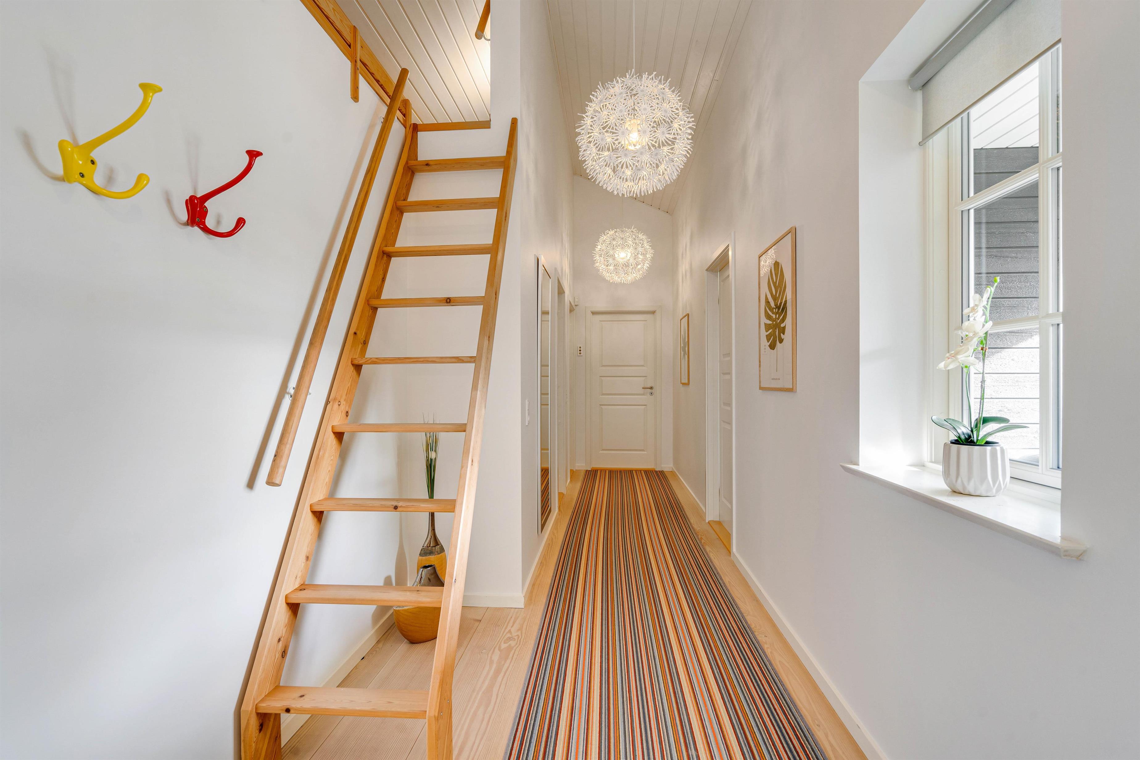 Overalt i sommerhuset er der et dejligt indeklima med gulvvarme, og varmen er energivenlig med brug af varmepumpe.