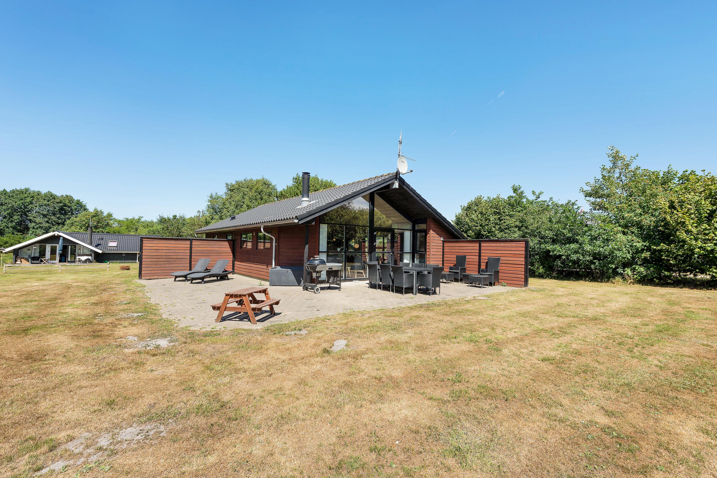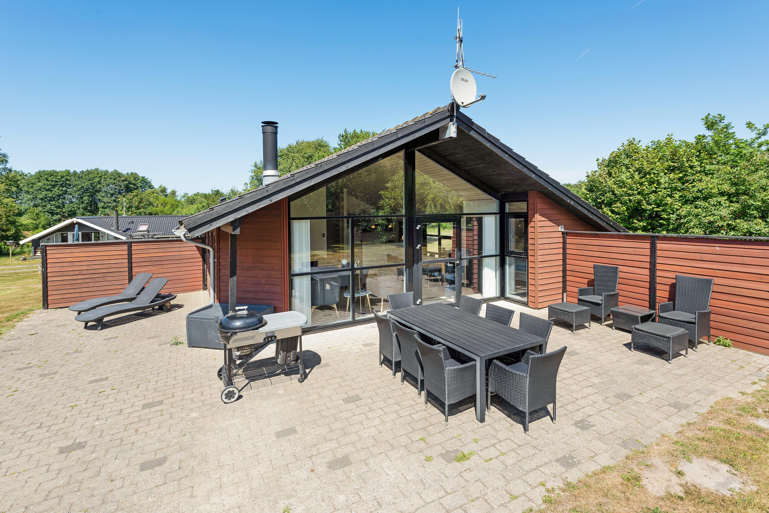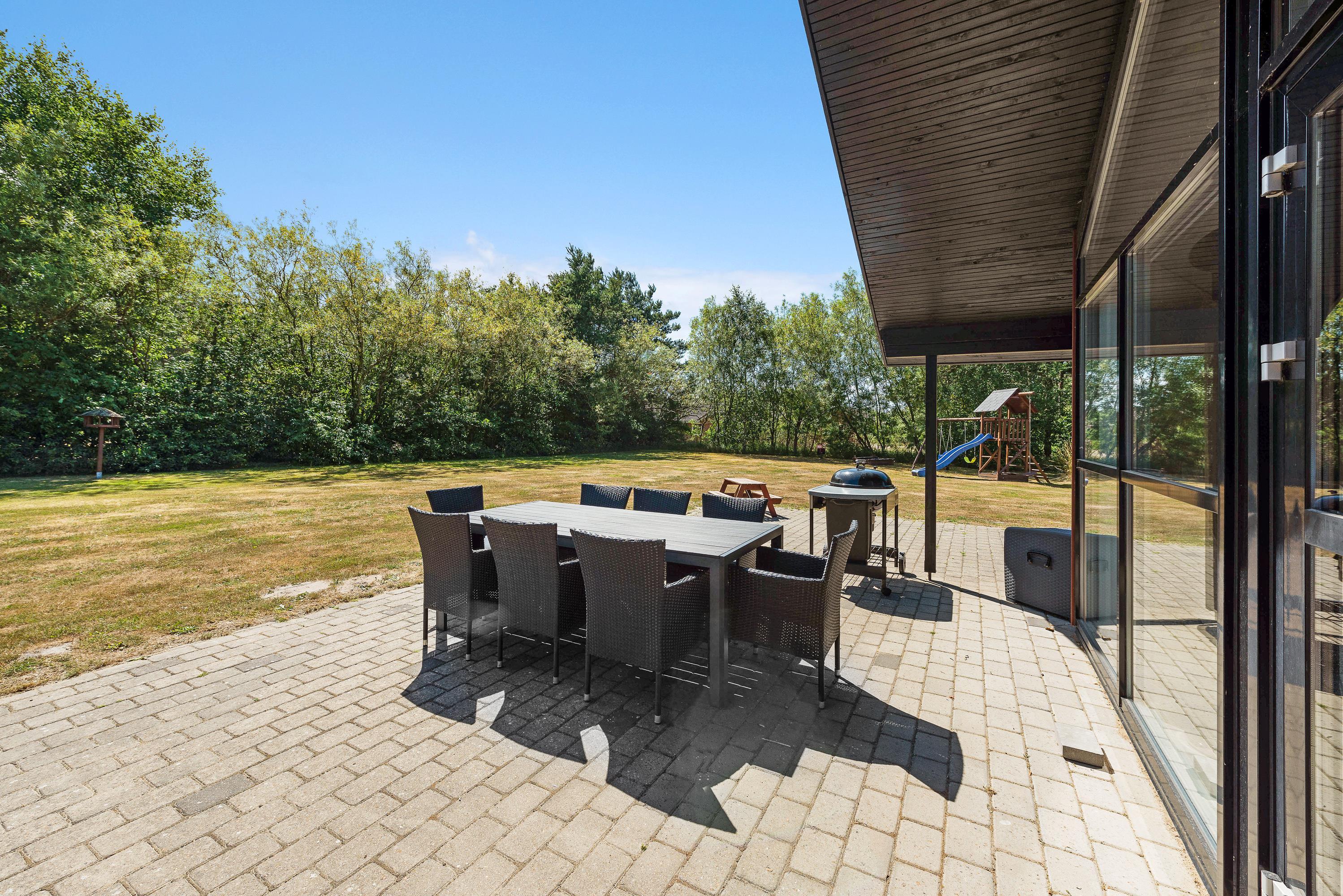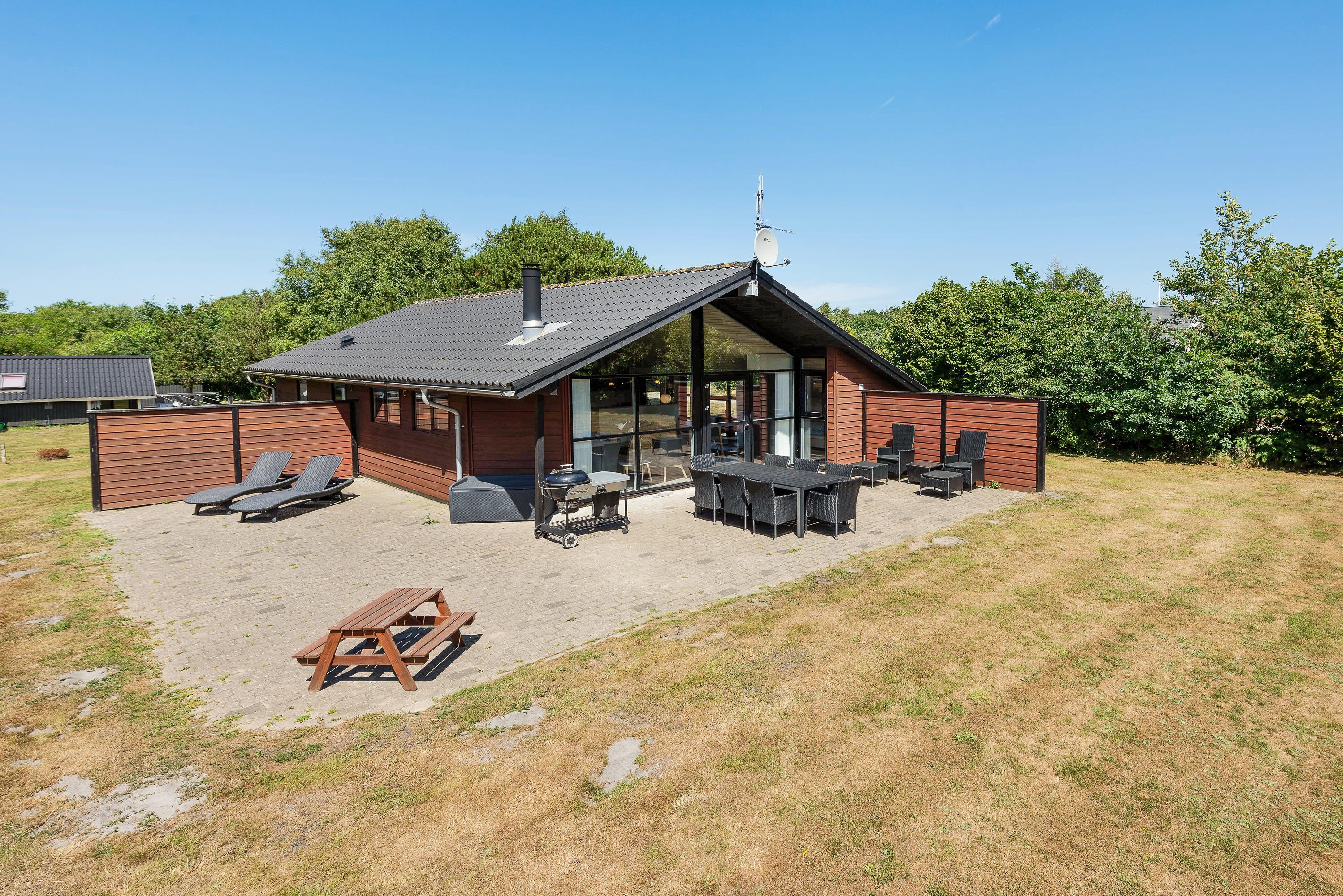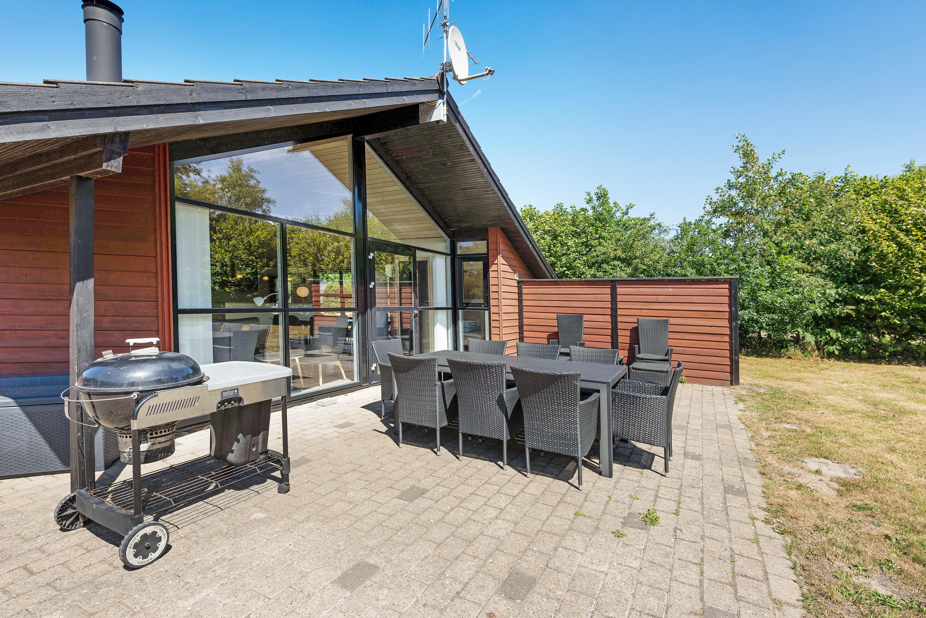 På den afskærmede terrasse kan I rigtig nyde de solrige dage. Der er altid god læ - og havemøbler nok til, at hele familien kan få en plads i solen. Til de lune aftener står grillen klar, så I kan tilberede dagens feriemåltid under åben himmel.