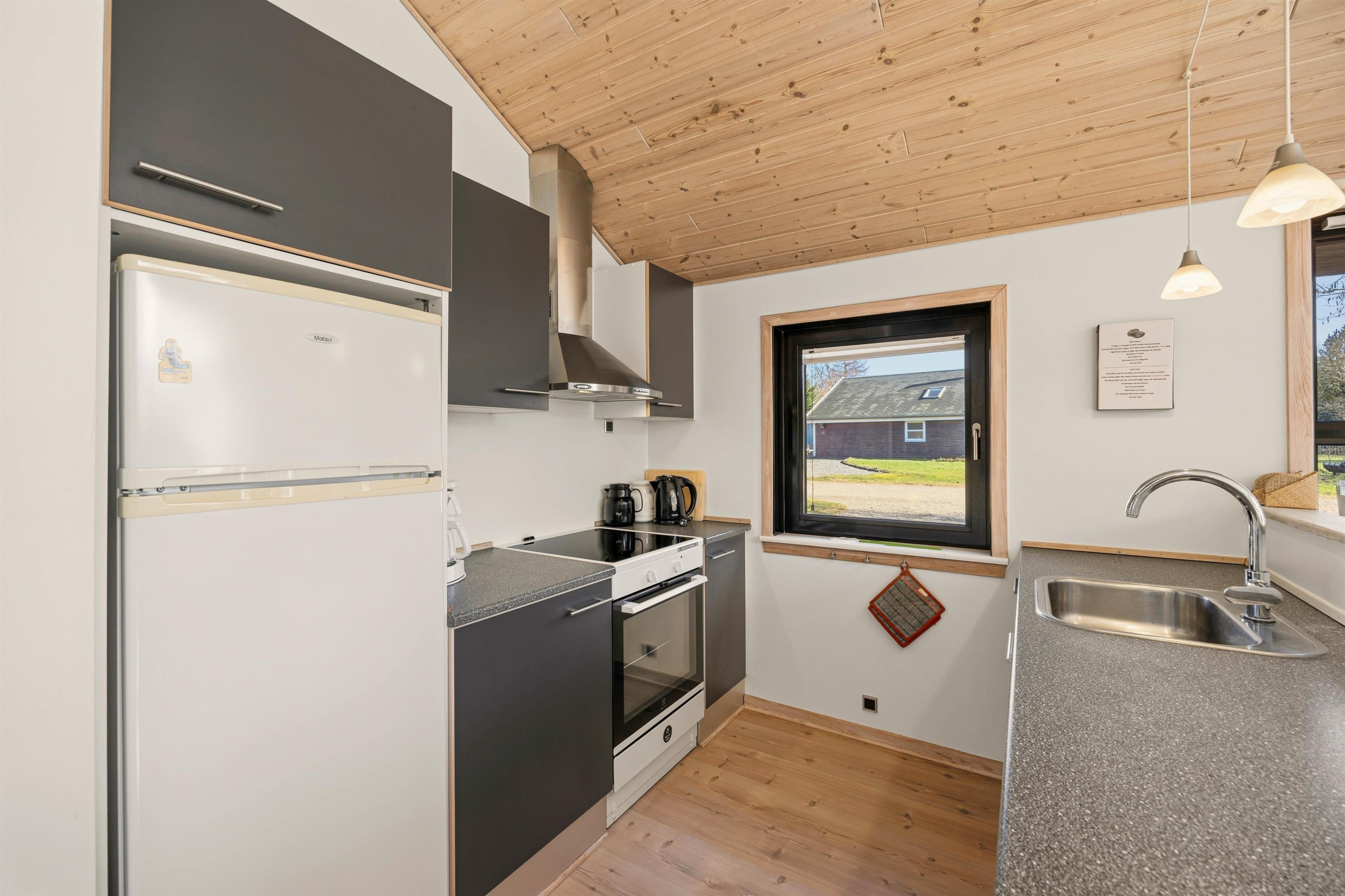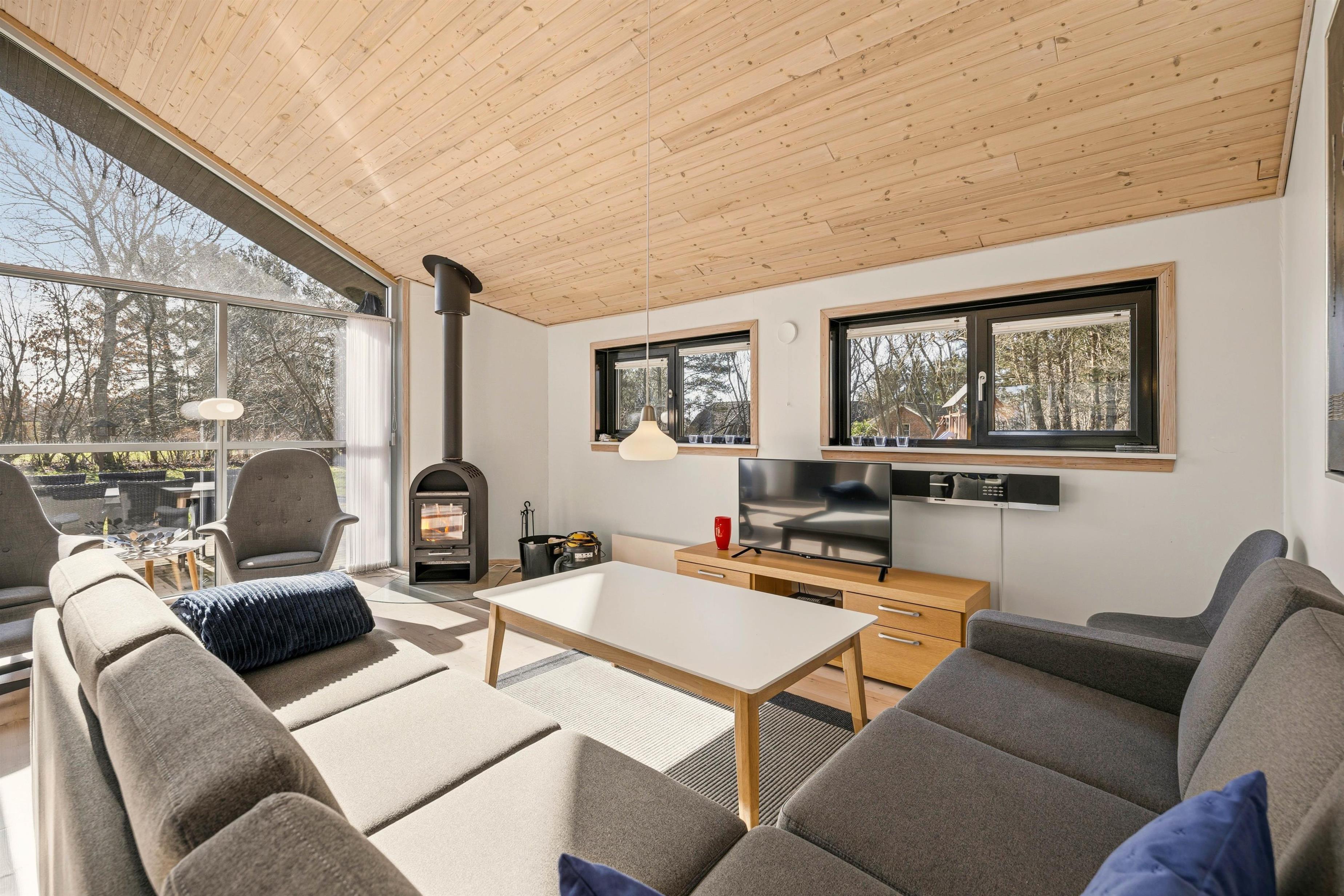 Her er der masser af mulighed for at slappe af og nyde familietiden sammen. I det store fællesrum med stue, køkken og spiseafdeling kan I samles til gode feriemiddage, kortspil og sofahygge foran den knitrende brændeovn.