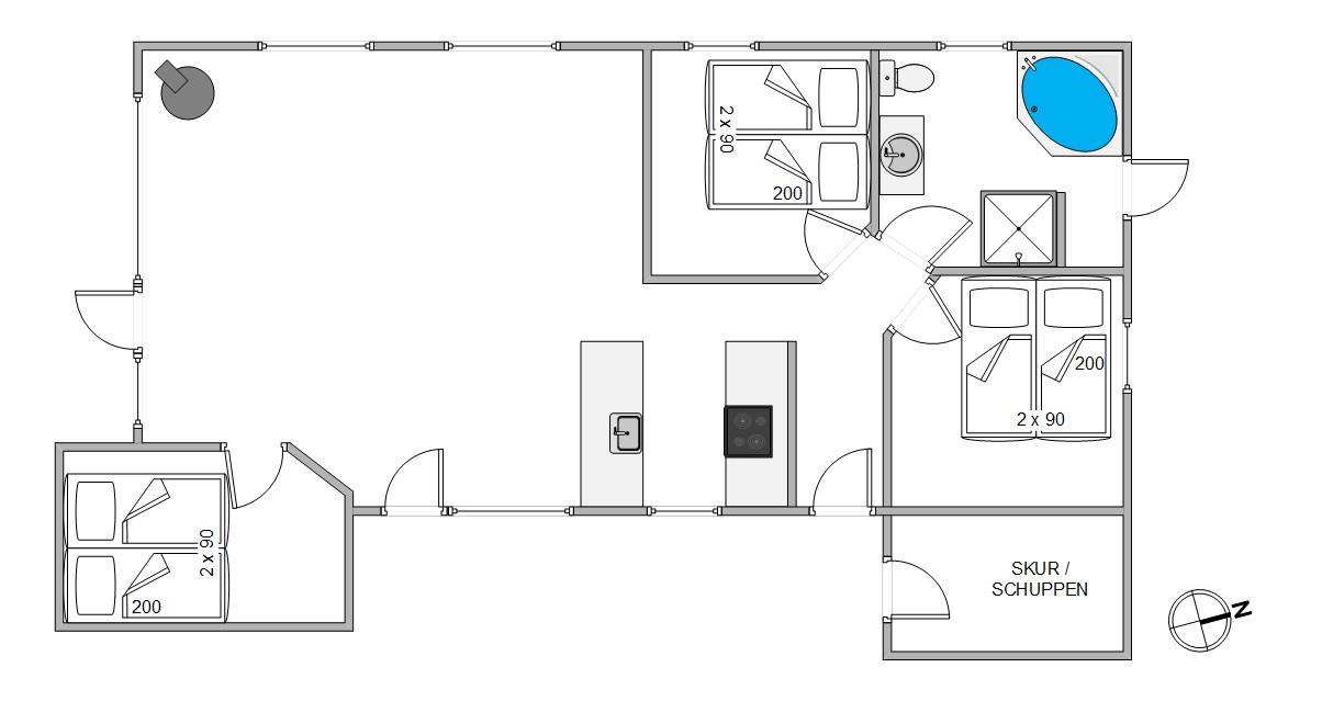 For børnene er der en hyggelig hems, hvor de kan finde 2 ekstra sovepladser i form af madrasser, hvilket skaber en unik og hyggelig krog for dem. Har I lyst til lidt ekstra wellness, har huset et stort badeværelse med spabad, hvor I kan forkæle jer selv lidt ekstra.