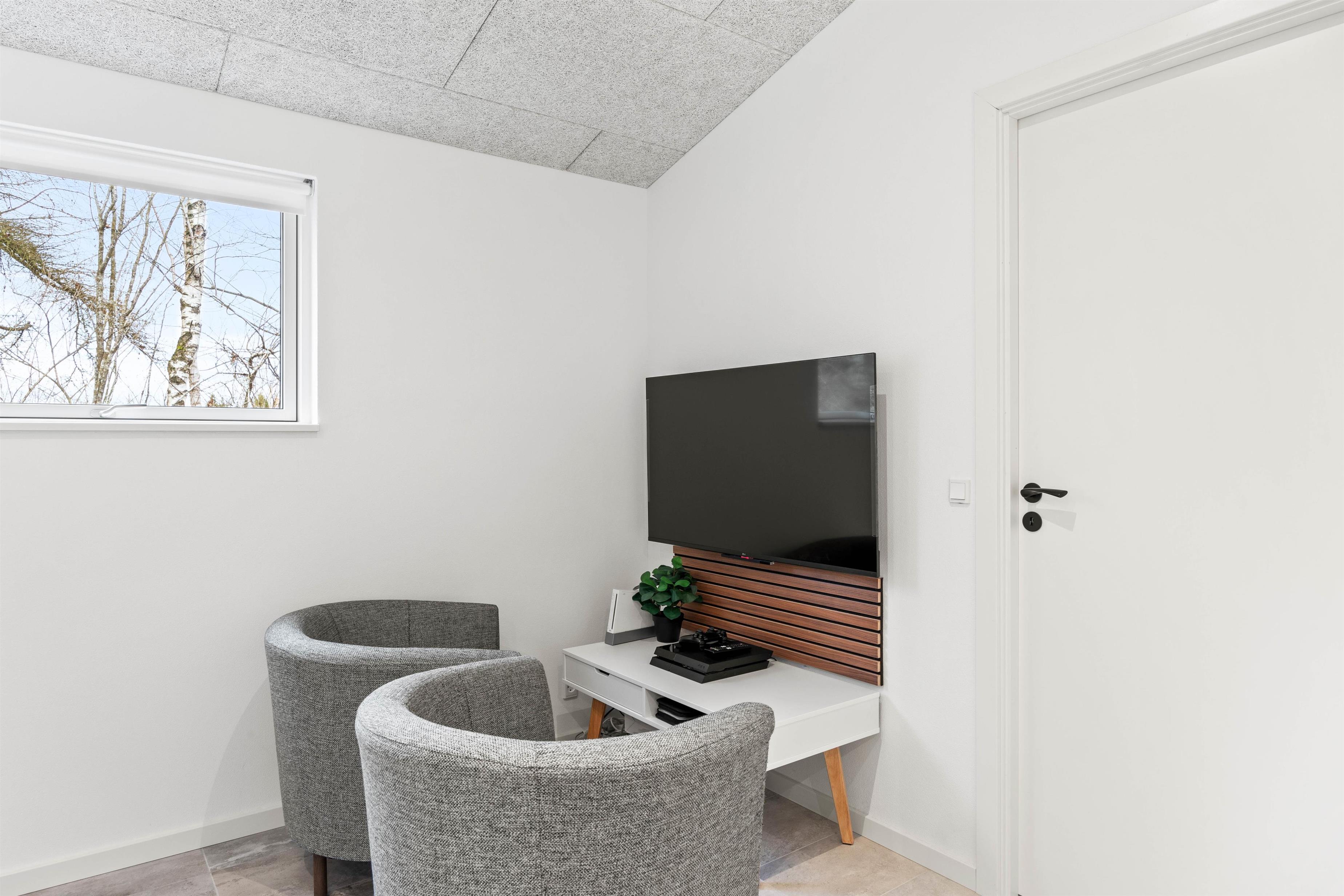 Bevæger man sig videre fra køkkenalrummet, åbner det store aktivitetsrum sig med et indbydende billardbord, som sikrer, at der altid er god underholdning til aftenerne. Skal der flere spil til, kan billardbordet forvandles til et bordtennis bord og spilleaftner kan fortsætte med samme spædning igennem hele opholdet. Egelounden 28 emmer af god stil og en sans for deltajerne - køkkenet er malet i stilrene farver og møblerne er nøje udvalgt for at sikre at opholdet i lige netop dette sommerhus bliver så skønt som muligt.