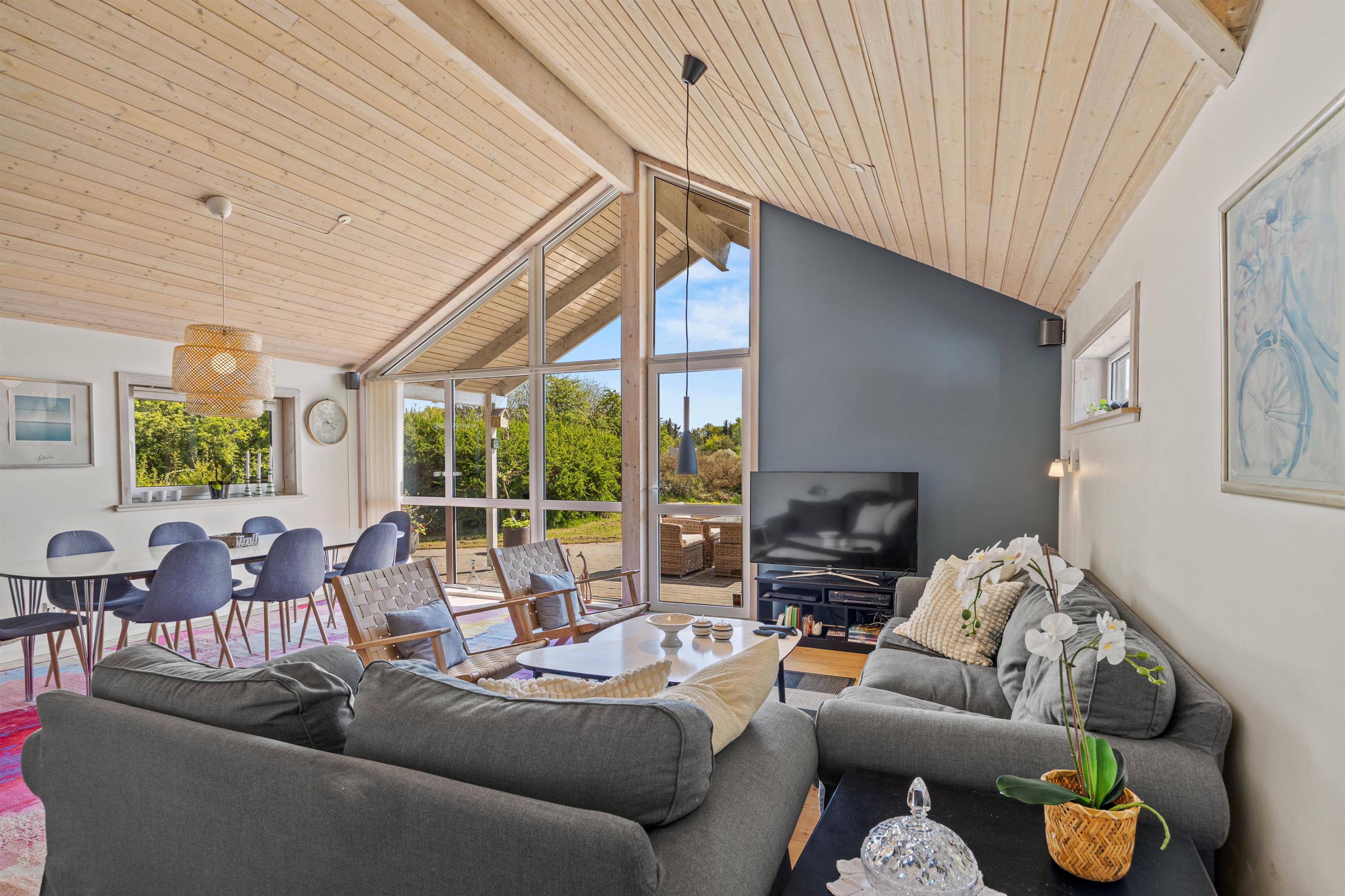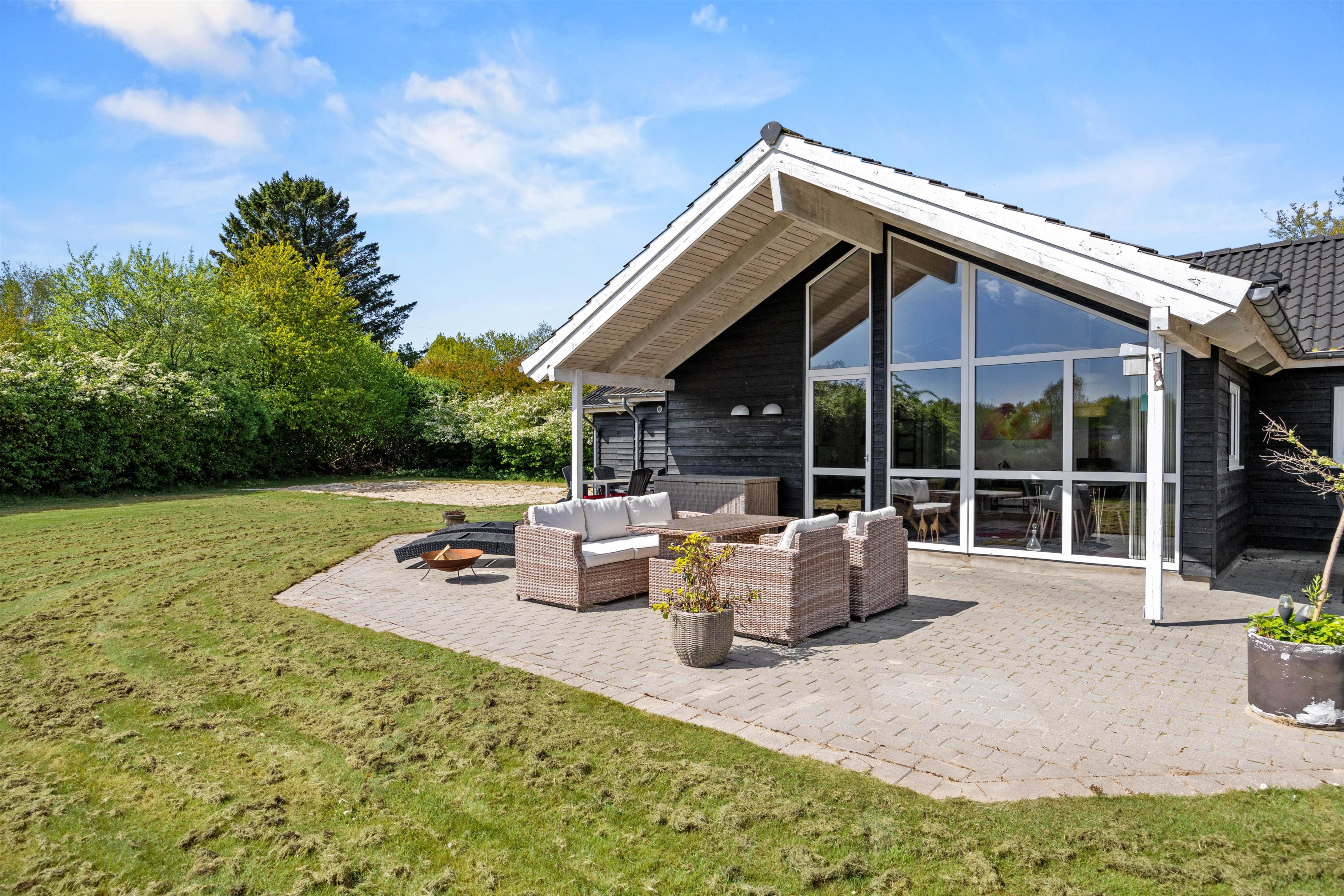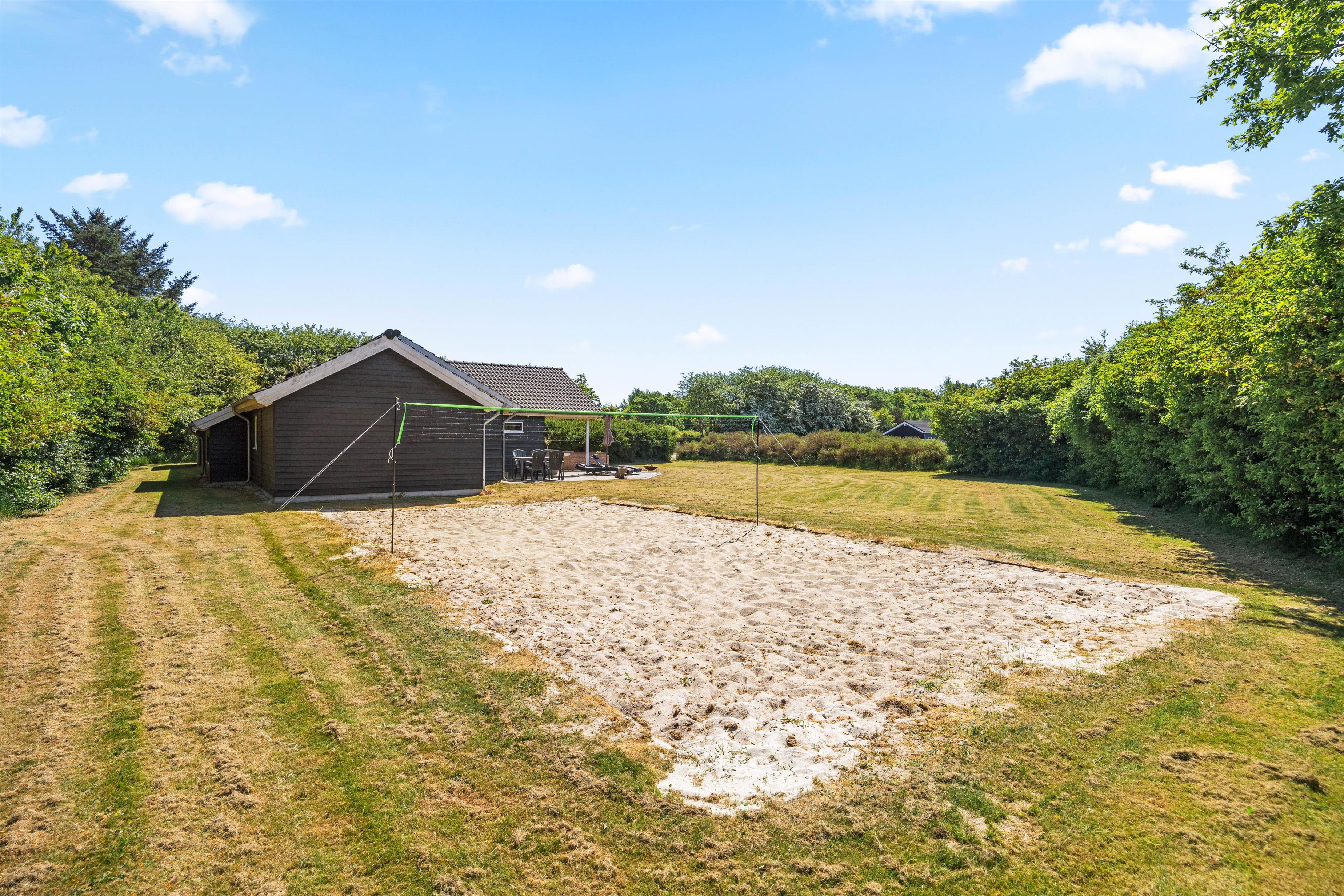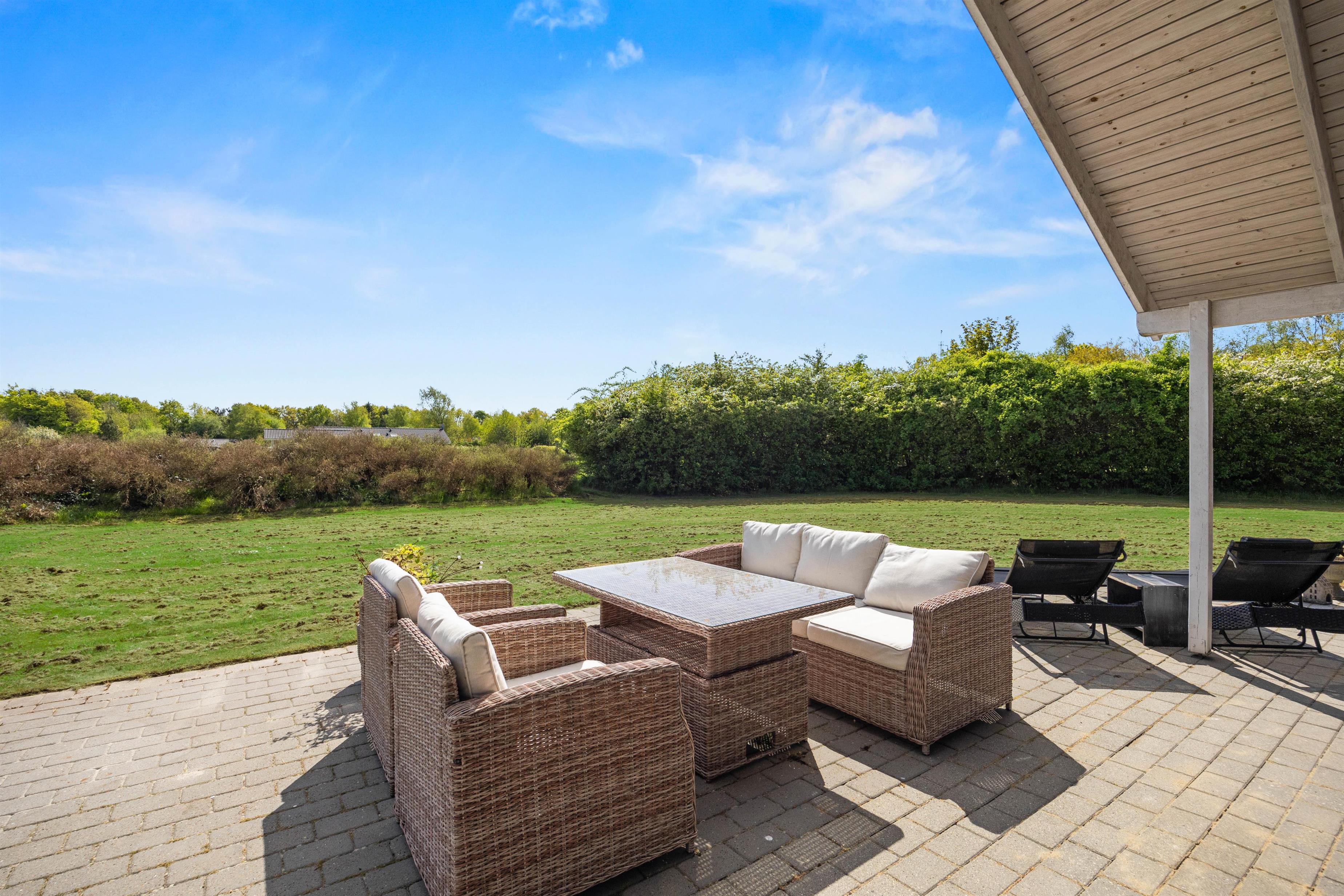 Carporten, der har direkte forbindelse til huset, sørger for, at bilen er beskyttet mod vejrets luner, og i redskabsrummet finder I plads til opbevaring af alt fra cykler til strandudstyr. Dette udemiljø skaber en skøn ramme for aktiviteter og afslapning, som gør ferien i sommerhuset til noget ganske særligt.