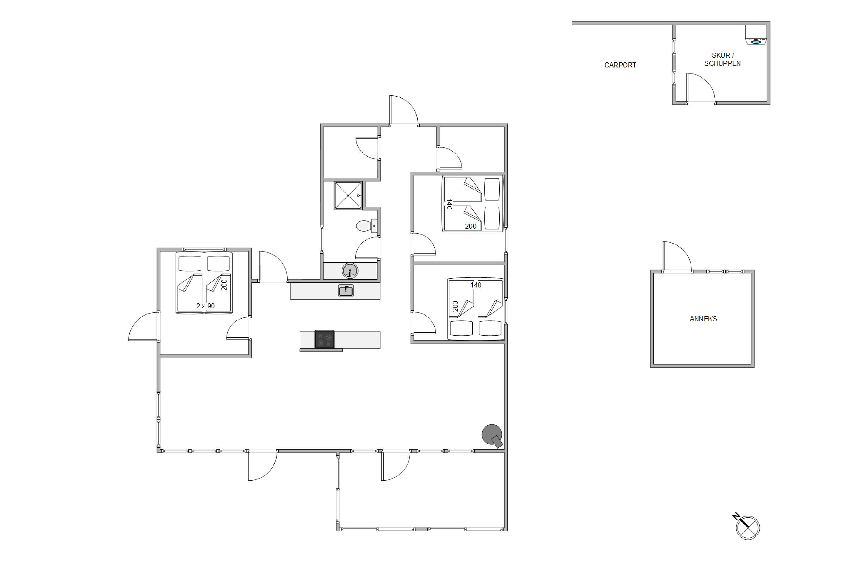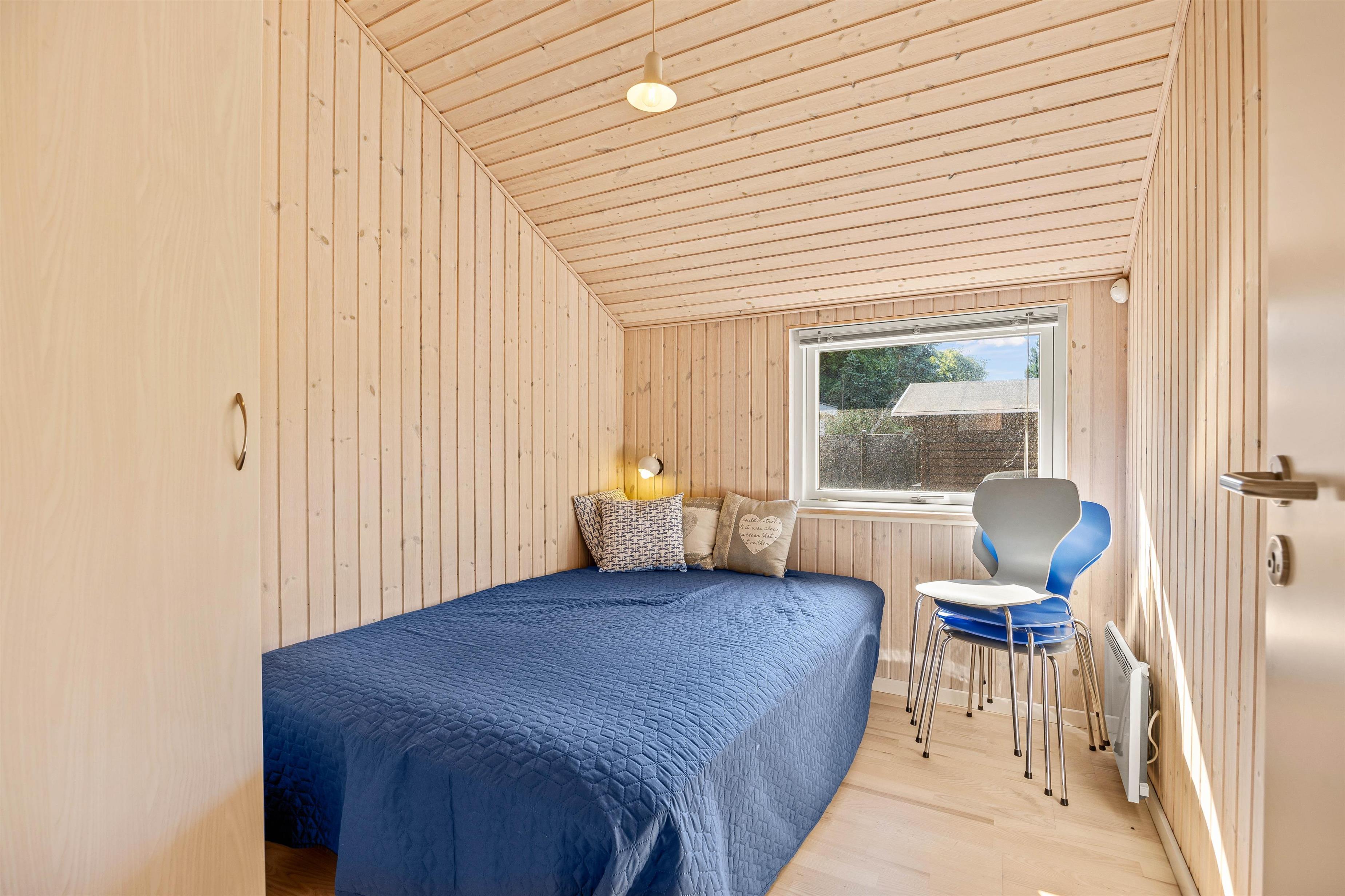 Sommerhuset har 3 lyse soveværelser. To af disse er udstyrret med dobbeltsenge, og det sidste er indrettet med en sovesofa.