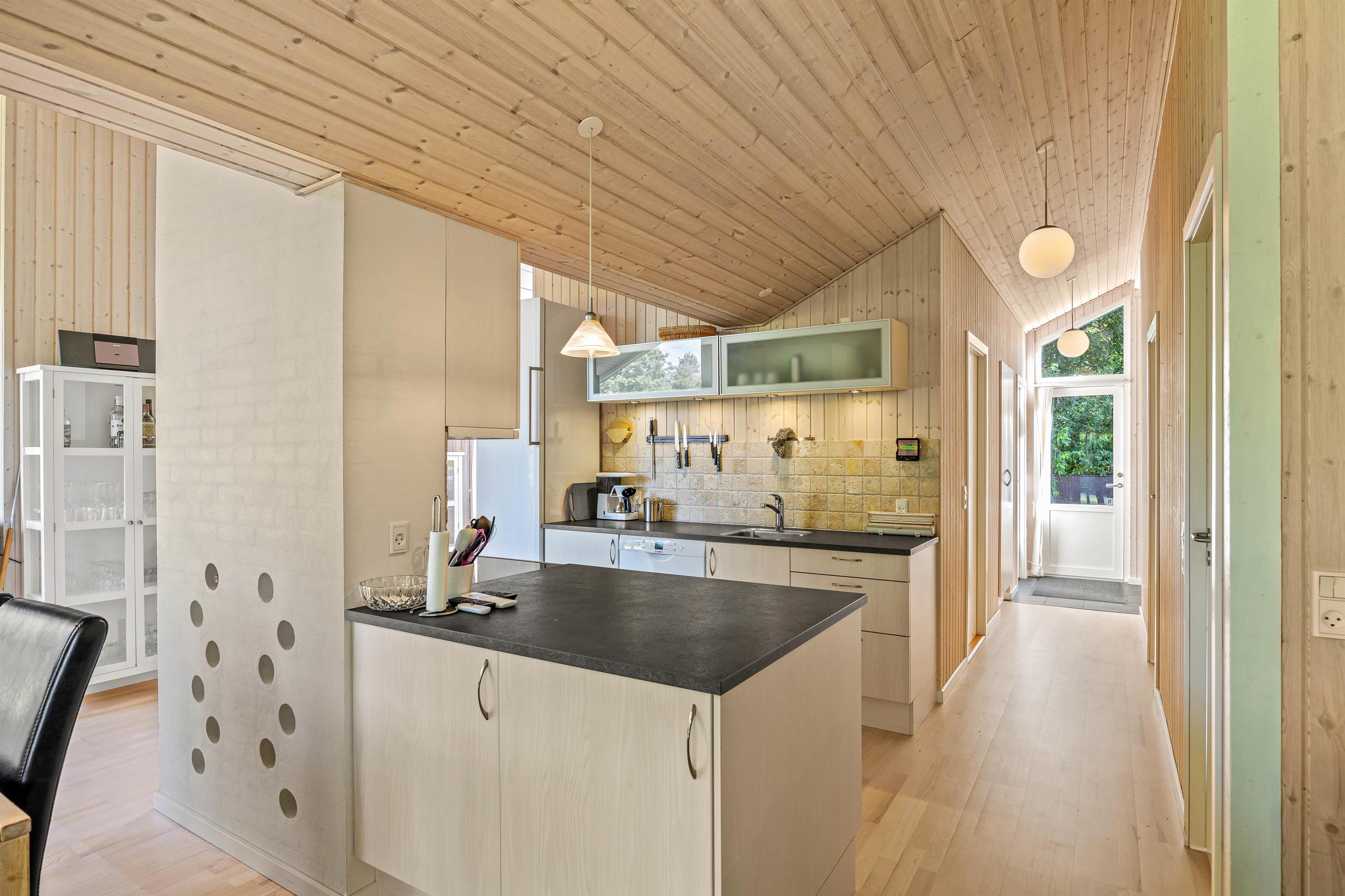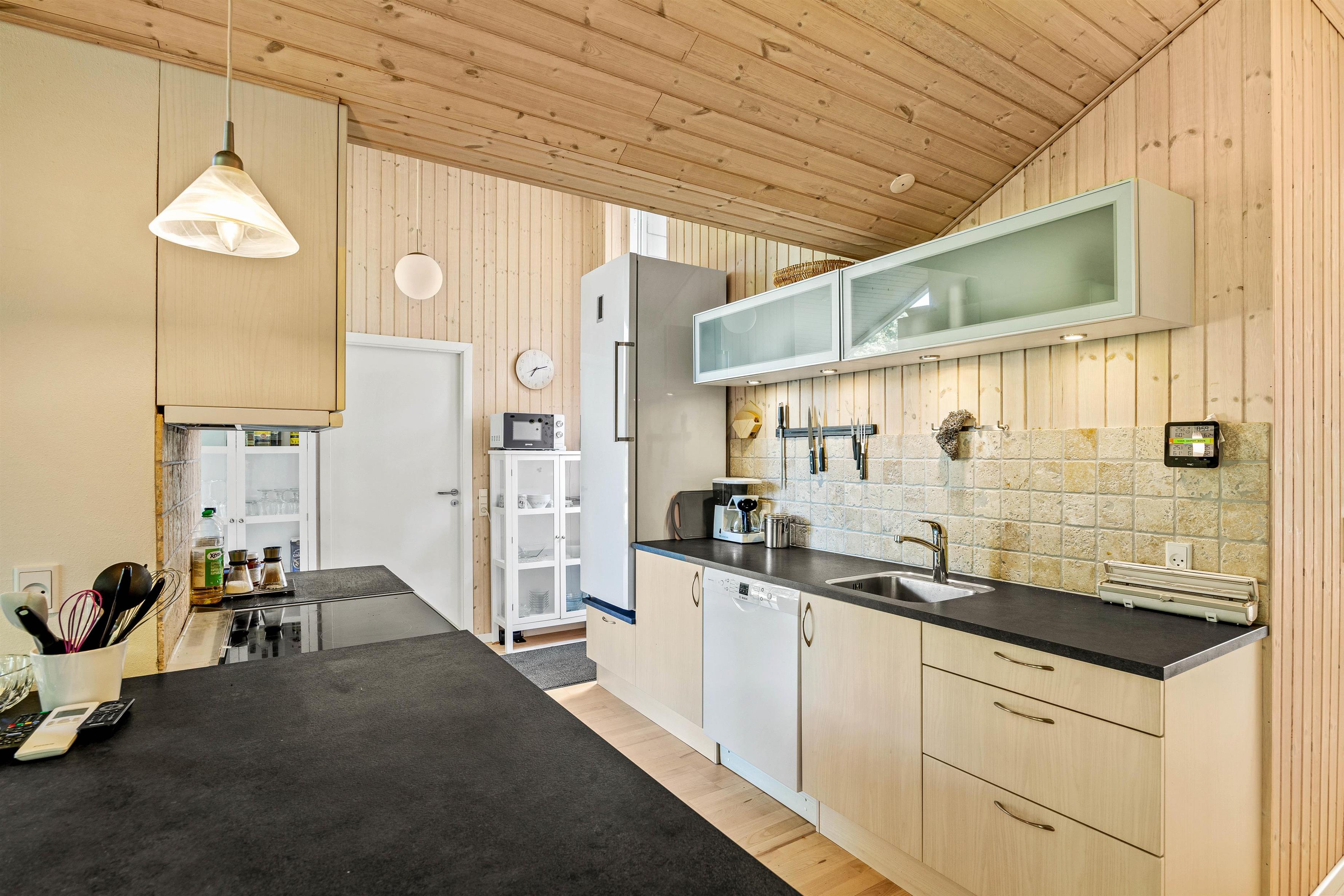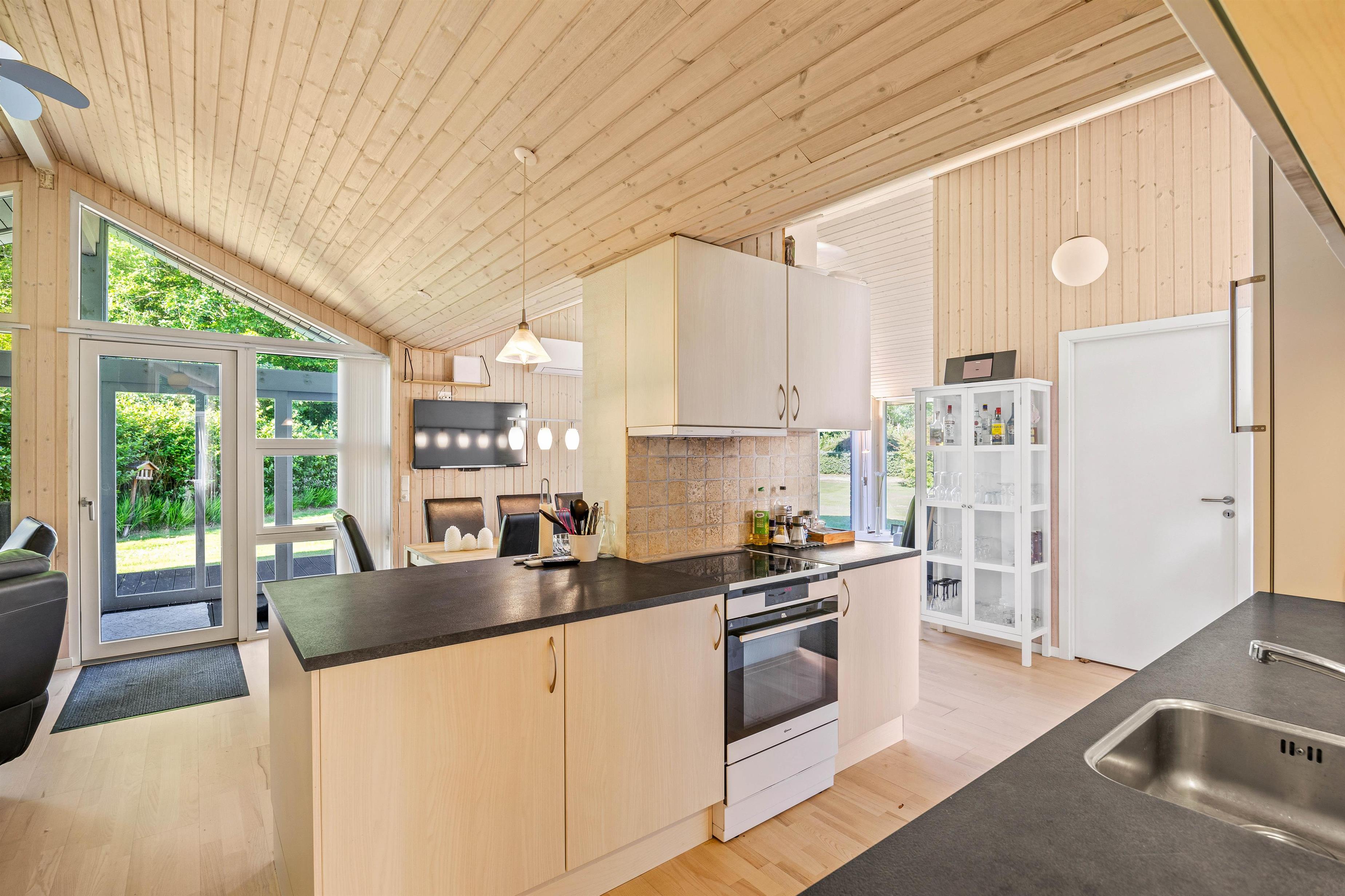 Sommerhuset, som blev renoveret i 2013, kombinerer klassisk charme med moderne bekvemmeligheder. Køkkenet er fuldt udstyret med alle de nødvendige faciliteter, herunder opvaskemaskine, hvilket gør madlavningen nem og bekvem.