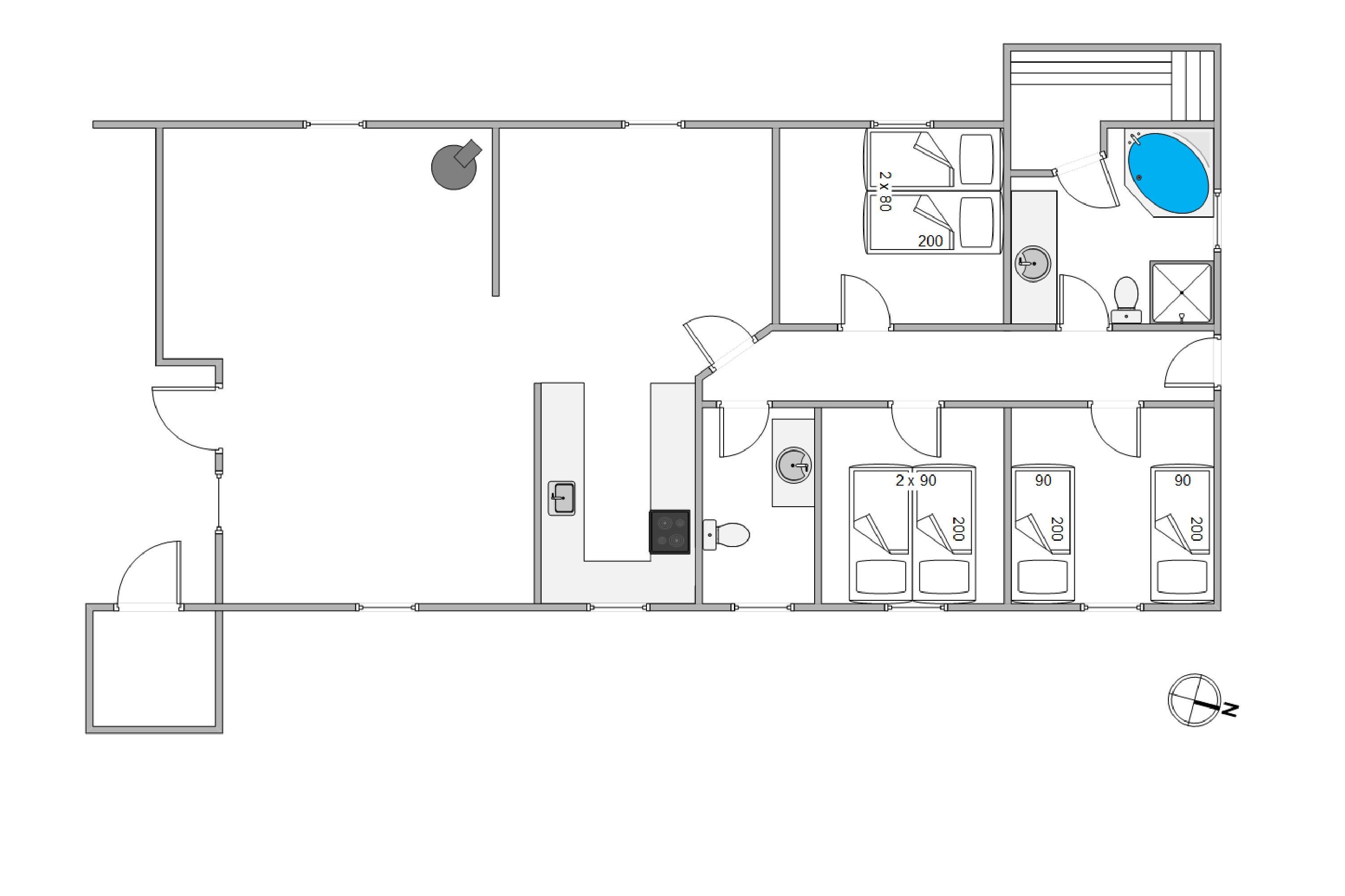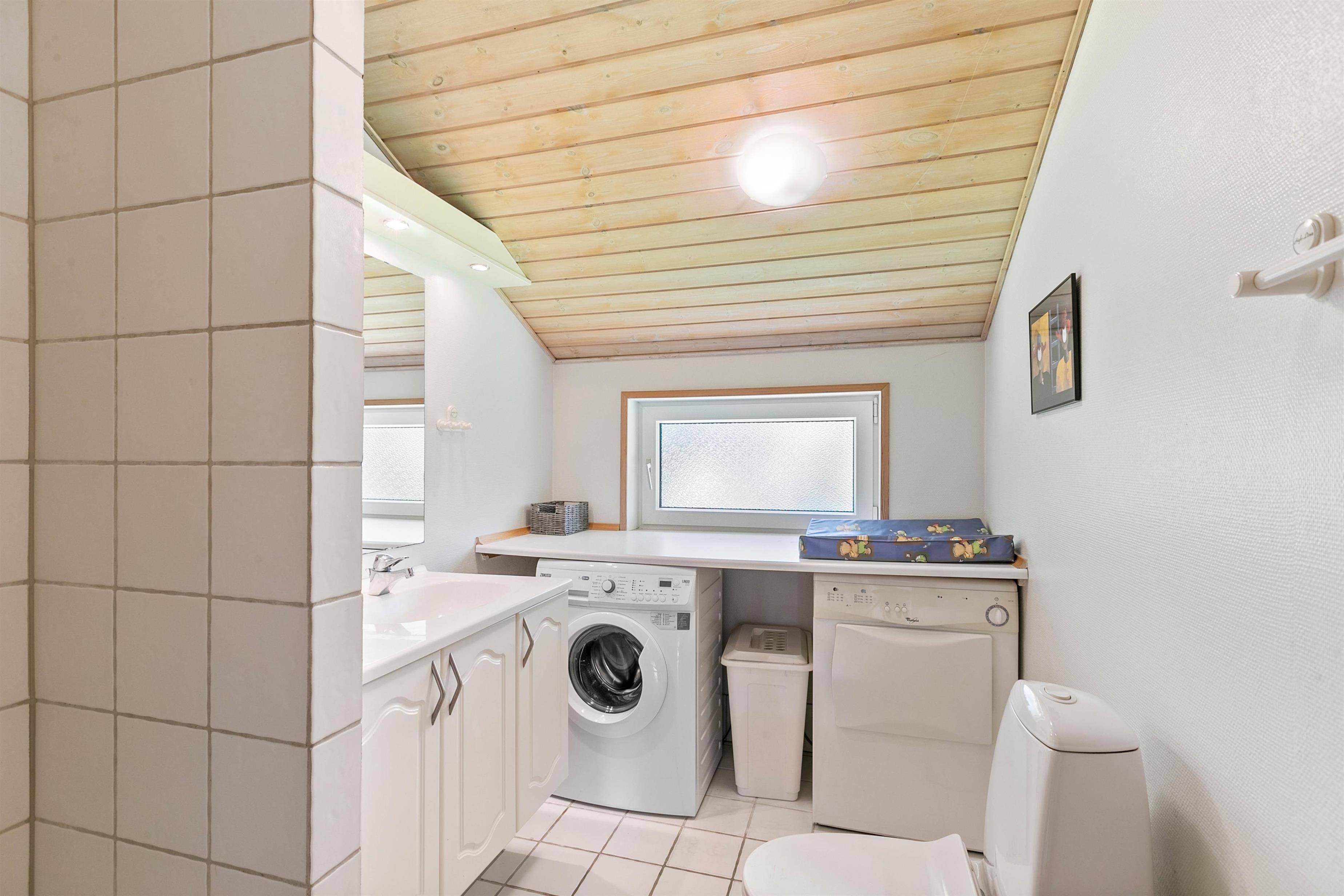 Ud over de 3 komfortable soveværelser, udfolder sommerhusets indre sig som en oase af velvære og afslapning på dets 110 m2. Både toilettet og badeværelset er udstyret med lækker gulvvarme, der gør morgenerne lidt nemmere. Badeværelset indeholder lidt ekstra luksus i form af en luksuriøs tømmespa.